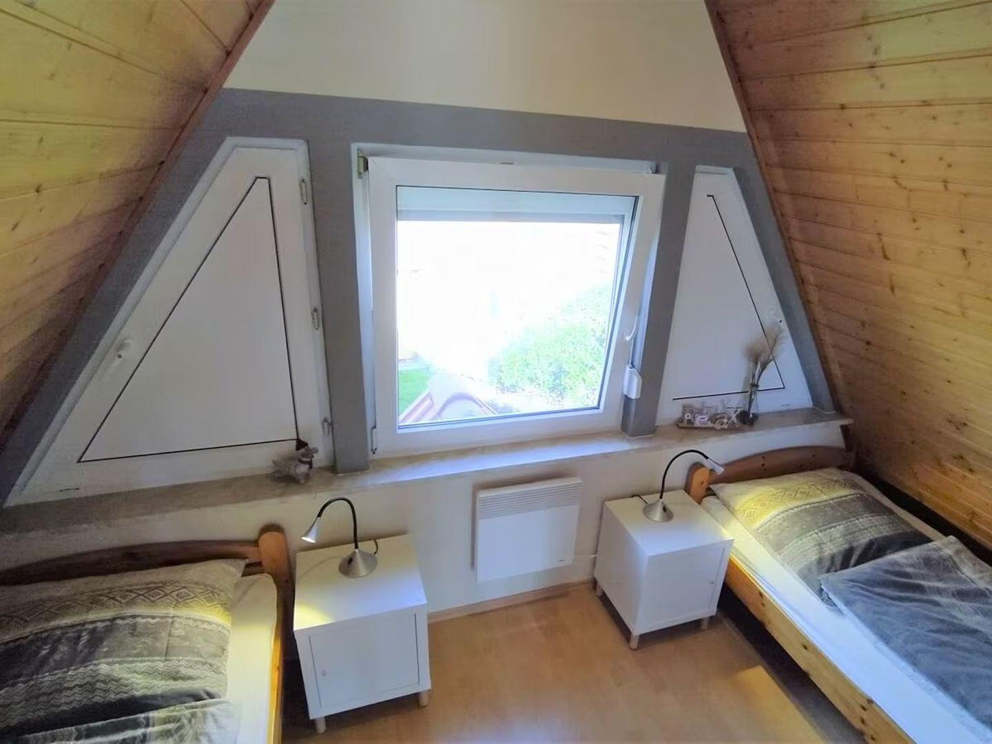 Im Obergeschoss finden Sie ein Elternschlafzimmer mit Doppelbett und direktem Zugang zum Balkon sowie ein Kinderzimmer mit zwei Einzelbetten. Verdunkelungsmöglichkeiten und elektronische Heizungen sorgen für angenehme Nächte. Alle Räume sind allergikerfreundlich mit Fliesen oder Laminatböden ausgestattet.