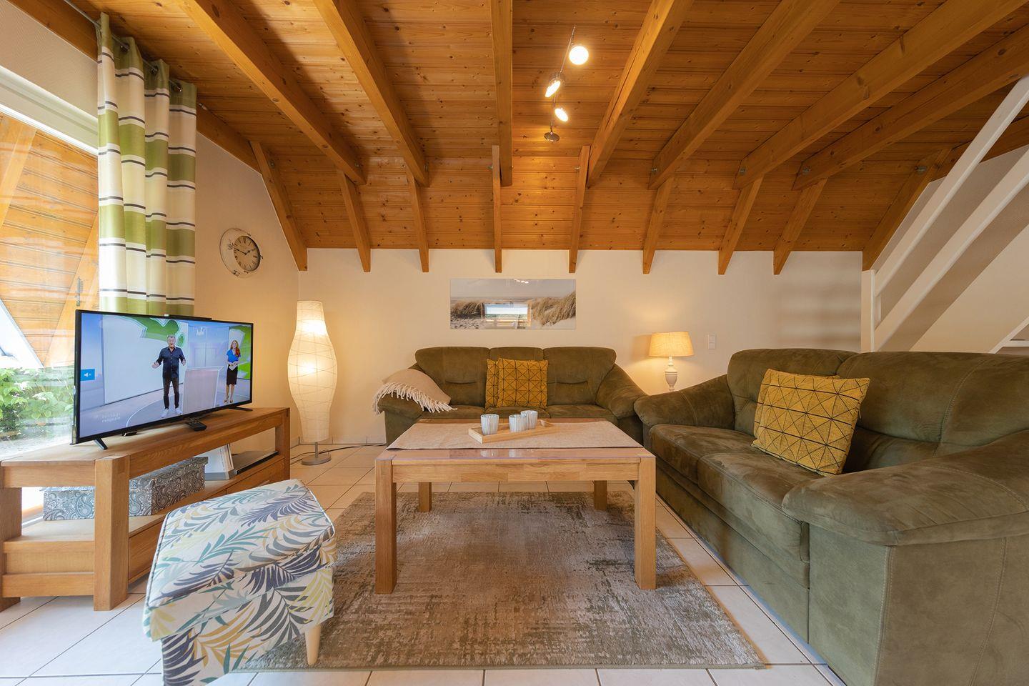 Wie ein kleiner Rückzugsort am Deich steht das Ferienhaus „Nordseebrise“ ruhig in einem Feriendorf in Dorum-Neufeld: ein gemütliches Zuhause für Familien oder Paare, die Nordseeurlaub mit Kindern lieben. Auf 65?m² über zwei Etagen erwarten dich zwei Schlafzimmer mit Vinylboden, ein modernes Bad mit Wanne und Dusche sowie eine helle Wohnküche mit allem Drum und Dran: Spülmaschine, Ceranfeld, Mikrowelle, Mixer und vieles mehr. Spielekonsole, Gesellschaftsspiele, drei TVs und schnelles WLAN sorgen auch bei Schietwetter für gute Laune.