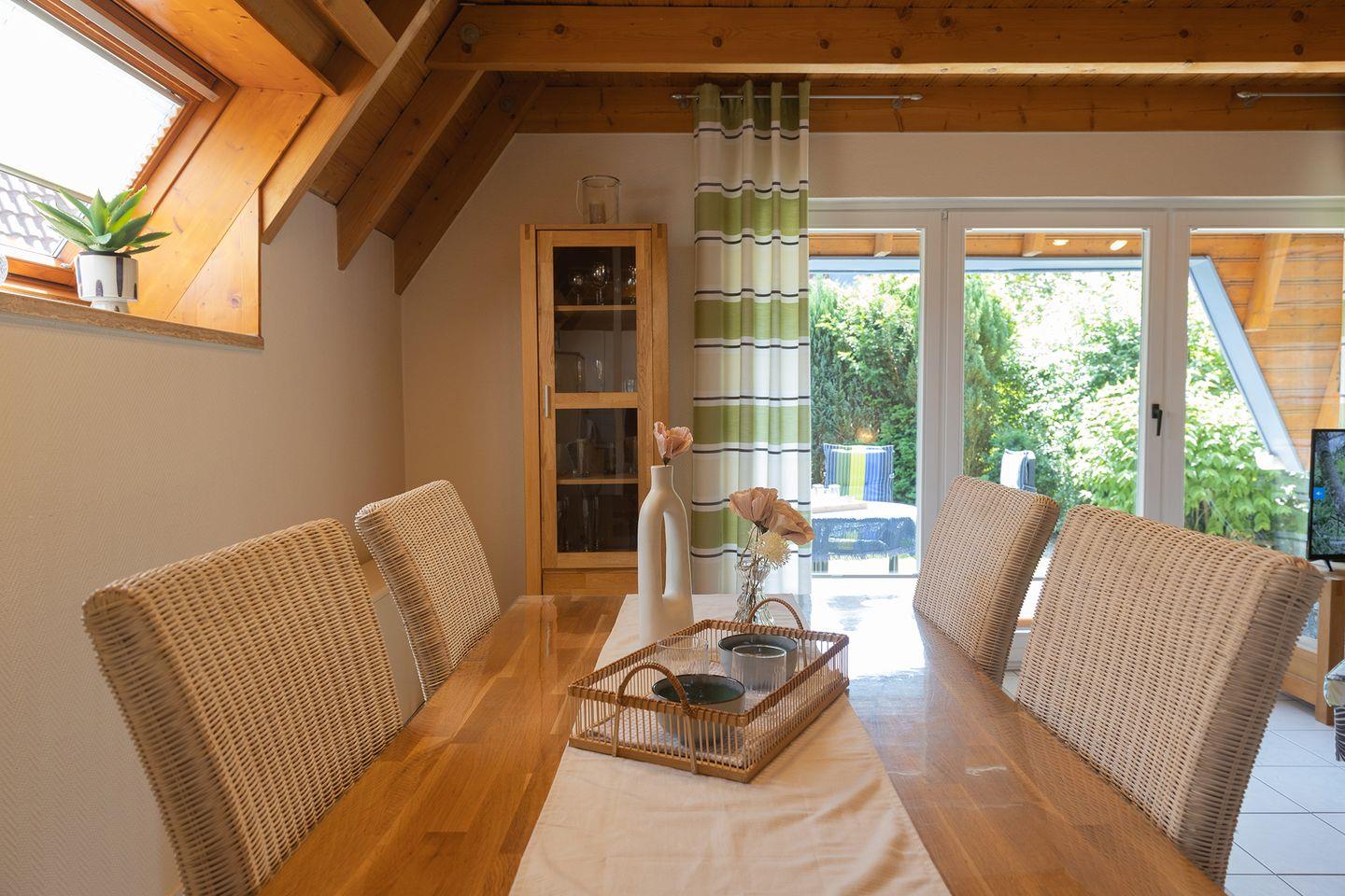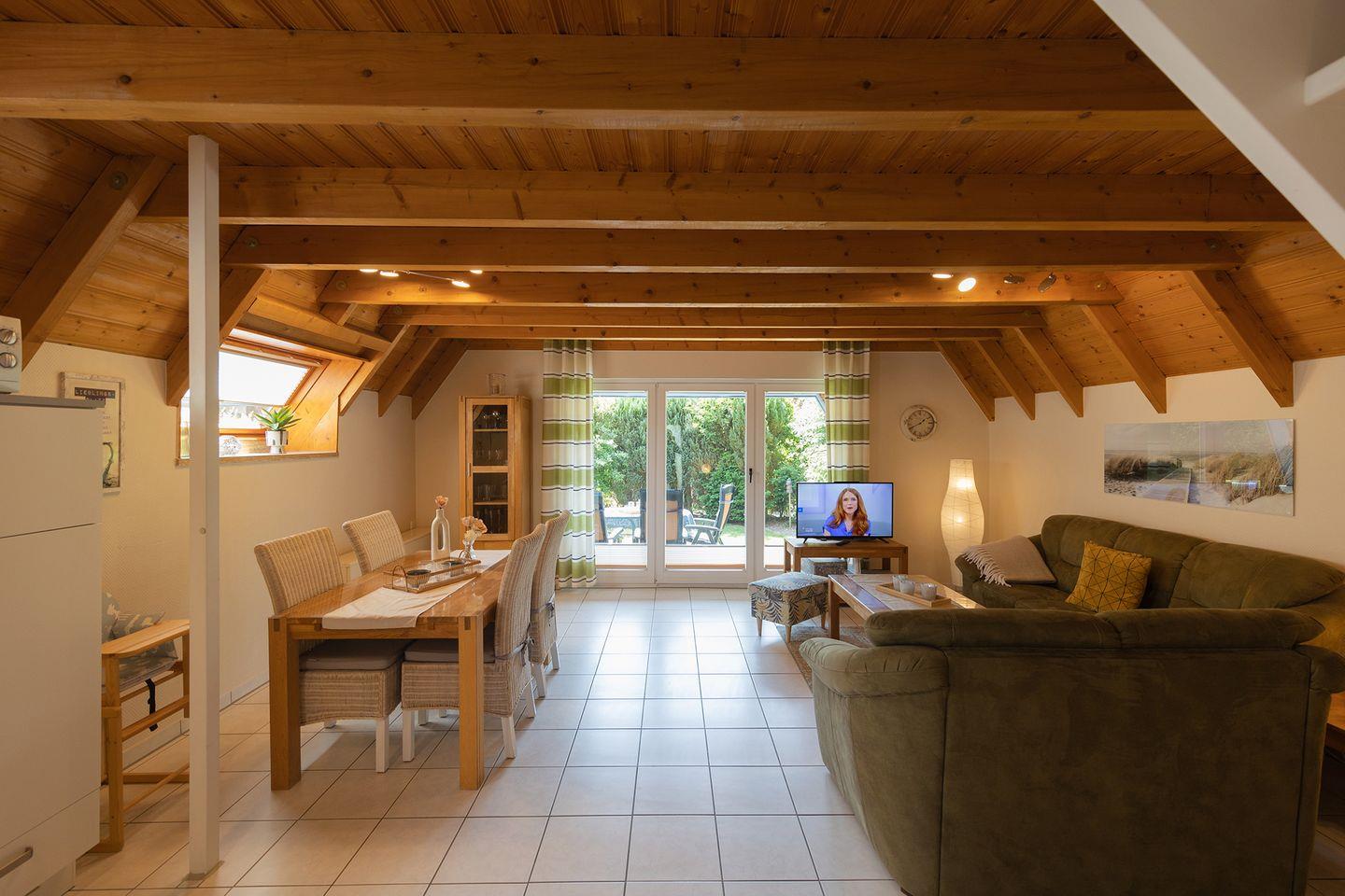 Ein Kinderbett, Hochstuhl und Treppengitter sind da, das Haus ist bestens familienfreundlich ausgestattet. Draußen locken Garten und Terrasse mit Liegen und Grill. Zum Strand, Leuchtturm Obereversand und dem kleinen Kutterhafen spazierst du in wenigen Minuten (1km). Für dein E-Auto gibt’s eine Ladesäule in der Anlage, der Parkplatz liegt am Haus. Zwei Hunde sind willkommen.