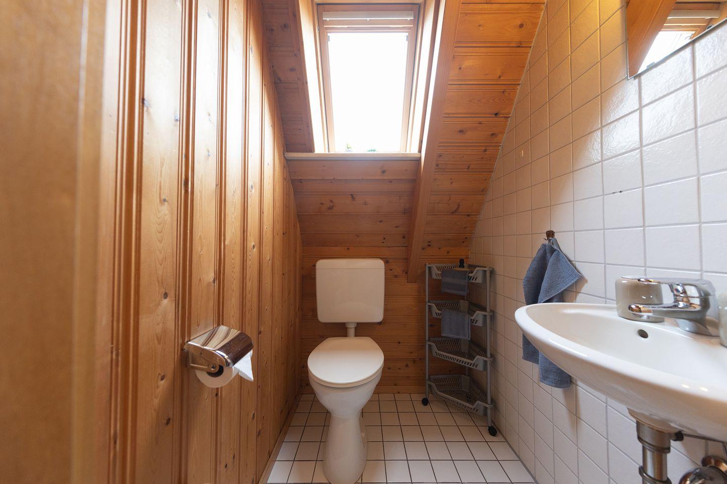 Der offene Wohnbereich im Erdgeschoss ist gefliest, hell und einladend. Sofaecke, Essplatz, Kaminofen und Fußbodenheizung sorgen für Behaglichkeit. Die Küche ist voll ausgestattet: Ceranherd, Spülmaschine, Backofen, Mikrowelle, Kaffeemaschine, Mixer und mehr stehen bereit. Zwei Schlafzimmer mit Vinylboden liegen im Obergeschoss. Das Bad mit Dusche, Wanne und Fenster wird durch ein Gäste-WC ergänzt – praktisch für den Familienalltag.