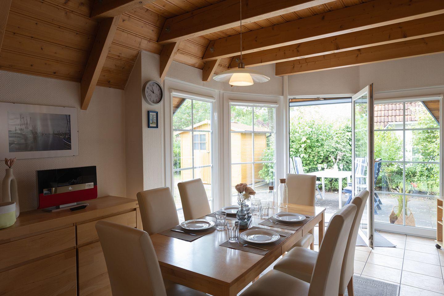 Im Garten warten Sonnenliegen, Sonnenschirm, Terrasse mit Grill und ausreichend Platz zum Spielen. Bis zu zwei Hunde dürfen mitreisen. Ein Parkplatz ist kostenfrei am Haus, eine E-Ladesäule ist in der Anlage. Strand, Kutterhafen und Leuchtturm Obereversand sind gut zu Fuß erreichbar - für einen rundum gelungenen Familienurlaub in Strandnähe.