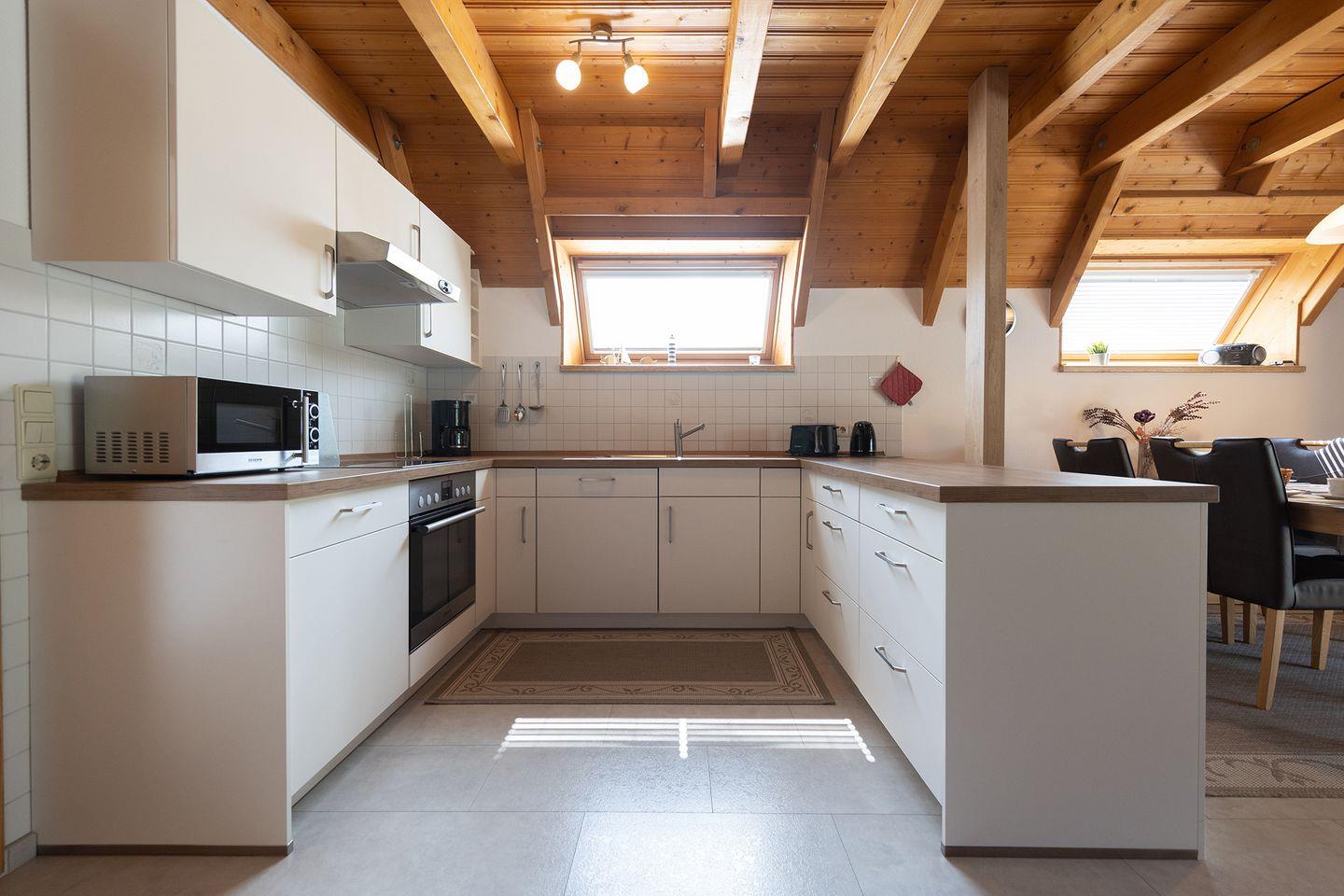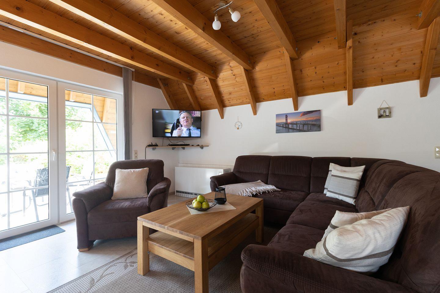 Die Ausstattung ist klar auf Familien ausgerichtet: Kinderbett, Hochstuhl, Treppengitter und Steckdosensicherungen sind vorhanden, genauso wie eine eigene Waschmaschine. Zwei Fernseher, Spiele und schnelles WLAN sorgen auch drinnen für Abwechslung.