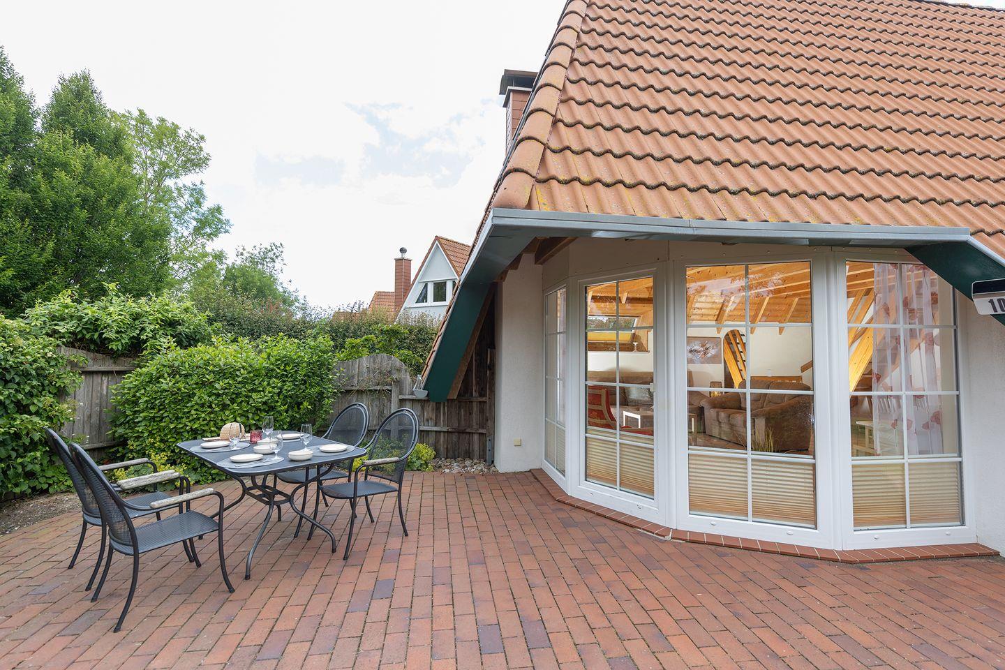 Draußen lädt der Garten mit Terrasse, Sonnenliegen, Grill und Gartenhaus zum Spielen, Faulenzen und Zusammensein ein. Hunde können hier ebenfalls entspannt dabei sein. Kostenfreie Parkplätze stehen am Haus zur Verfügung, eine E-Ladesäule gibt’s in der Anlage. Und das Beste: Der Strand, der Kutterhafen und der Leuchtturm Obereversand sind gut zu Fuß erreichbar – für eine rundum familienfreundliche Zeit in Strandnähe (1km).