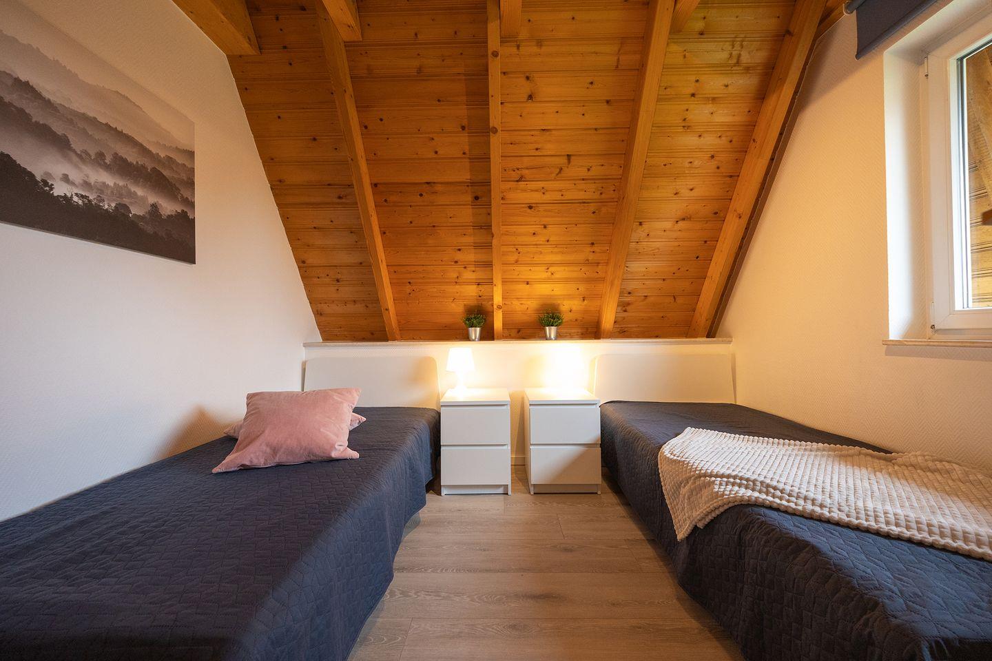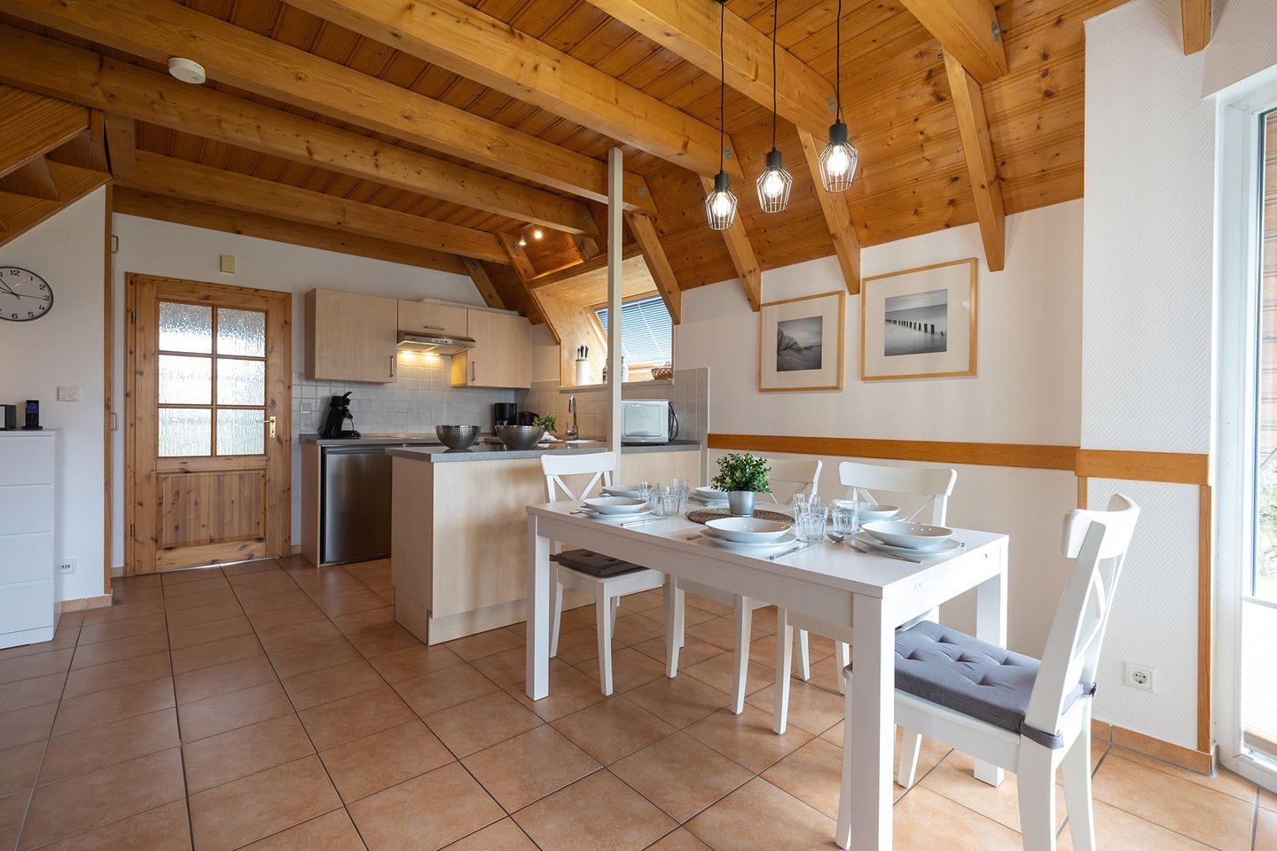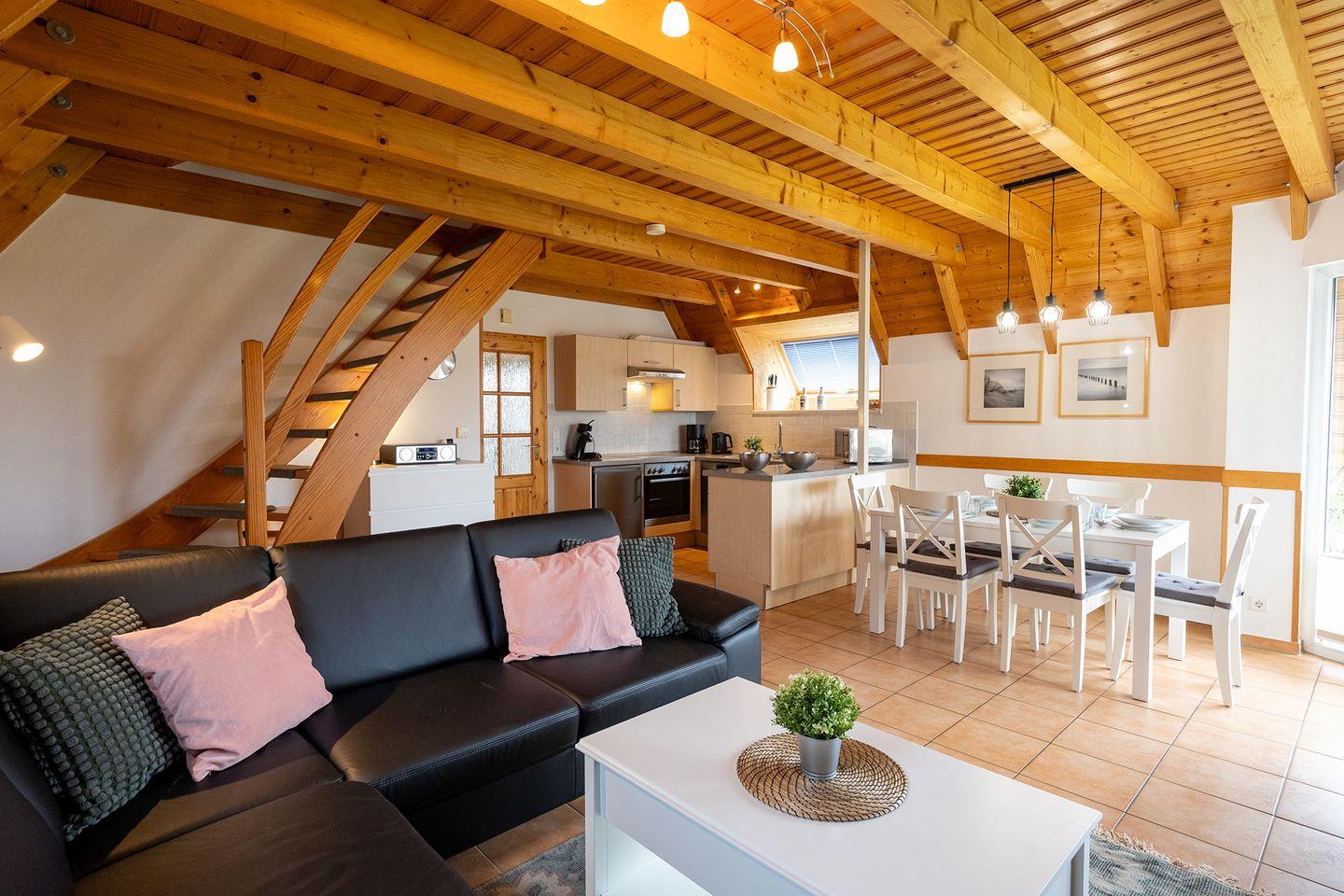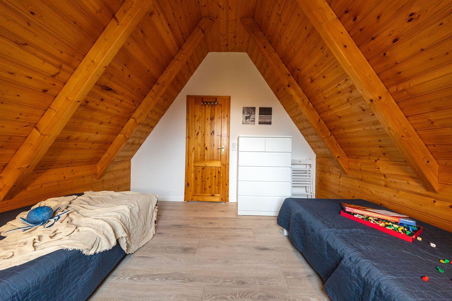 Im Obergeschoss findet ihr das Elternschlafzimmer mit Doppelbett und TV sowie ein weiteres Zimmer mit zwei Einzelbetten und separatem WC. Abdunkelbare Rollos, Vinyl- und Fliesenböden sowie Glasfaser-WLAN und bieten Komfort. Im Garten mit möblierter, windgeschützter Terrasse und Holzkohlegrill lässt sich der Tag entspannt ausklingen; das Gartenhaus bietet Platz für Fahrräder. An der Rezeption steht eine E-Ladestation für Elektroautos zur Verfügung.