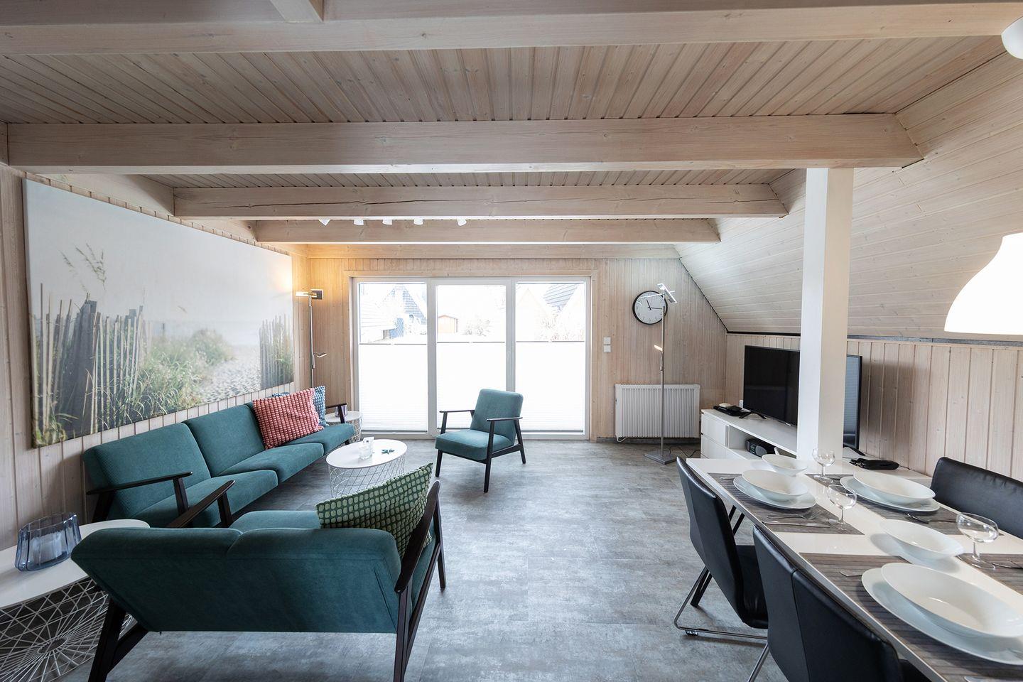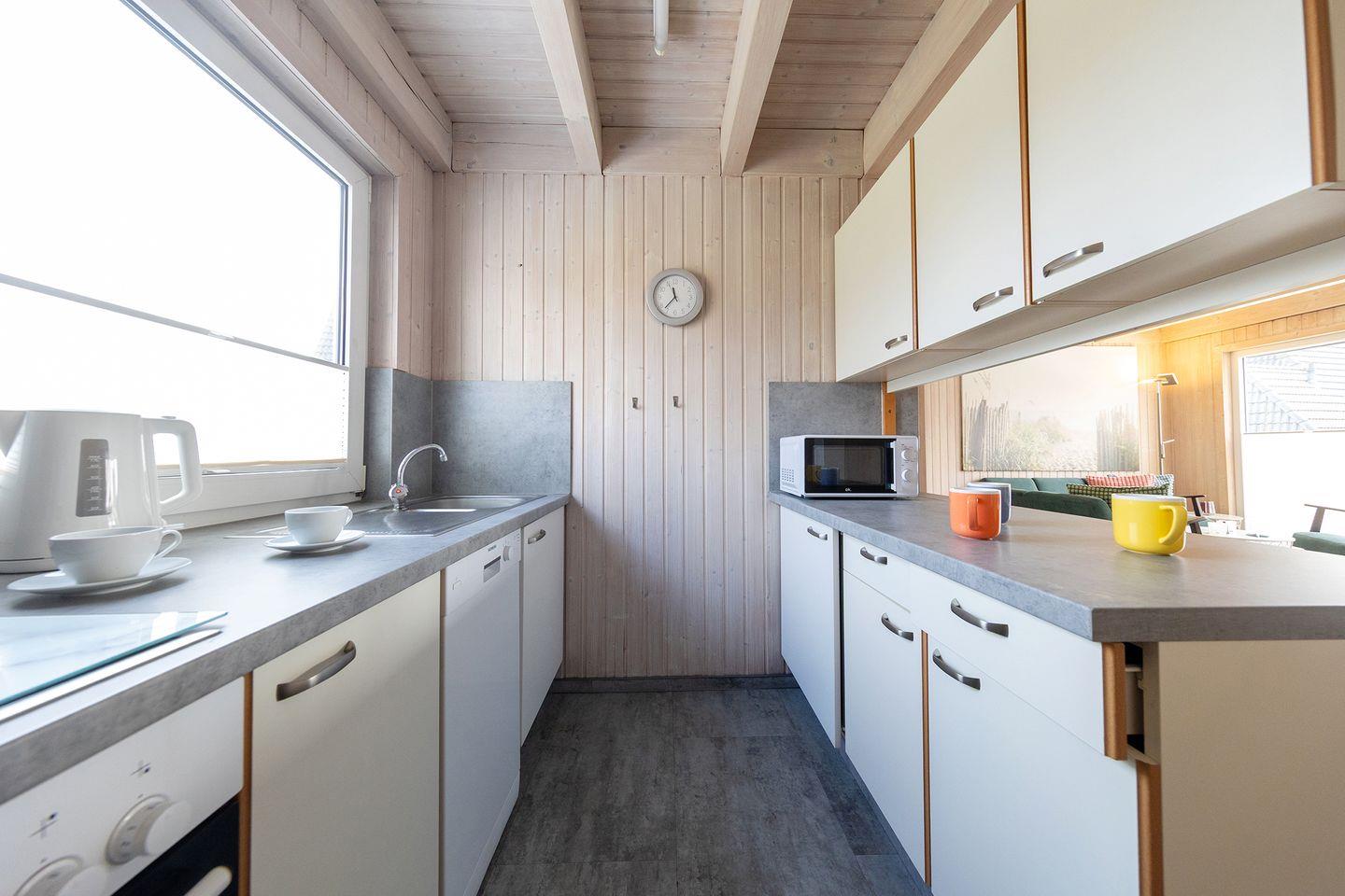 So fühlt sich Familienurlaub an: Im Ferienhaus „Cora“ Rotersand 10 in Dorum-Neufeld wohnst du mit bis zu vier Personen auf 61 m² Wohnfläche über zwei Etagen. Zwei Schlafzimmer mit Laminat, ein Bad mit Wanne und Dusche sowie ein Wohnbereich mit Vinylboden und Spielekonsole sorgen für Komfort. Die offene Küche ist mit Ceranfeld, Spülmaschine, Mikrowelle und mehr komplett ausgestattet.