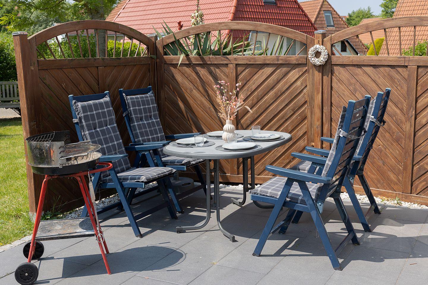 Fliesen im Erdgeschoss und Vinylboden oben machen das Haus pflegeleicht. Kinderbett, Hochstuhl und Treppengitter sind vorhanden. Im Garten mit Terrasse, Grill und Gartenhaus ist genug Platz für kleine Pausen zwischendurch – ein Ferienhaus für Familien an der Nordsee, mit Garten und in Strandnähe (1km).