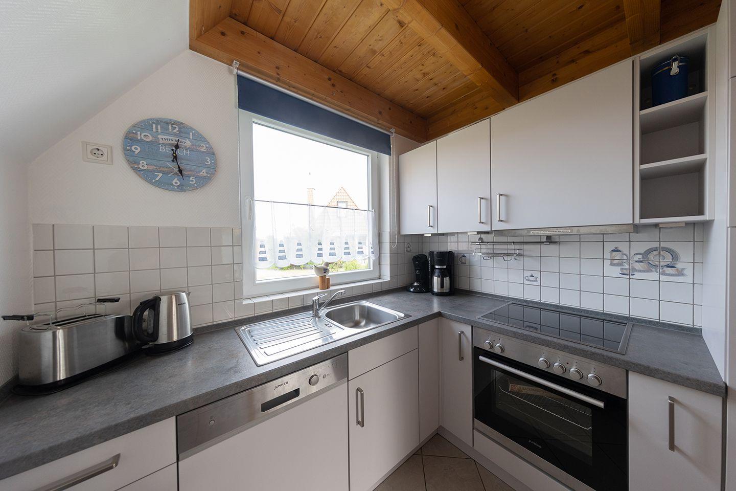 Waschmaschine im Haus, Trockner zur Mitnutzung. Allergikerfreundlich. Ein kostenfreier Parkplatz befindet sich am Haus, eine E-Ladesäule ist vorhanden. Strand, Kutterhafen und der Leuchtturm Obereversand sind gut zu Fuß erreichbar.