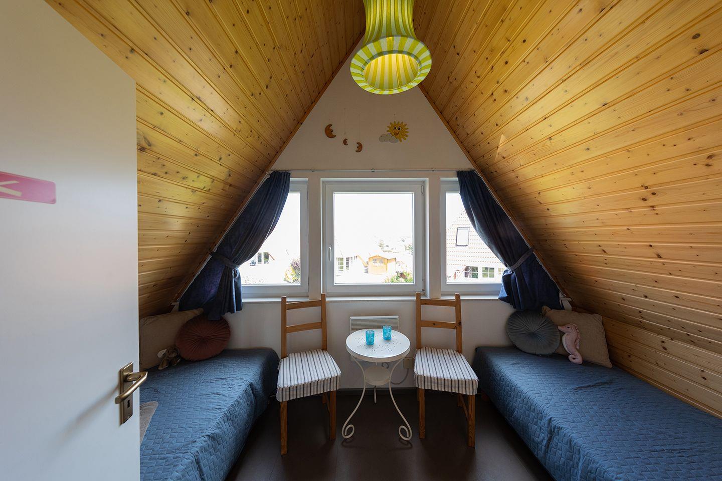 Wenn der Tag draußen beginnt und abends beim Kartenspielen endet, ist das Ferienhaus „Ebbe & Flut“ in Dorum-Neufeld genau richtig. Auf zwei Etagen bietet es 61 m² Wohnfläche mit zwei Schlafzimmern, einem Wohnbereich mit Kaminofen und einer voll ausgestatteten Küche mit Spülmaschine, Mikrowelle und Backofen, praktisch für den Familienalltag.