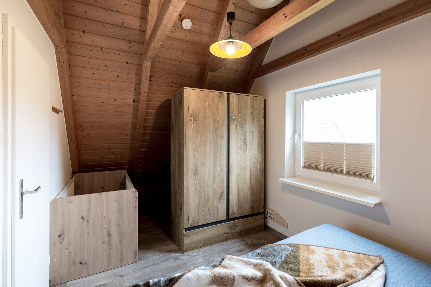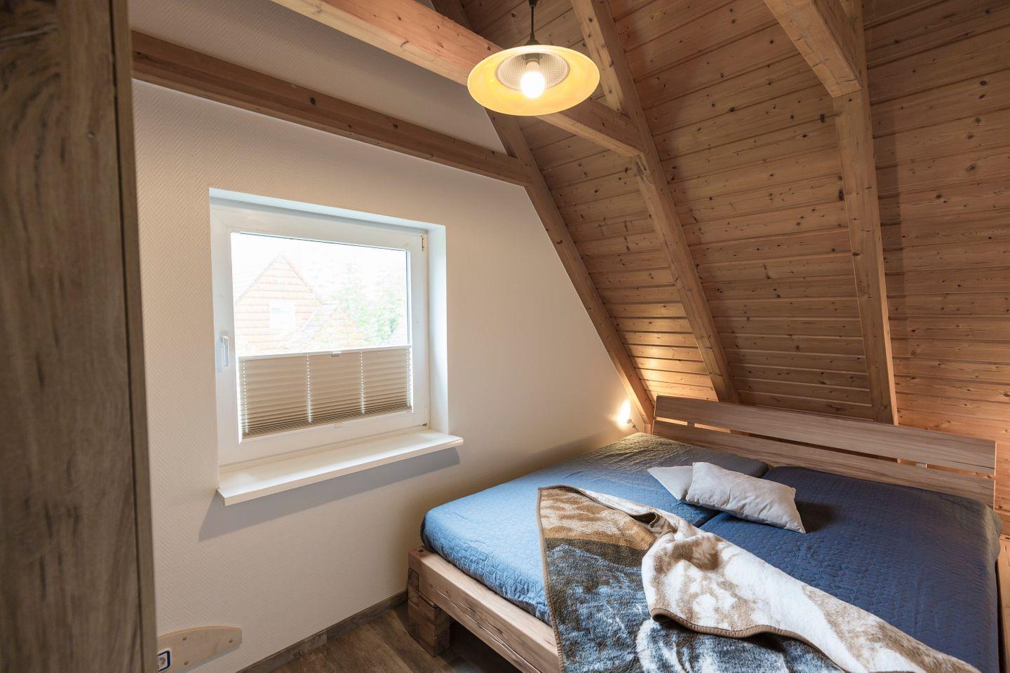 Ein Ort zum Durchatmen: Dieses Ferienhaus im grünen Marschland von Dorum-Neufeld bietet Platz für sechs Nordseefans - drinnen gemütlich, draußen naturnah. Im Erdgeschoss erwartet dich ein heller Wohnbereich mit Kaminofen, eine offene Küche, ein Schlafzimmer mit zwei Einzelbetten und ein Duschbad mit Waschmaschine. Oben: das Elternschlafzimmer, ein weiteres Kinderzimmer mit getrennten Betten und ein zweites Bad. Viel Raum für Familienleben, auch mal mit Rückzugsort.