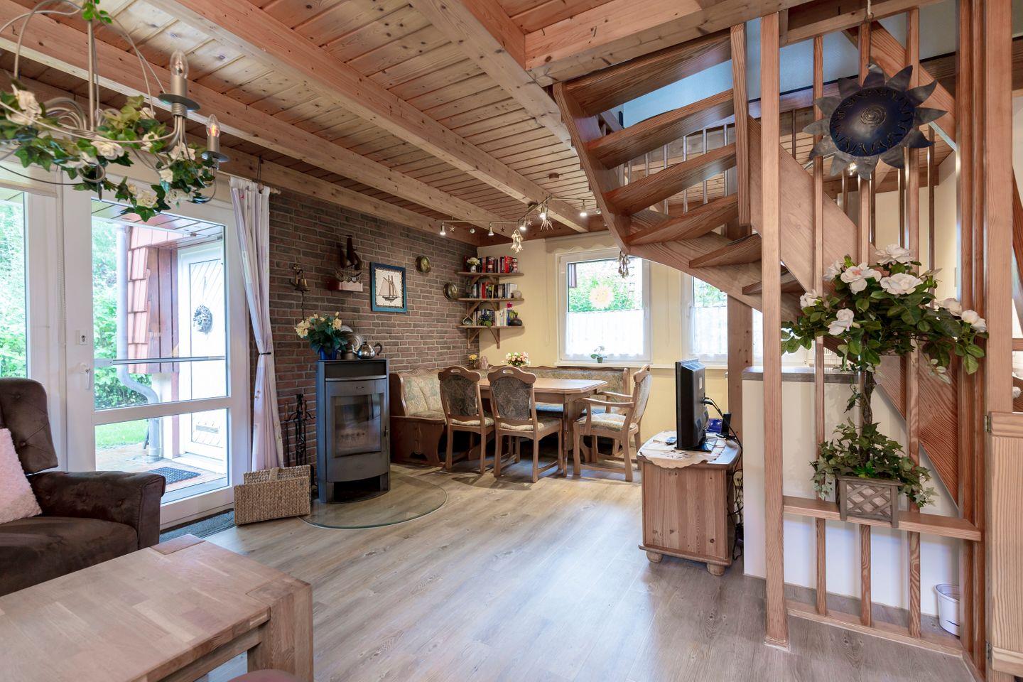 Strandnah und eingebettet in einen grünen Garten: Dieses großzügige Ferienhaus in Dorum-Neufeld bietet mit drei Schlafzimmern, zwei Duschbädern und Kaminofen Platz für bis zu sechs Personen. Die offene Küche ist voll ausgestattet, Kinderbett und Hochstuhl sind vorhanden. Auf der Terrasse gibt’s Sonnenliegen und viel Raum zum Durchatmen – das Watt’n Bad, der Strand und der Kutterhafen sind gleich um die Ecke.