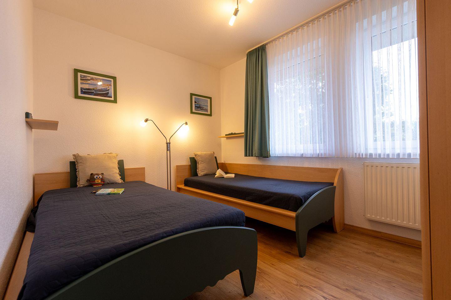 Elternschlafzimmer mit Doppelbett, einem Kinderschlafzimmer mit zwei
