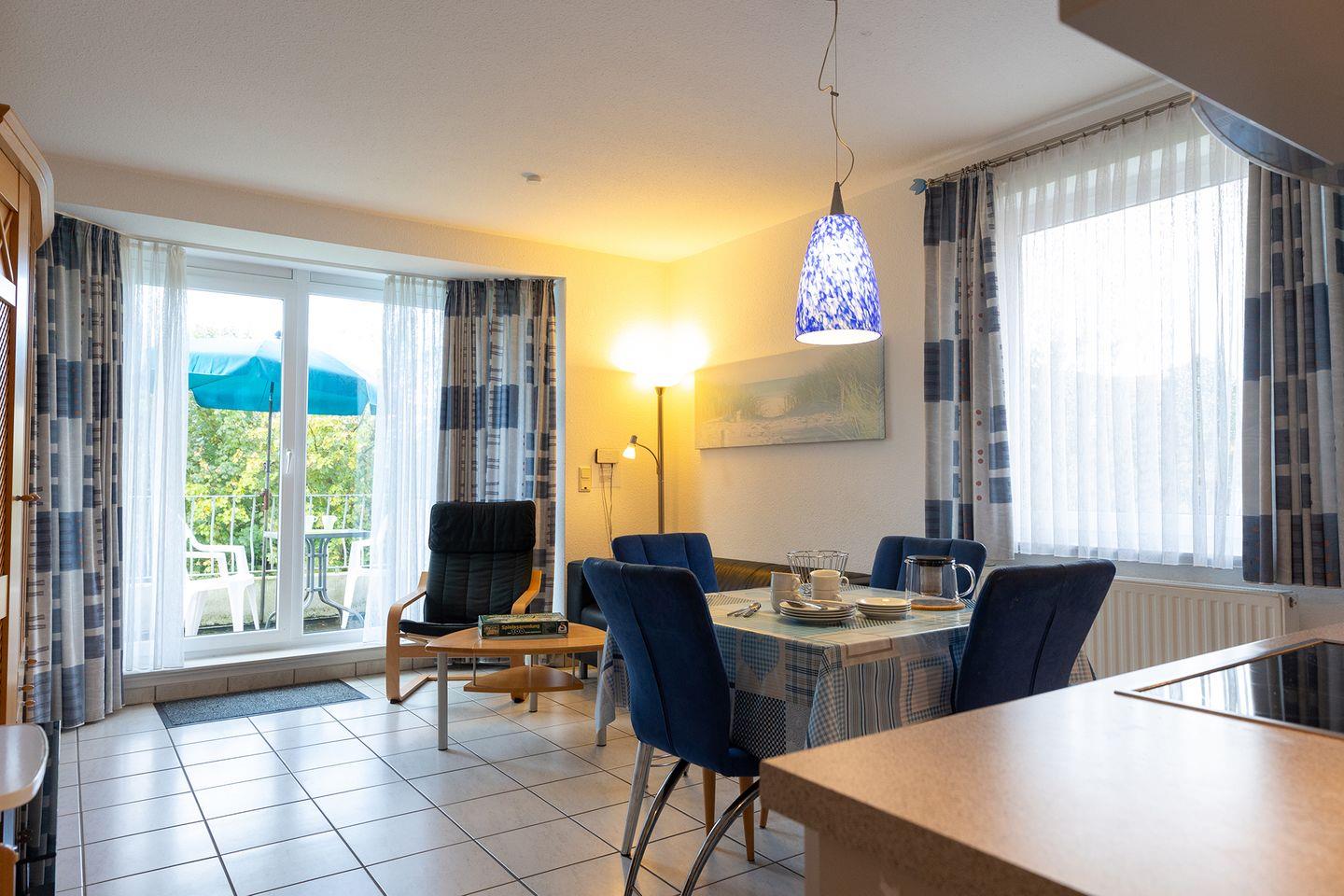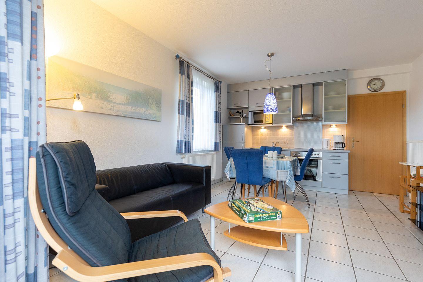 Wohnfläche für bis zu 4 Personen. Die Wohnung ist ausgestattet mit einem