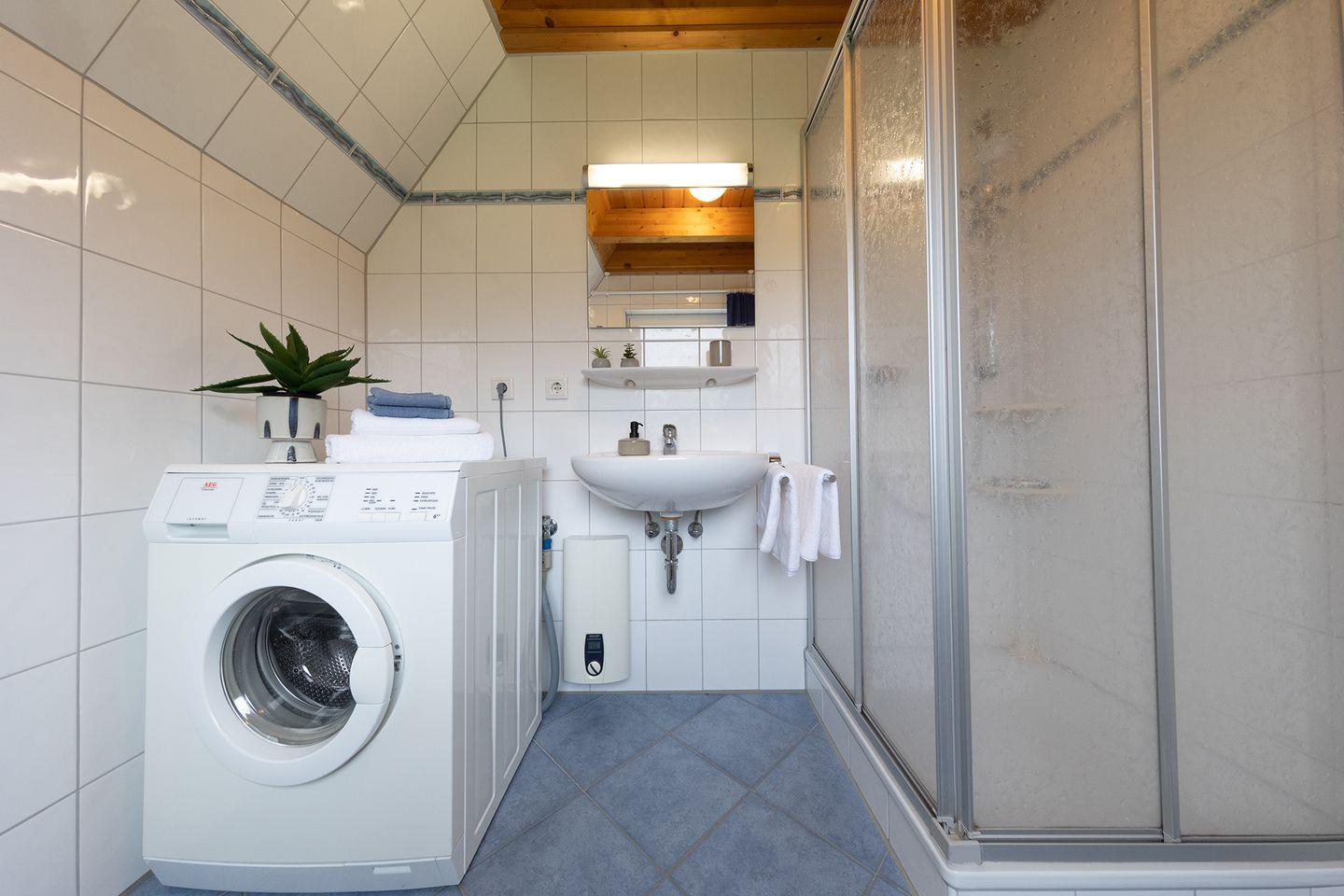 Im Garten kannst du barfuß über den Rasen laufen, die Terrasse ist möbliert und bietet Platz für alle. Kinderstuhl und Kinderbett sind da, genauso wie eine Waschmaschine und Spülmaschine. Das macht so vieles leichter.