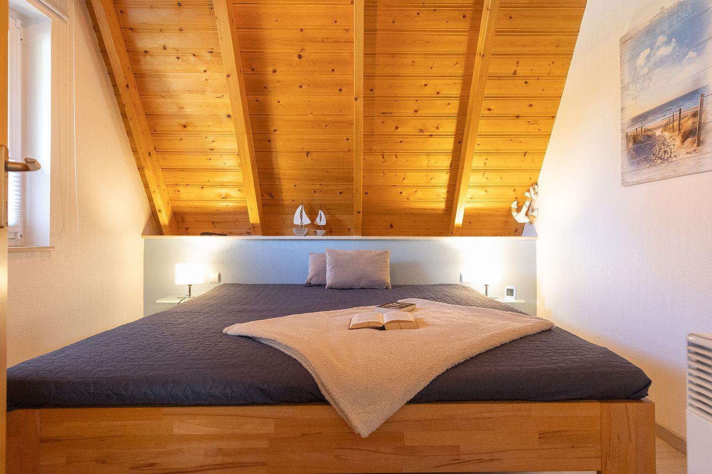 Direkt hinterm Deich, im Cuxland-Ferienpark Wremen, liegt dieses großzügige Ferienhaus für bis zu sechs Personen. Drinnen ist viel Platz auf zwei Etagen, ein Kamin für kühle Abende und alles, was Familien brauchen. Draußen findest du die windgeschützte Terrasse mit Strandkorb, viel Luft und Weite. Der Strand ist nur einen Spaziergang entfernt, genauso wie der Kutterhafen. Ein Ort, der Raum lässt für kleine Abenteuer und große Pausen.