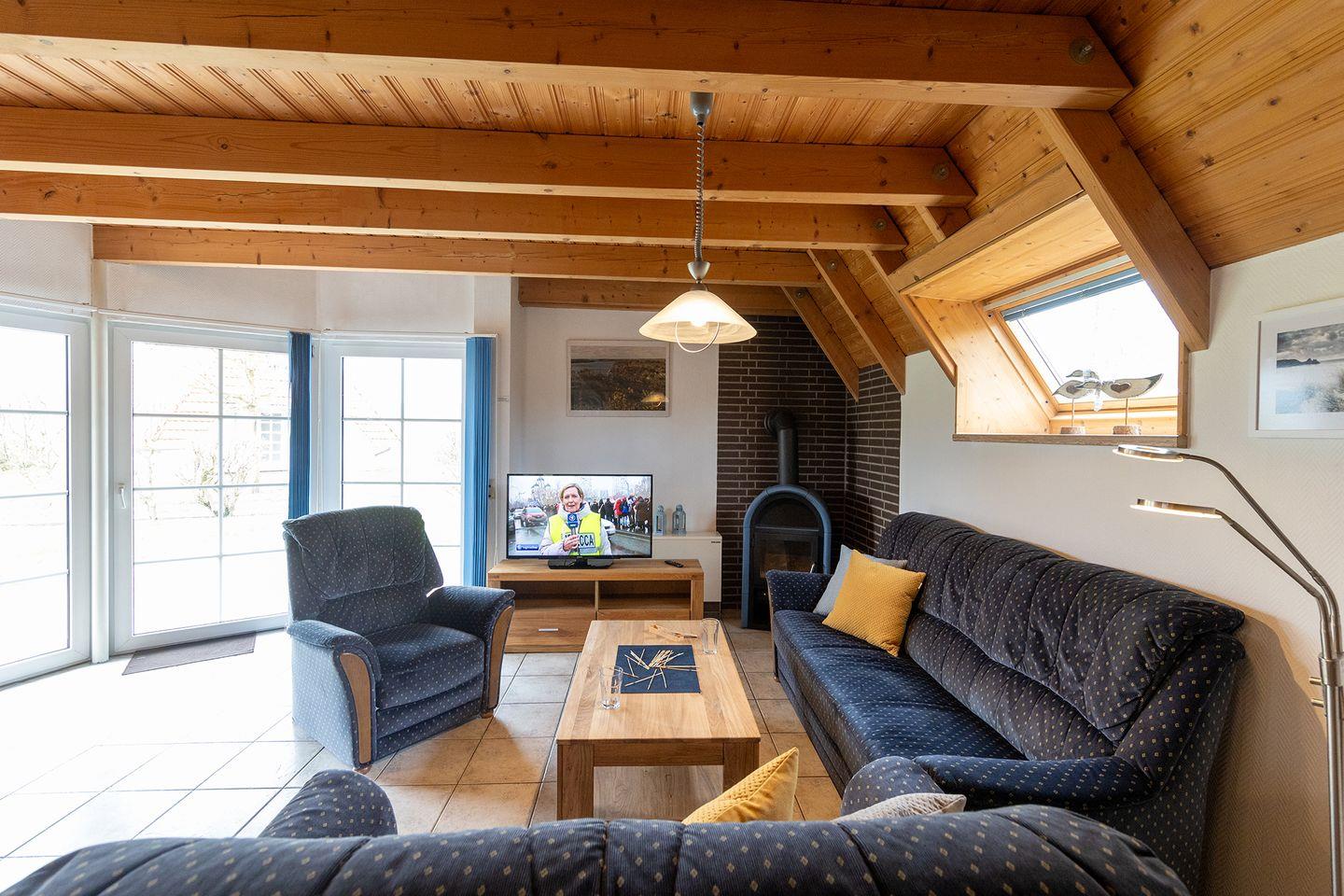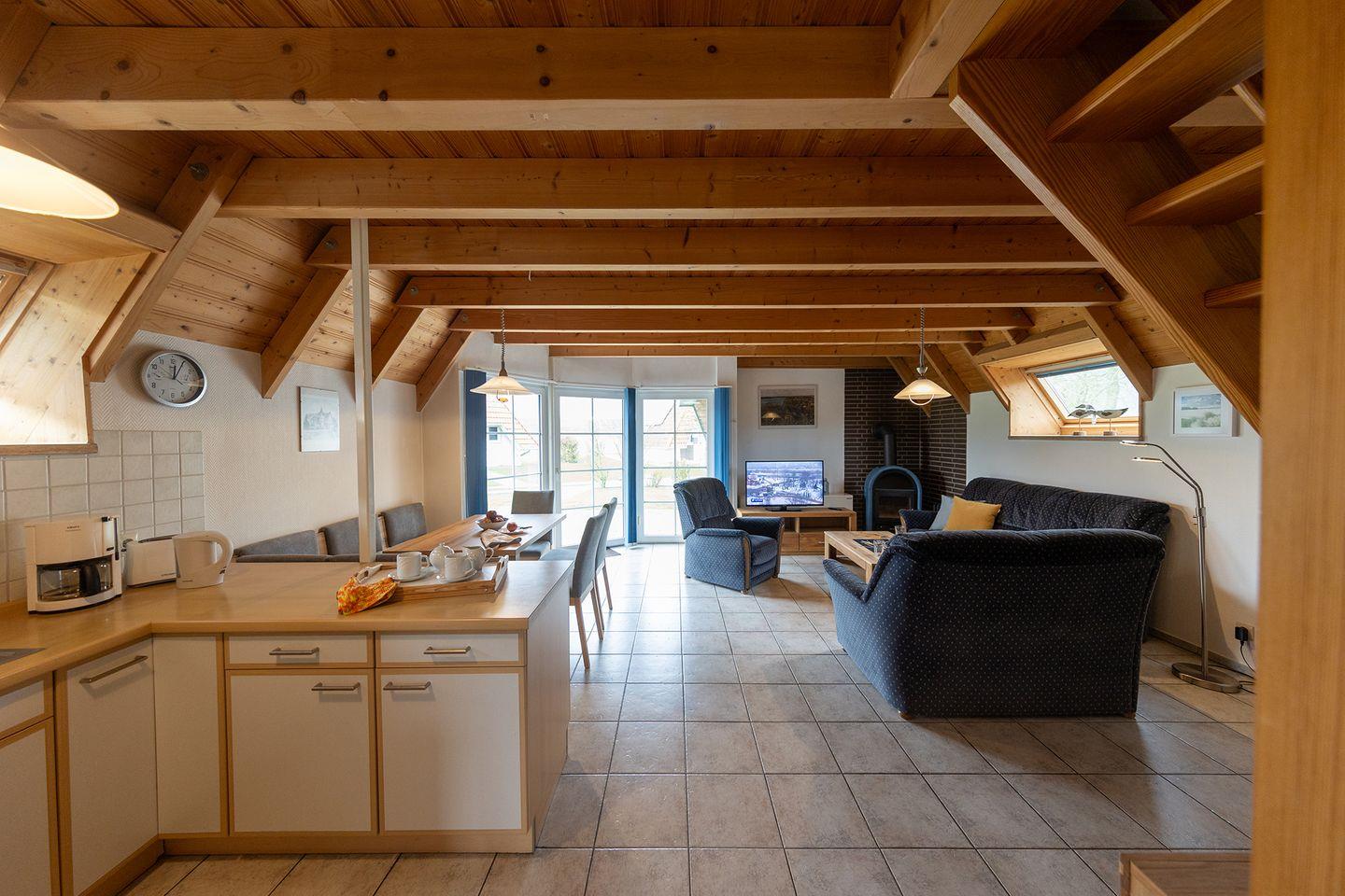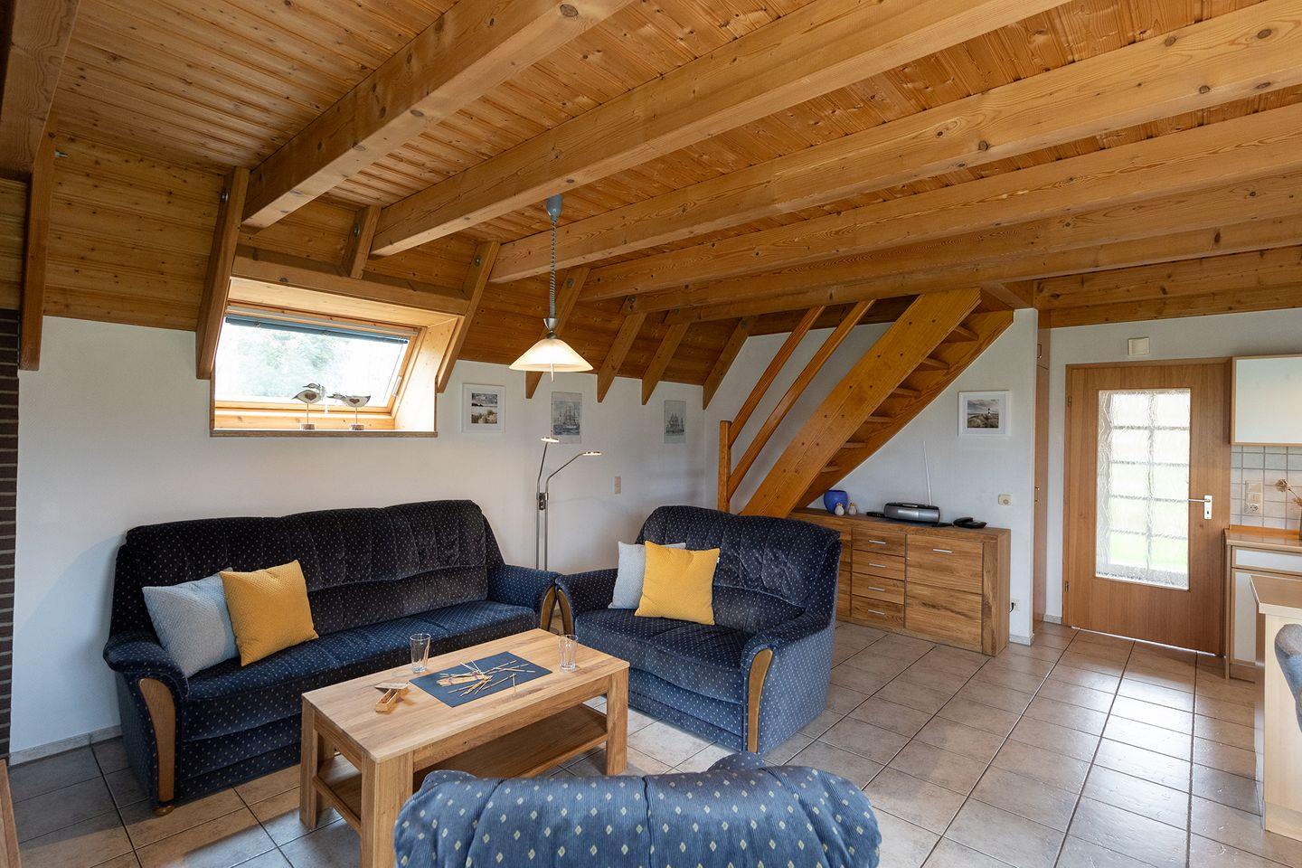 Auf 85?m² und zwei Etagen finden Familien viel Raum zum Ankommen. Im Erdgeschoss: ein helles Wohn-Esszimmer mit bequemer Couch, Kaminofen und Esstisch, eine komplett ausgestattete Küche, ein Schlafzimmer mit zwei Einzelbetten sowie ein Duschbad. Oben: ein Elternschlafzimmer mit Doppelbett, ein weiteres Kinderzimmer mit zwei Einzelbetten und ein zusätzliches WC.