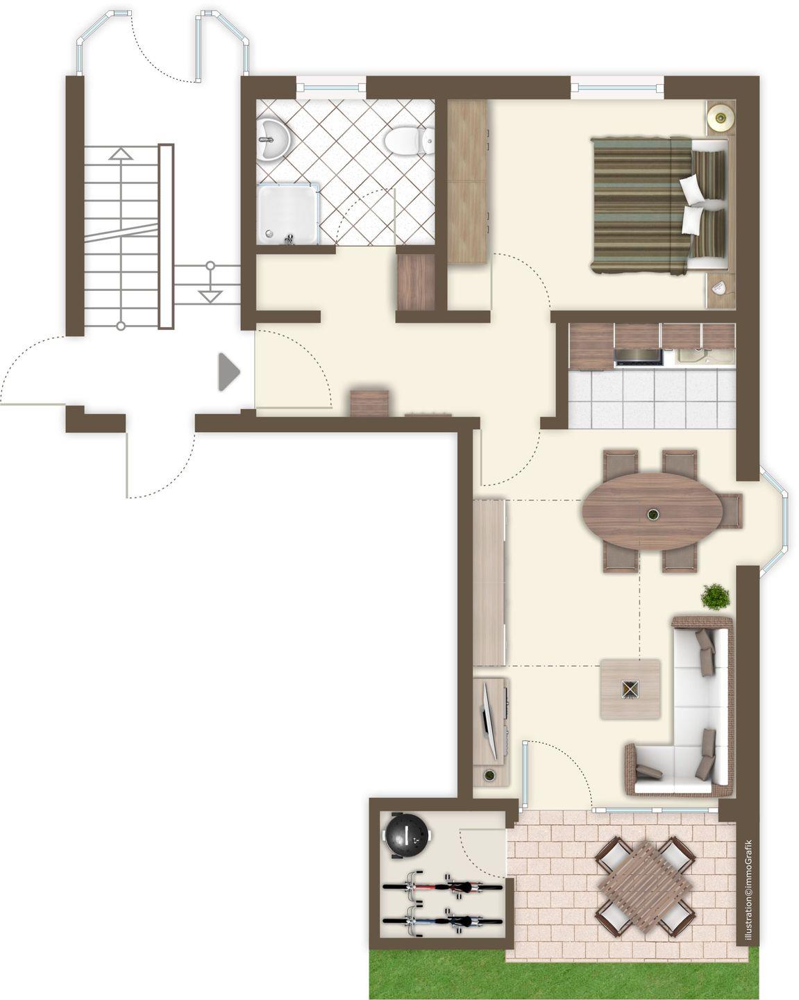 Ferienwohnung Lili Marleen 3-20. Friedlich und mit Sonnenterrasse.