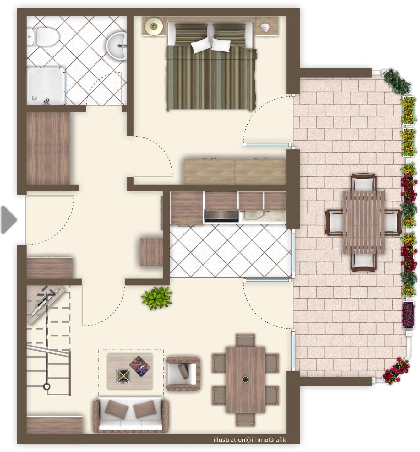 Die Küchenzeile ist in den Wohnraum integriert und voll ausgestattet: perfekt für alle, die auch im Urlaub gern selbst kochen. Wohn- und Schlafbereiche sind mit Laminat ausgelegt, Galerie mit Teppich, Küche und Bad sind gefliest. Das Duschbad ist hell und funktional. Kinderbett, Hochstuhl und ein kostenfreier Parkplatz direkt am Haus machen das Angebot komplett.