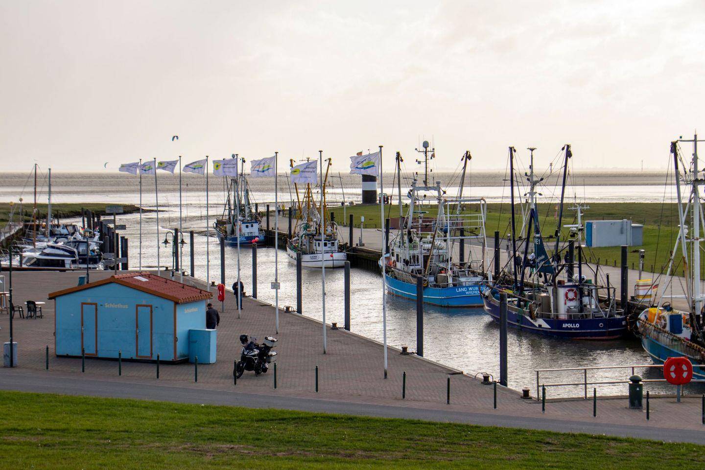 Kinderbett und Hochstuhl sind vorhanden, genauso wie ein kostenfreier Parkplatz. Der Deich beginnt fast direkt vor der Tür. Zu Fuß bist du in wenigen Minuten am Wasser, im Kutterhafen oder auf den Wegen durchs Wattenmeer.
