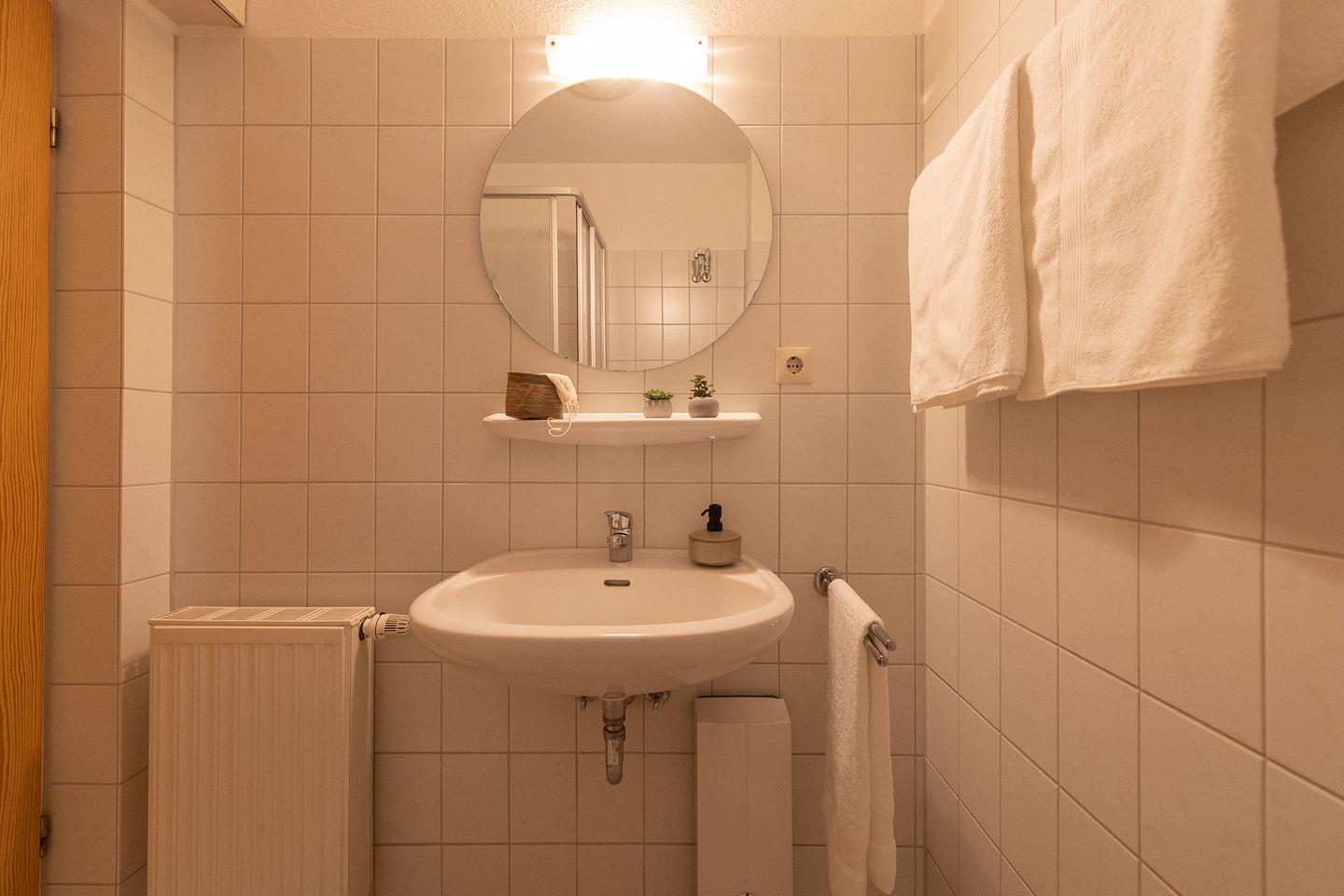 Die Küchenzeile ist in den Wohnraum integriert und voll ausgestattet – ob für ein Frühstück mit Blick nach draußen oder gemeinsames Kochen nach einem langen Strandtag. Laminat in den Wohnräumen, Fliesen in Küche und Bad, Teppich auf der Galerie: alles funktional, alles durchdacht. Das Duschbad mit WC ist hell und gepflegt. Kinderbett, Hochstuhl und ein kostenfreier Parkplatz runden das Angebot ab.