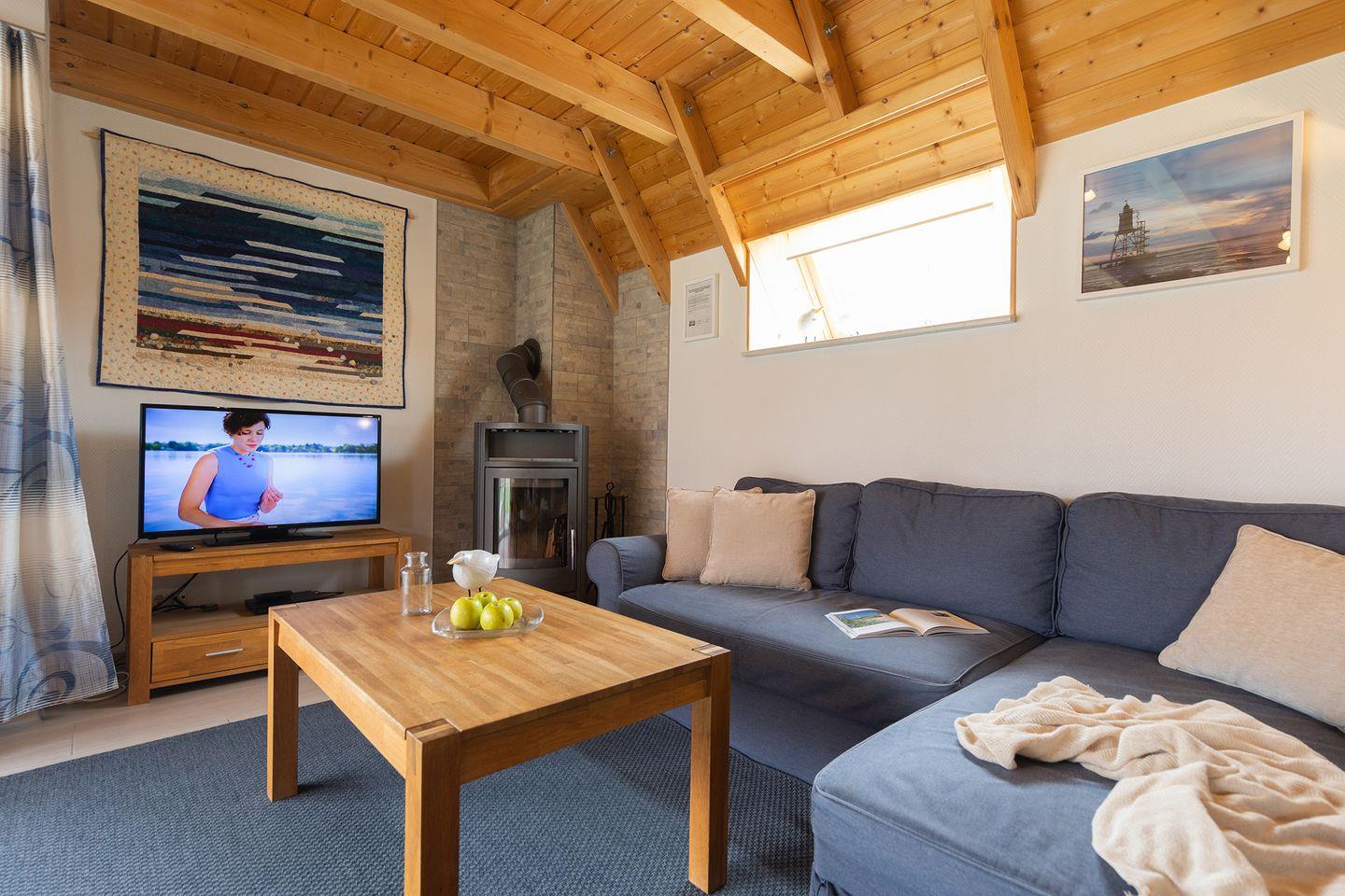 Morgens barfuß durchs Gras, abends Spiele vorm Kamin – hier ist Platz für Familienzeit. Das heimelige Haus für bis zu 6 Personen bietet Kinderbett, Hochstuhl, ein Schlafsofa, Kaminofen und einen sonnigen Garten mit Terrasse. Nur ein Spaziergang trennt euch vom Strand (1km), Hafen und Leuchtturm. Kostenfreie Parkplätze am Haus, E-Ladestationen in der Anlage.