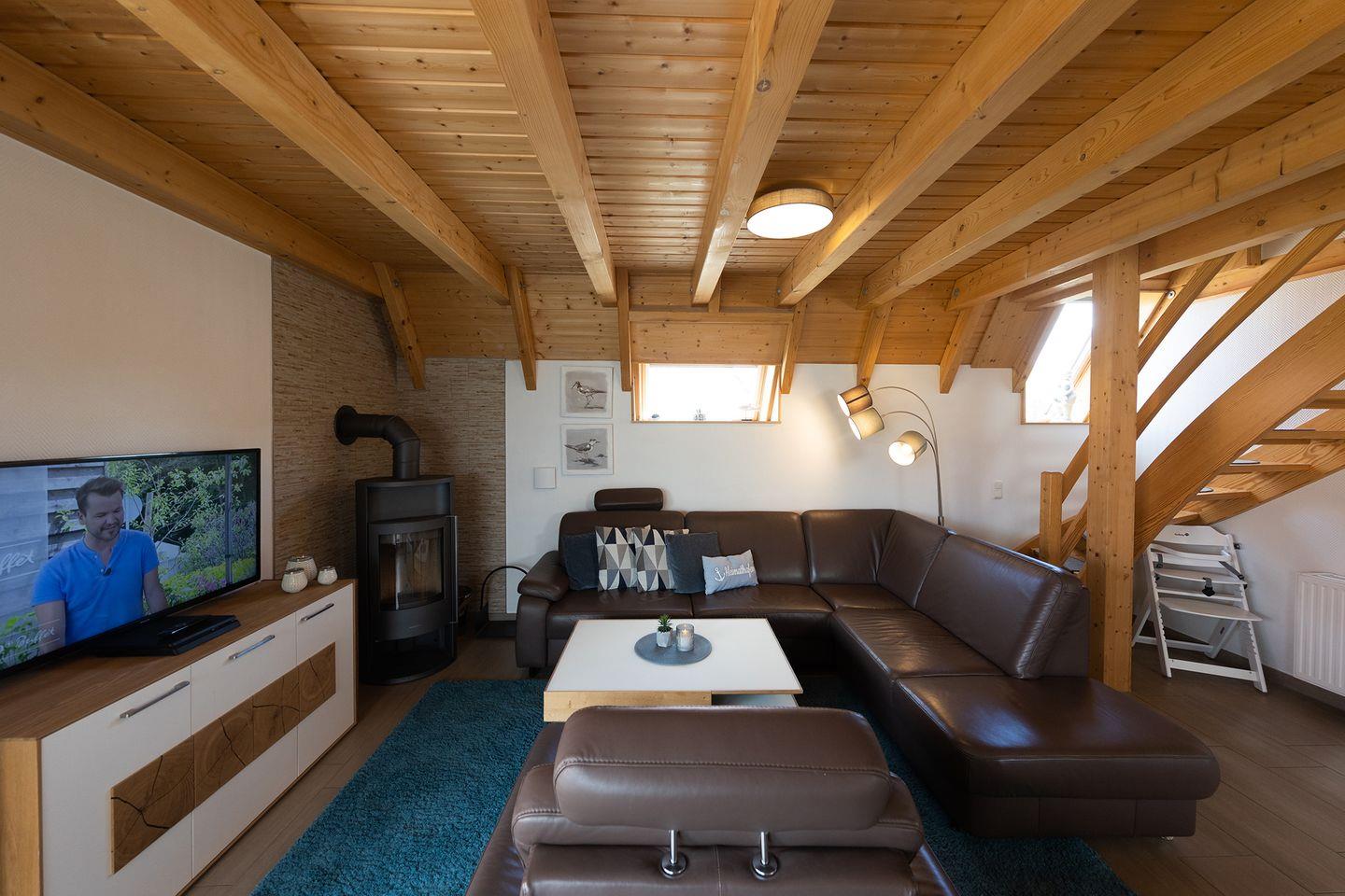 Im Ferienhaus Philipp fühlen sich Familien mit bis zu sechs Personen auf 85 m² sofort zuhause. Drei Schlafräume, offener Wohn-Essbereich mit Kaminofen, voll ausgestattete Küche, Duschbad mit Waschmaschine und zweites WC. Kinderstuhl, Reisebett, Glasfaser-WLAN, E-Ladestation an der Rezeption (gebührenpflichtig) inklusive. Unsere Gäste loben die durchdachte Ausstattung und die Nähe zum Deich.