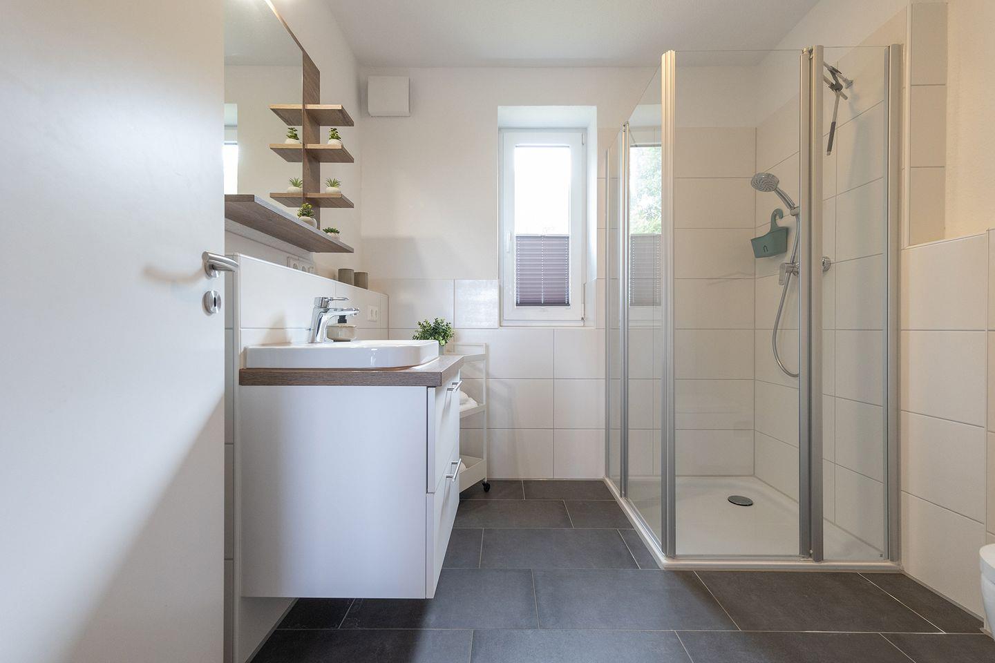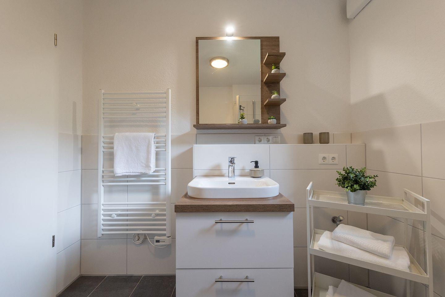 Alle Räume sind mit Laminat und Fußbodenheizung ausgestattet, die Schlafräume lassen sich verdunkeln - gut für kleine Frühaufsteher.
