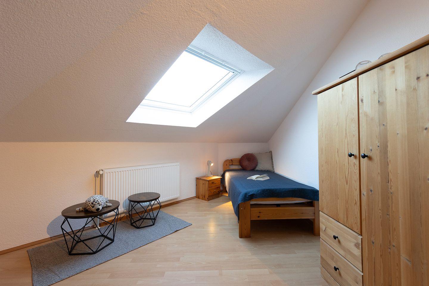Im Schlafzimmer mit Doppelbett finden Eltern ihren Rückzugsort, zwei weitere Zimmer mit je zwei Einzelbetten bieten Platz für Kinder oder Mitreisende. Das Tageslichtbad mit moderner Dusche ist funktional und freundlich zugleich. Kinderbett und Hochstuhl gehören zur Grundausstattung - ganz unkompliziert. Eine Ladestation für E-Autos an der Rezeption sowie ein kostenfreier Parkplatz gewährleisten Komfort.