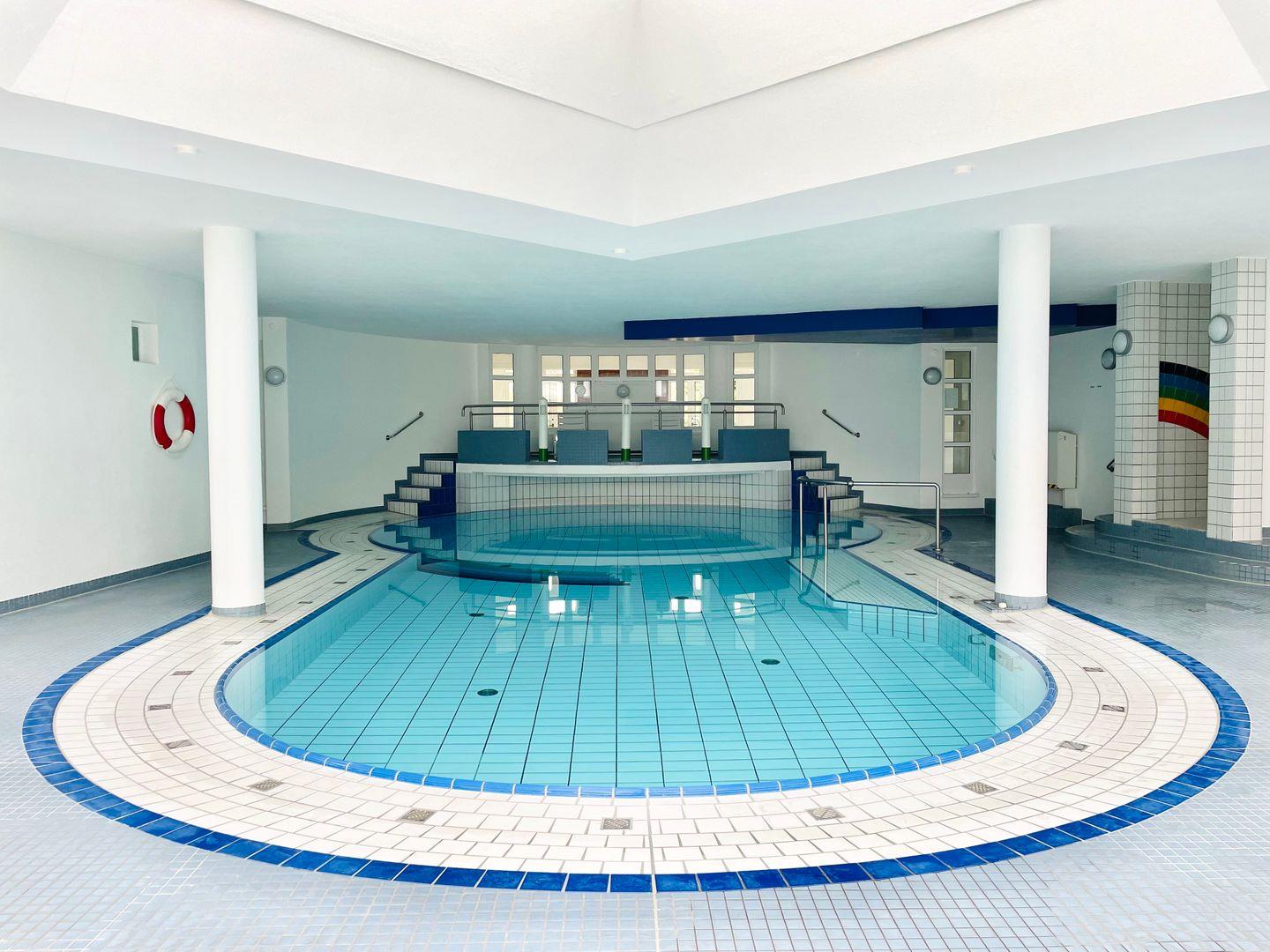 Genieße das Schwimmbad im Nachbarhaus Triton mit Kinderbecken, Whirlpool und gemütlichen Ruheliegen. Das Schwimmbad und das Kinderbecken kannst du kostenlos nutzen, und auch die Sauna steht dir ohne zusätzliche Kosten zur Verfügung.