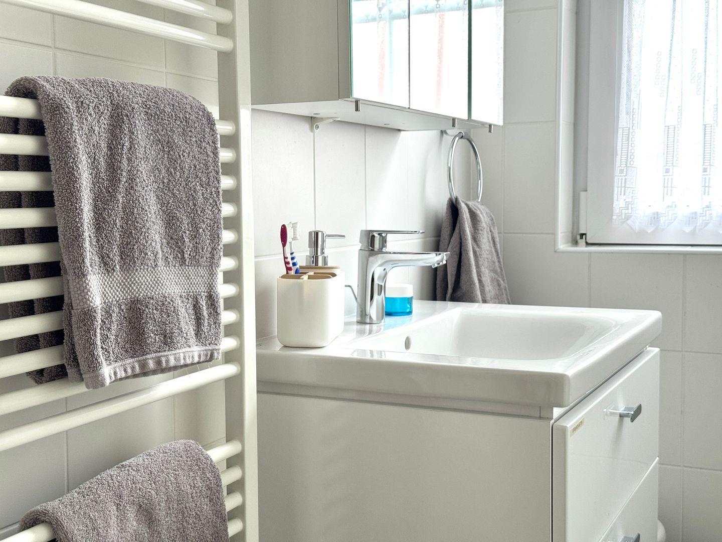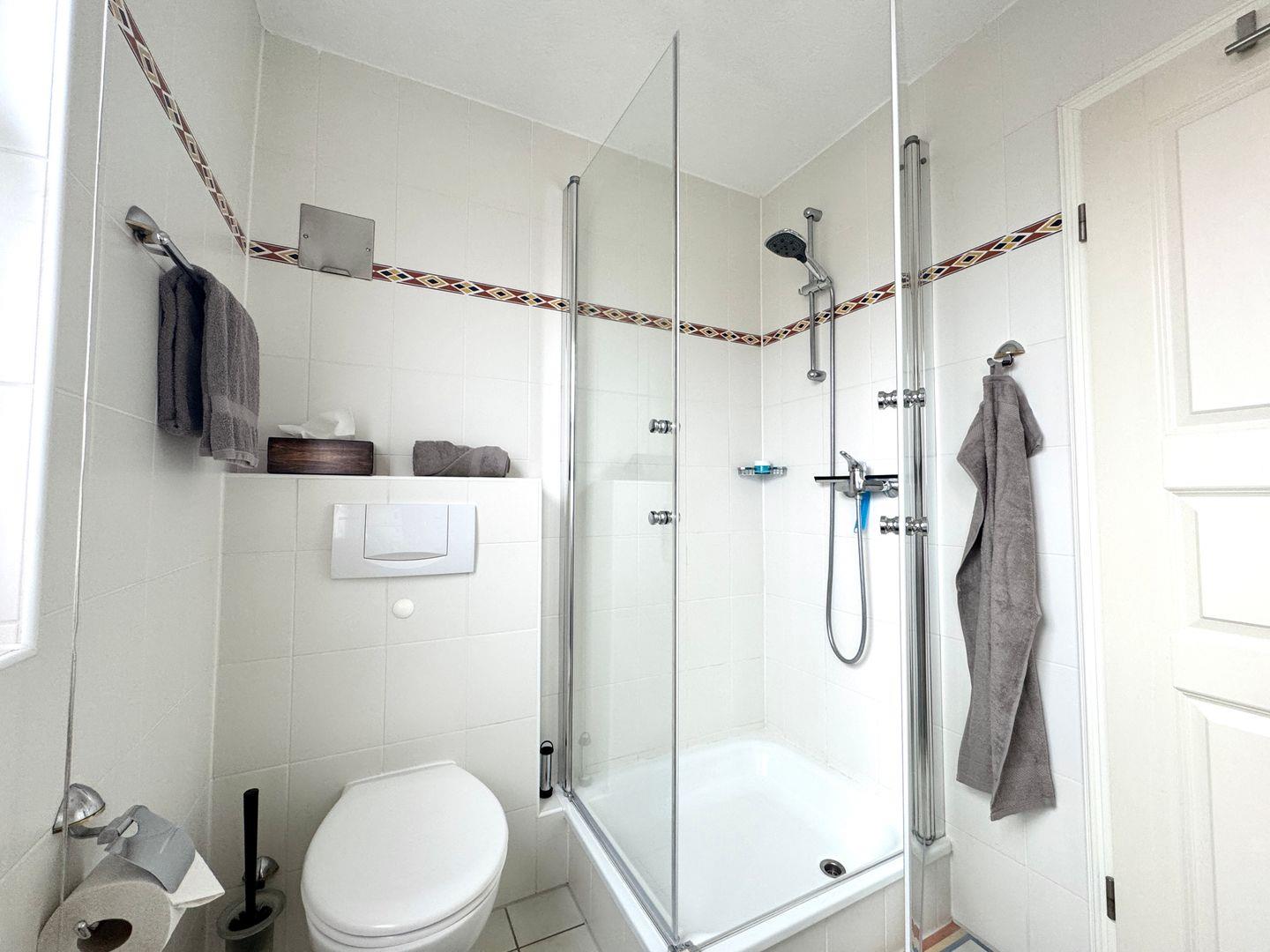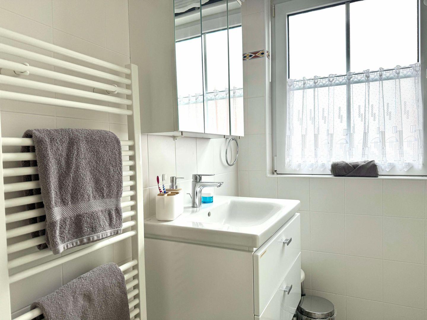 Im Obergeschoss warten zwei Schlafzimmer auf dich: ein Zimmer mit einem Doppelbett (Matratze je 0,90 m x 2,00 m) und ein weiteres mit zwei Einzelbetten (Matratze je 0,80 m x 1,90 m). Das Badezimmer bietet zusätzlichen Komfort mit Fußbodenheizung, Handtuchheizung und einer Dusche.