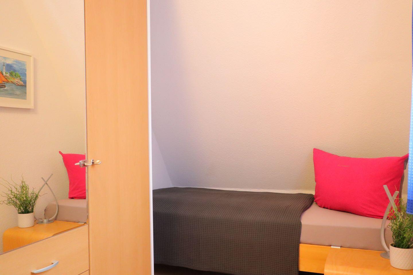 Die liebevoll eingerichtete Villa am Meer- "Seeadler" bietet zwei gemütliche Schlafzimmer, ein modernes Duschbad mit Fußbodenheizung und ein Gäste-WC im Obergeschoss. Außenjalousien und halbseitige angebrachte Fliegengitter sorgen für angenehme Nächte und erholsame Ruhe.
