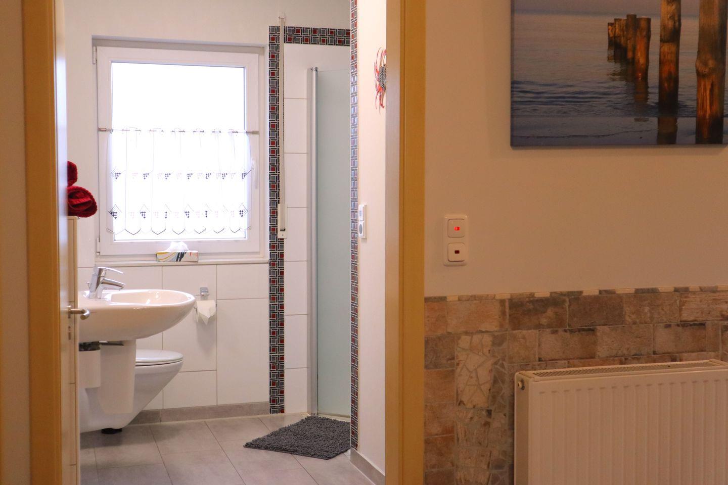 Die moderne Einbauküche ist mit allem Komfort ausgestattet und lädt dazu ein, kulinarische Köstlichkeiten zuzubereiten. Ein großzügiges, ebenerdiges Duschbad sorgt für zusätzlichen Komfort. Im Wohnbereich sorgen ein gemütlicher Kaminofen und eine Fußbodenheizung für wohlige Wärme, während die überdachte Terrasse mit Gartenmöbeln und gemauertem Grill ideale Voraussetzungen für gesellige Abende im Freien bietet. Ein Parkplatz direkt am Haus macht die Anreise besonders bequem.