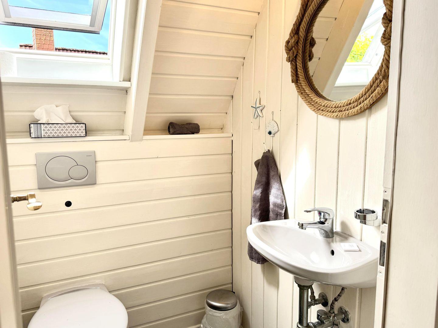 Mit ca. 70 m² Wohnfläche bietet dir Dat Onnen Hus – Nordisch mit Herz alles, was du für eine erholsame Auszeit brauchst. Der offene Wohn- und Küchenbereich mit voll ausgestattete Küche und Geschirrspüler lädt zum Verweilen ein, während der Kamin für gemütliche Abende sorgt (Brennholz bitte selbst mitbringen). Ein Duschbad im Erdgeschoss sorgt für zusätzlichen Komfort. Über eine Wendeltreppe gelangst du ins Dachgeschoss mit zwei hellen Schlafzimmern und einem zusätzlichen Gäste-WC. Im Hauptschlafzimmer befindet sich zudem ein TV.
