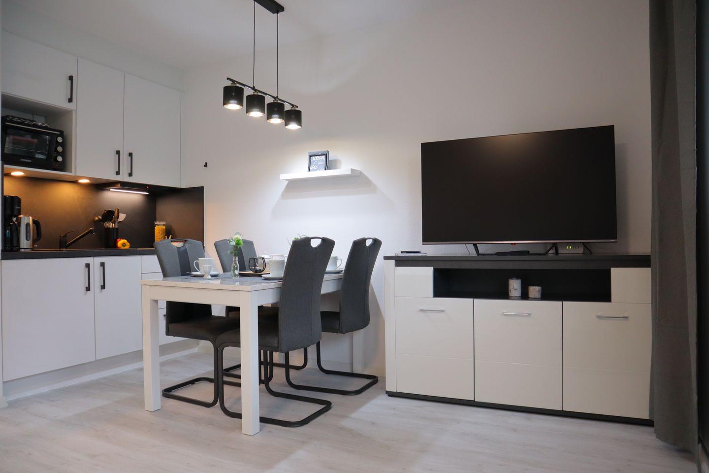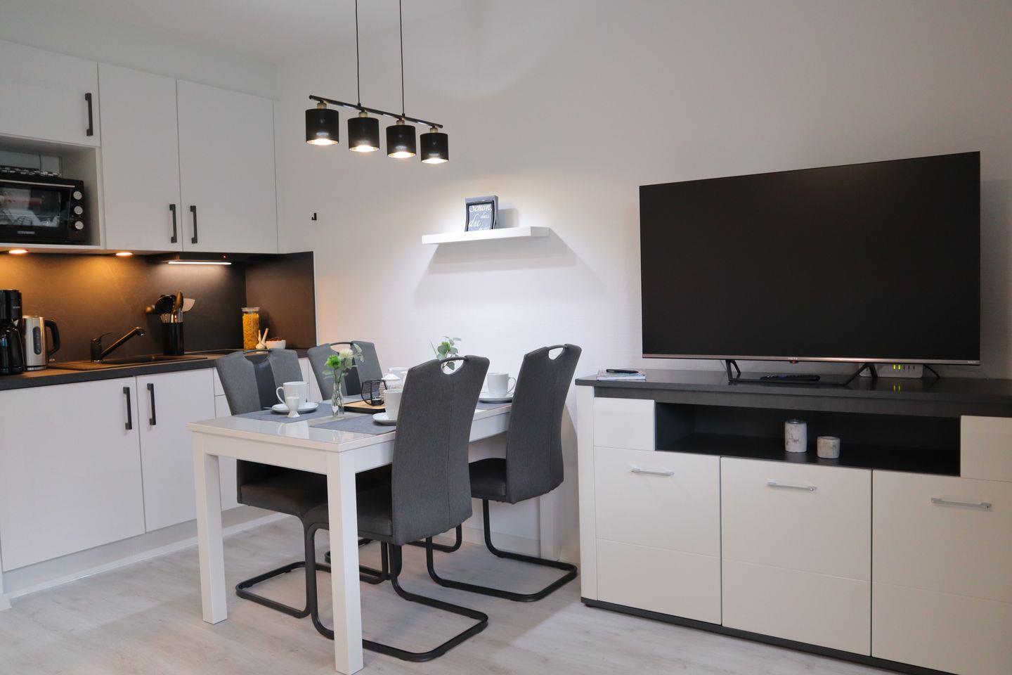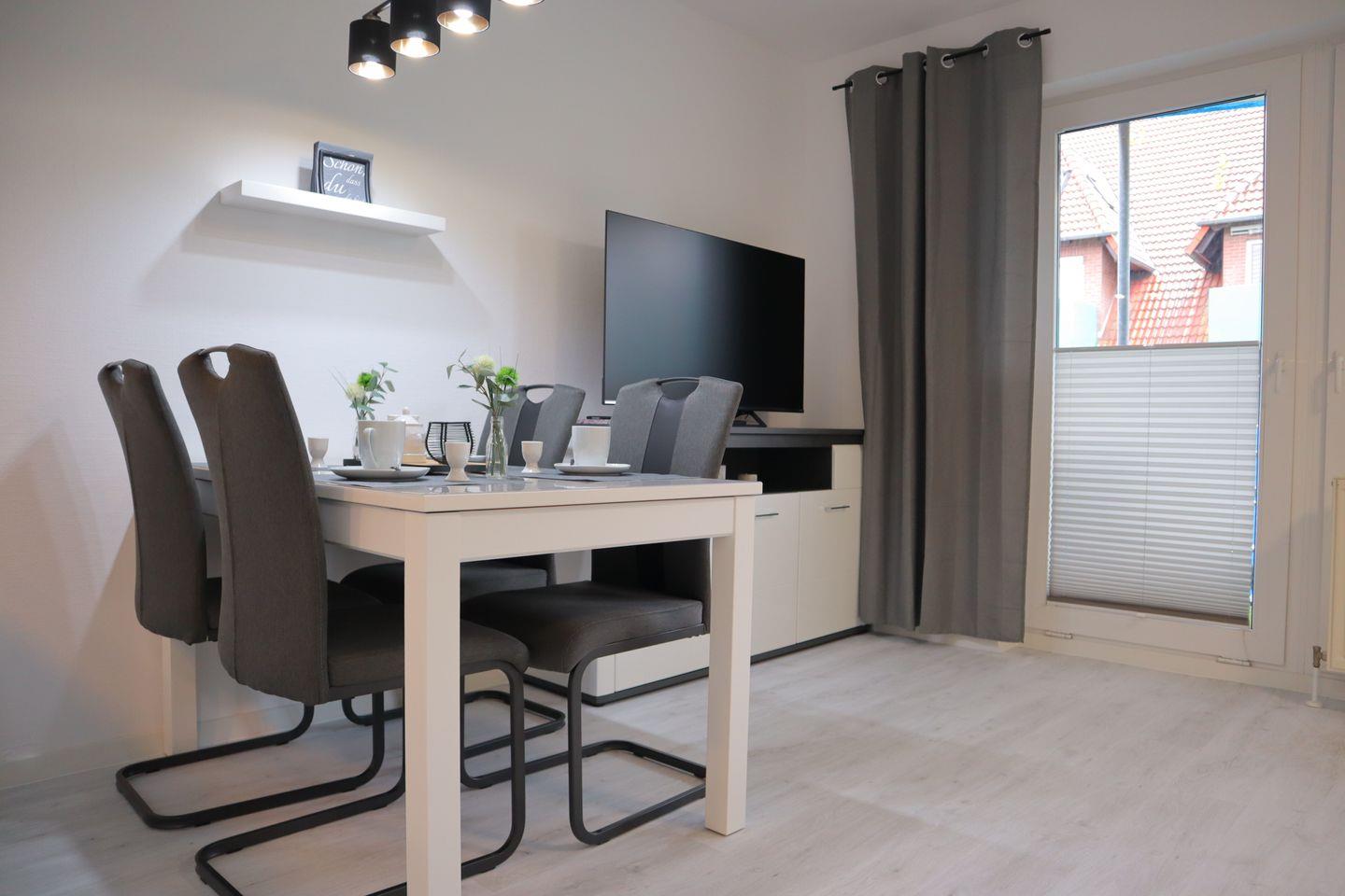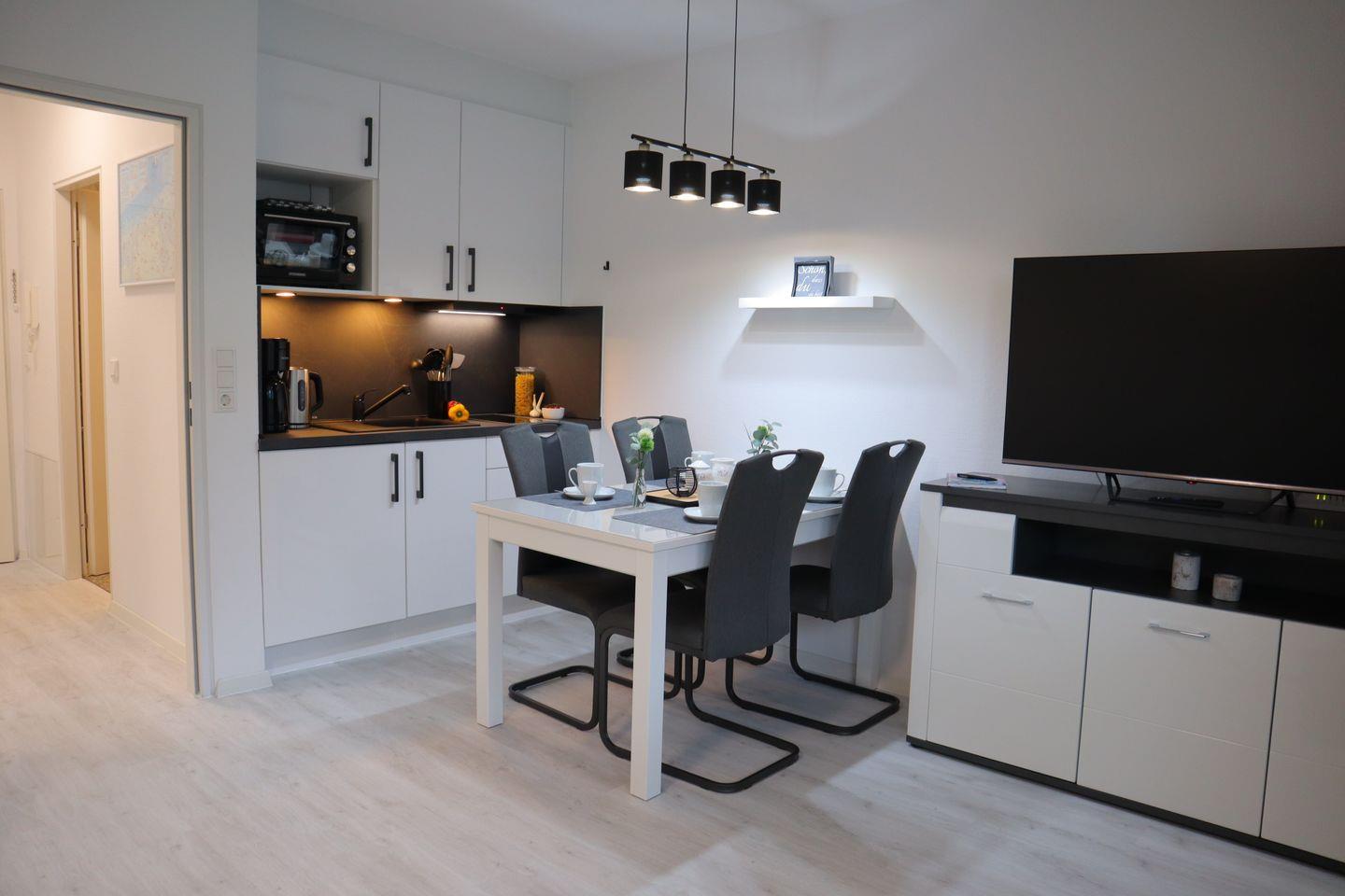Genießt erholsame Tage in einer liebevoll ausgestatteten Wohnung mit Schlafzimmer, Schlafcouch, moderner Küche, sonnigem Balkon und zeitlosem Duschbad. Zwei Fahrräder, ein Parkplatz und die Nähe zum Wattenmeer machen euren Urlaub perfekt.