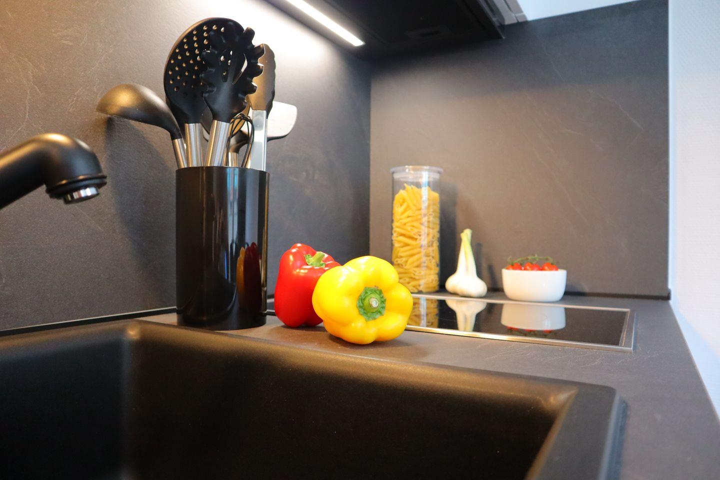 Die neue Einbauküche lädt zum Kochen ein, der Balkon zum Verweilen bei Morgensonne