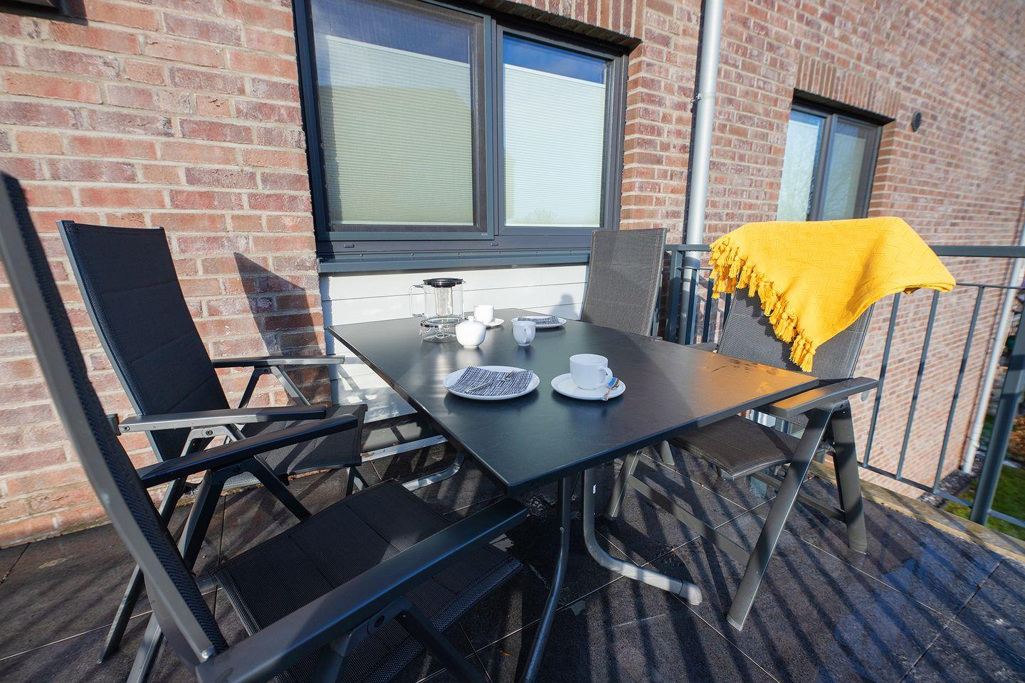 Wer nach Dorum-Neufeld kommt, sucht keine Hochglanz-Urlaubswelt, sondern das echte Küstenleben. Die Ferienwohnung „Küstenkind Dorum" liegt gut 1.000 Meter vom Strand entfernt – nah genug für spontane Spaziergänge, weit genug für Ruhe. Die 67 m² große Wohnung im ersten Stock ist hell und funktional eingerichtet: offener Wohn-Essbereich mit Balkon und Blick ins Grüne, ein separates Schlafzimmer für zwei Personen, modernes Bad mit ebenerdiger Dusche.