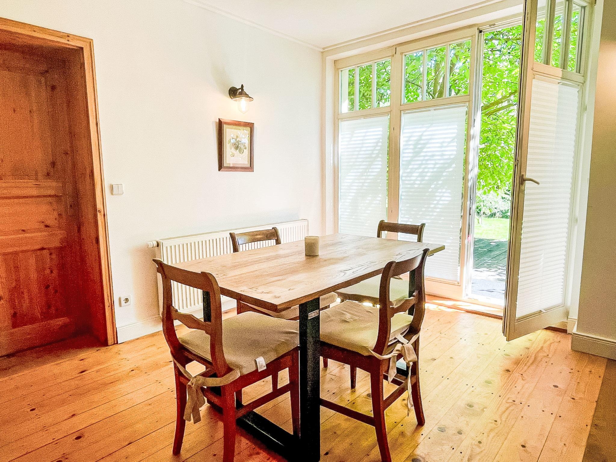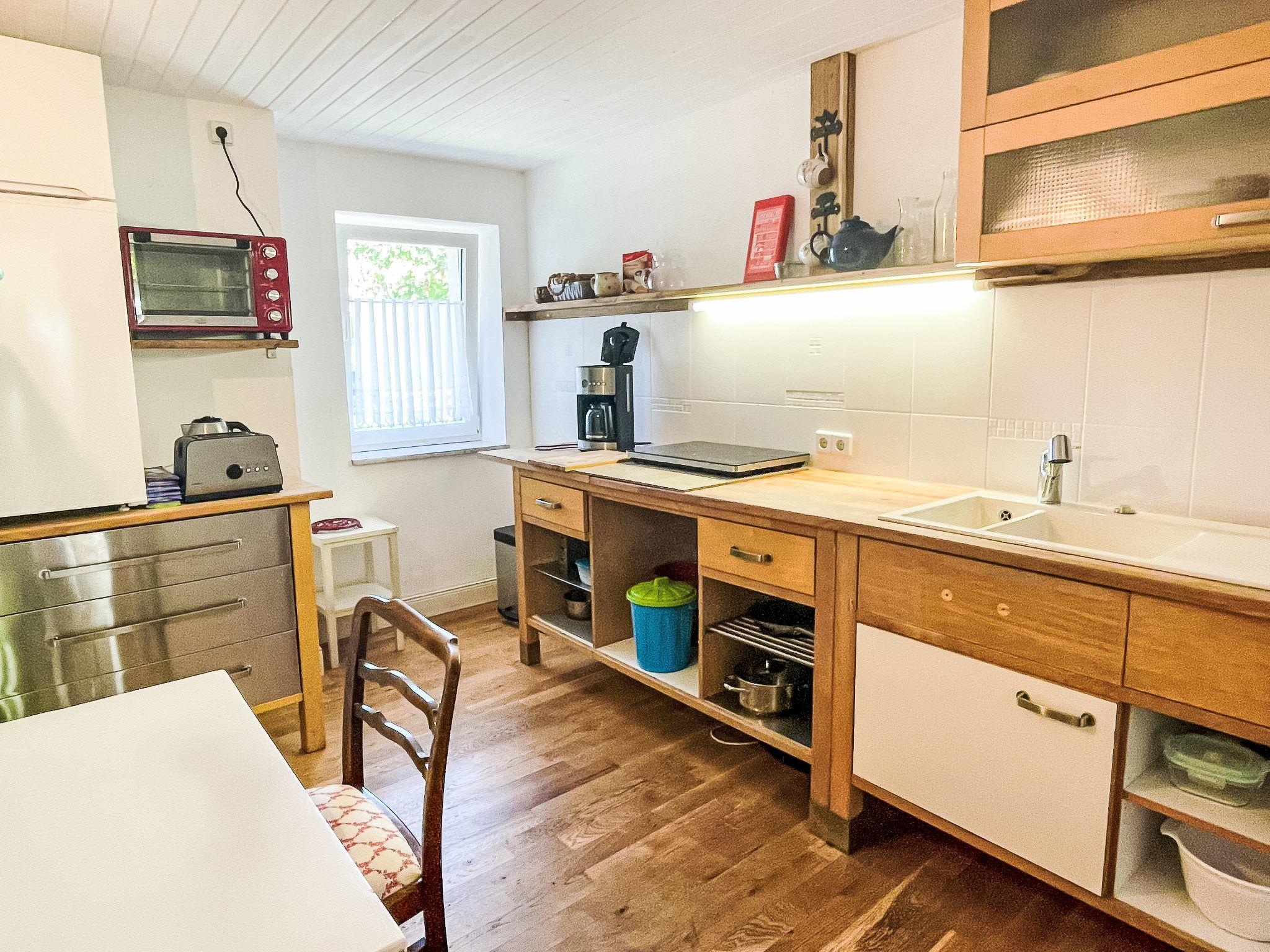"Parkblick", 1-room house 65 m2. Object suitable for 2 adults + 1 child. Renovated in 2022, cosy furnishings: living/sleeping room with 1 sofabed and 1 double bed (180 cm, length 200 cm), dining table and satellite TV (flat screen). Exit to the terrace. Kitchen (2 ceramic glass hob hotplates, toaster, kettle, microwave, freezer, electric coffee machine). Bath/shower/WC. Gas heating, wood heating. Terrace 30 m2. Terrace furniture. Facilities: washing machine. Internet (WiFi, free). Parking at the house. Please note: non-smoking house. Private entrance, smoke alarm, fire extinguisher. The house is adjacent to another vacant building. The landlord only accepts a maximum of 2 adults + 1 child.