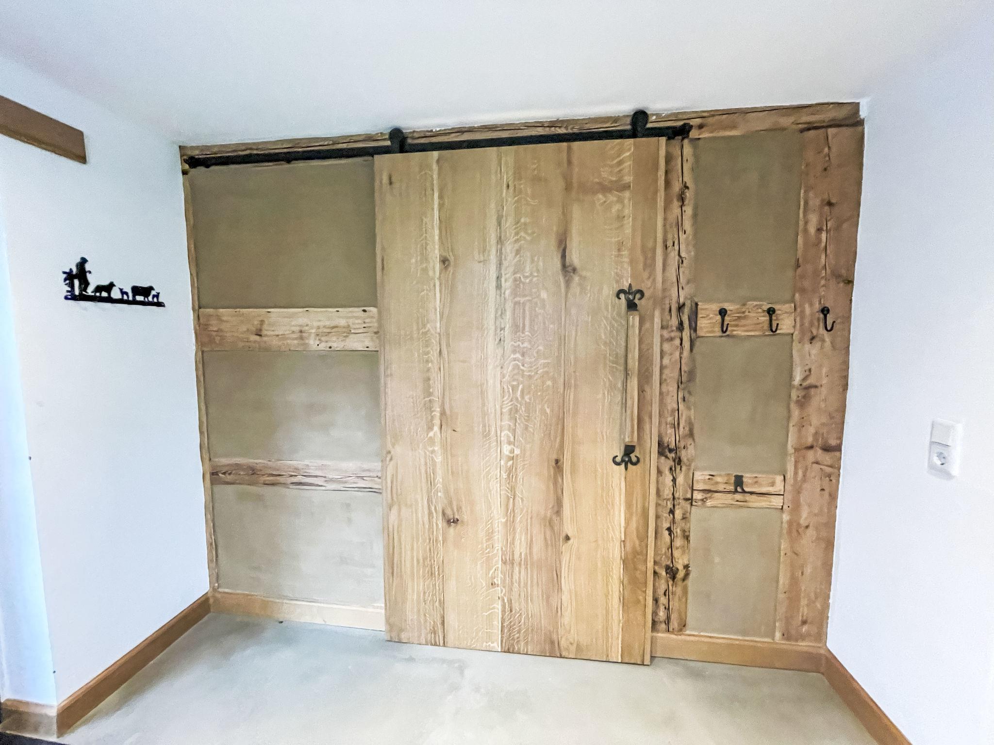 "Tiny House de luxe", 1-room chalet 65 m2, on the ground floor. Bright, partly with sloping ceilings, fully renovated in 2024, very stylish and cosy furnishings: open living/sleeping room with 1 sofabed (100 cm, length 200 cm), 1 double sofabed (180 cm, length 200 cm), Scandinavian wood stove. Exit to the terrace. Open kitchen (oven, dishwasher, 4 ceramic glass hob hotplates, kettle, electric coffee machine) with dining table and kitchen corner. Shower/WC. Parquet floors, natural stone floors. Large terrace 20 m2. Terrace furniture. Beautiful view of the garden. Facilities: washing machine. Parking (1 car) at the house. Please note: non-smoking house. The furniture and window sills are made from our own wood from the adjacent forest. The walls are made of sand-lime brick. Bookings accepted for holiday purposes only.