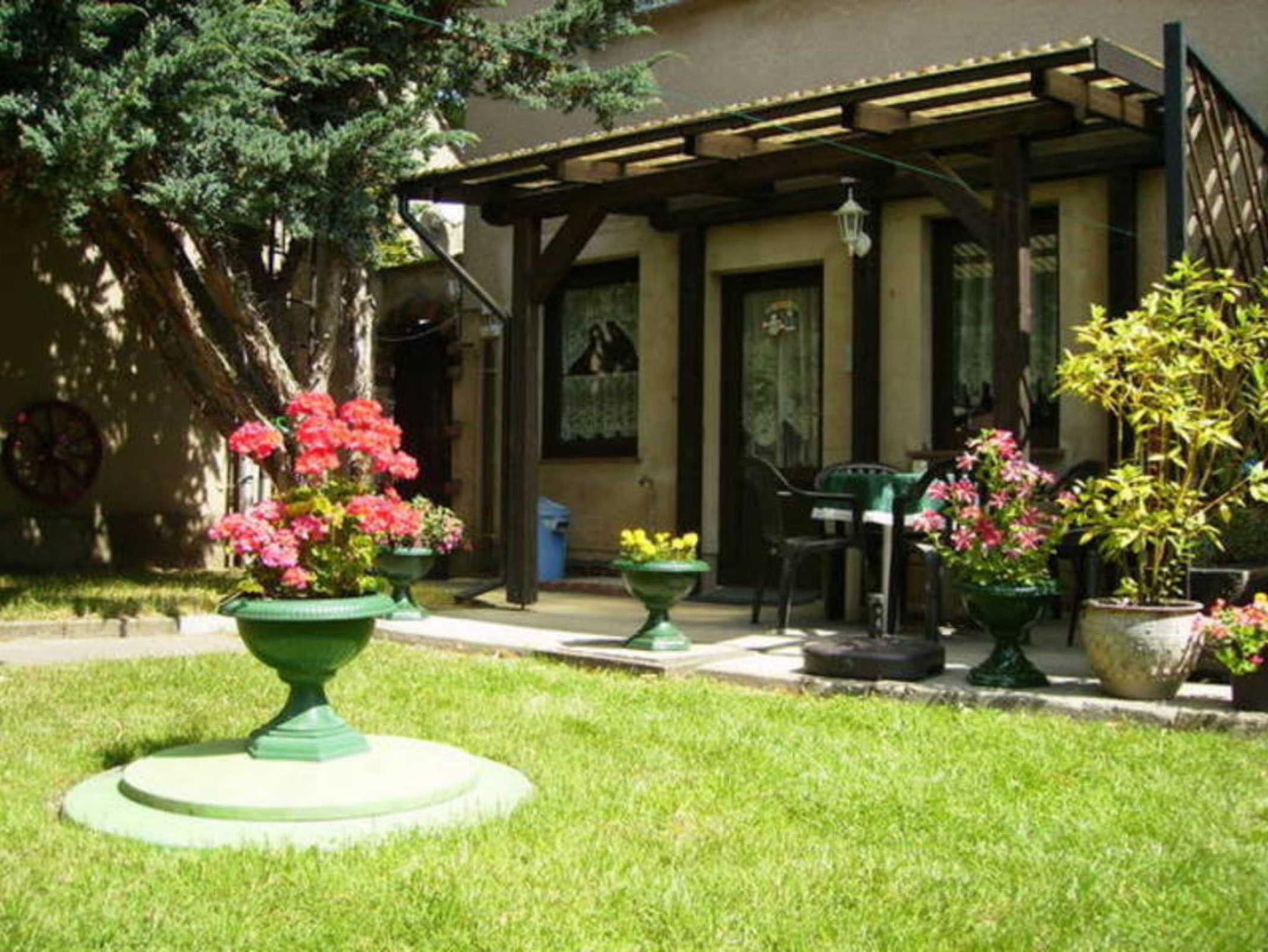 Die Ferienwohnung hat eine überdachte Terrasse mit Gartenmöbel und Grill, Sitzecke und eine Liegewiese. Ihr Auto können Sie direkt auf dem Grundstück parken.