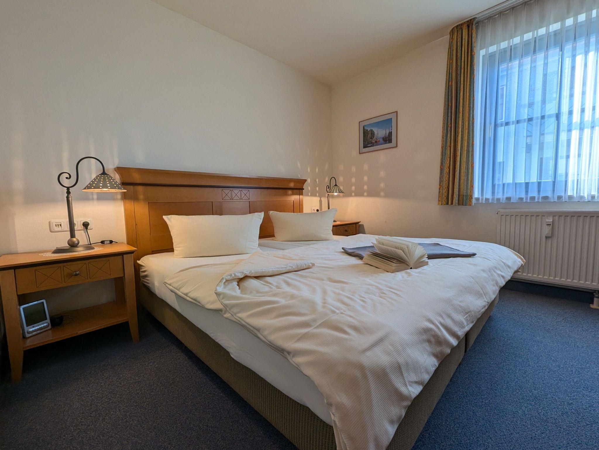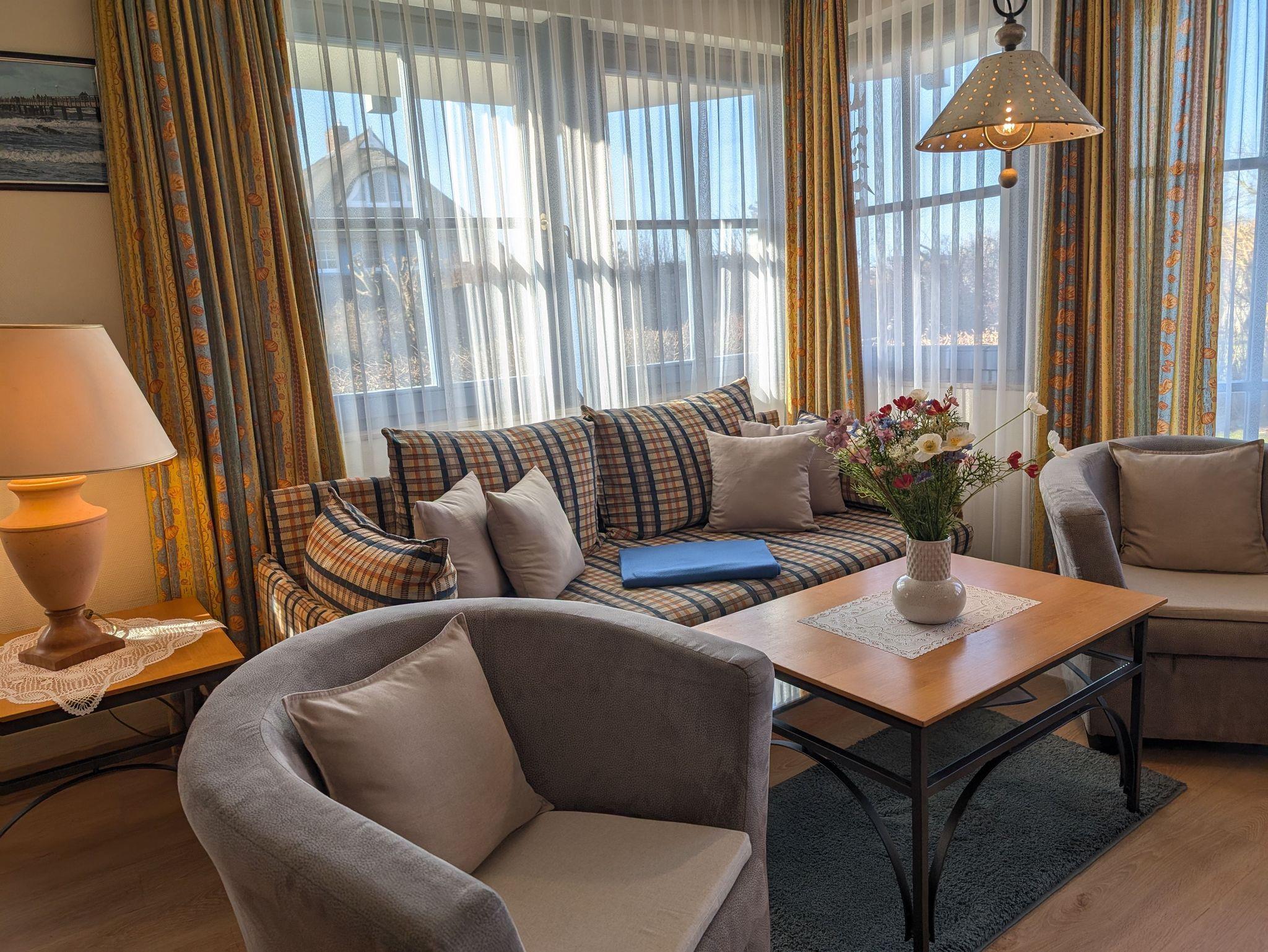 die helle und freundliche Wohnung liegt in direkter Strandlage. Die Terrasse liegt süd- westseitig und lädt zum gemütlichen Frühstück oder Abendessen ein, oder genießen Sie einfach die traumhaften Sonnenuntergänge am feinsandigen Ostseestrand in 50 m Entfernung. Das Wohnzimmer verfügt über eine Schlafcouch für 2 Personen, SAT- TV, Musikanlage und kostenlosem WLAN- Zugang. Das Schlafzimmer ist ausgestattet mit einem Radiowecker und einem Doppelbett 1,80 x 2,00 m (getrennte Matratzen) sowie viel Stauraum. Die offen gestaltete Küchenzeile mit umfangreichen Kochutensilien, 4-Platten- Cerankochfeld, Geschirrspülmaschine, Minibackofen und dem Essplatz laden zum gemeinsamen Kochen und Beisammensein ein. Teilweise ist ein Insektenschutz vorhanden. Das Bad mit Badewanne inkl. Duschabtrennung und WC ist innen-liegend. Der Parkplatz befindet sich in der Tiefgarage. Ein Münz-Waschsalon finden Sie im Nachbarhaus. Die Wohnung wird inklusive Bettwäsche übergeben, Handtücher können in der Zimmervermittlung für 7,00 € pro Person (1 Badetuch, 1 Handtuch) dazugebucht werden. Haustiere sind nicht gestattet.Die Wohnung ist eine Nichtraucherwohnung.