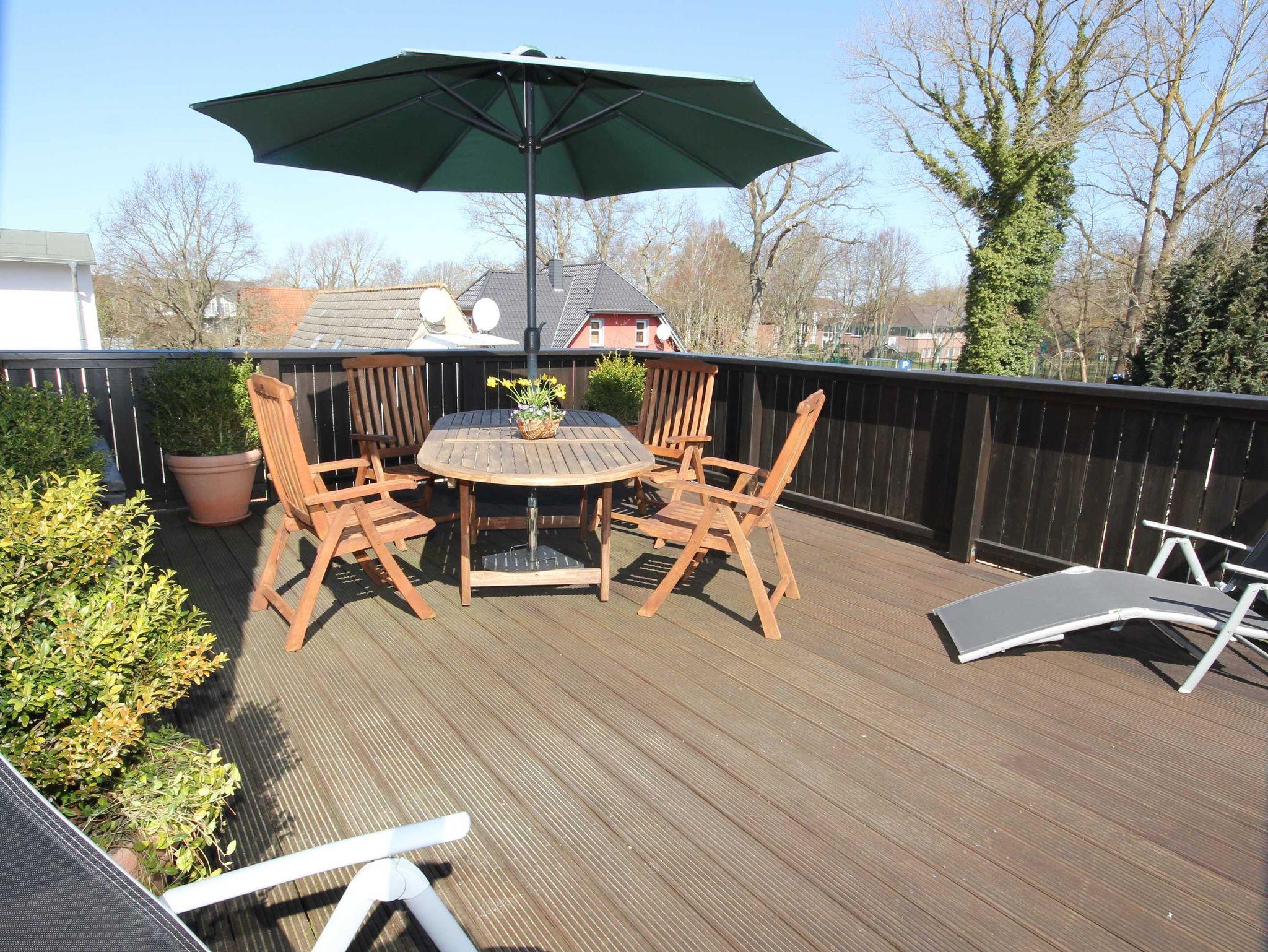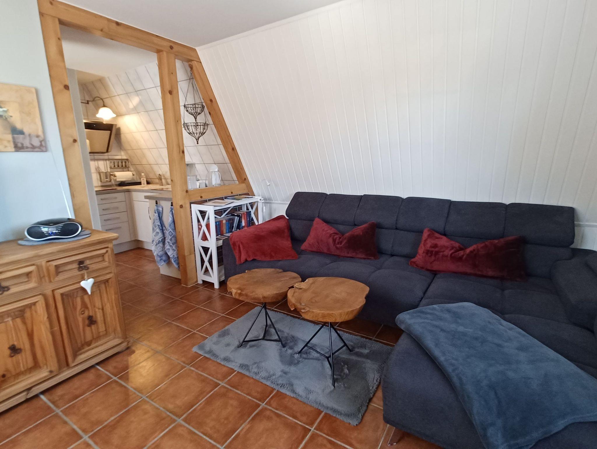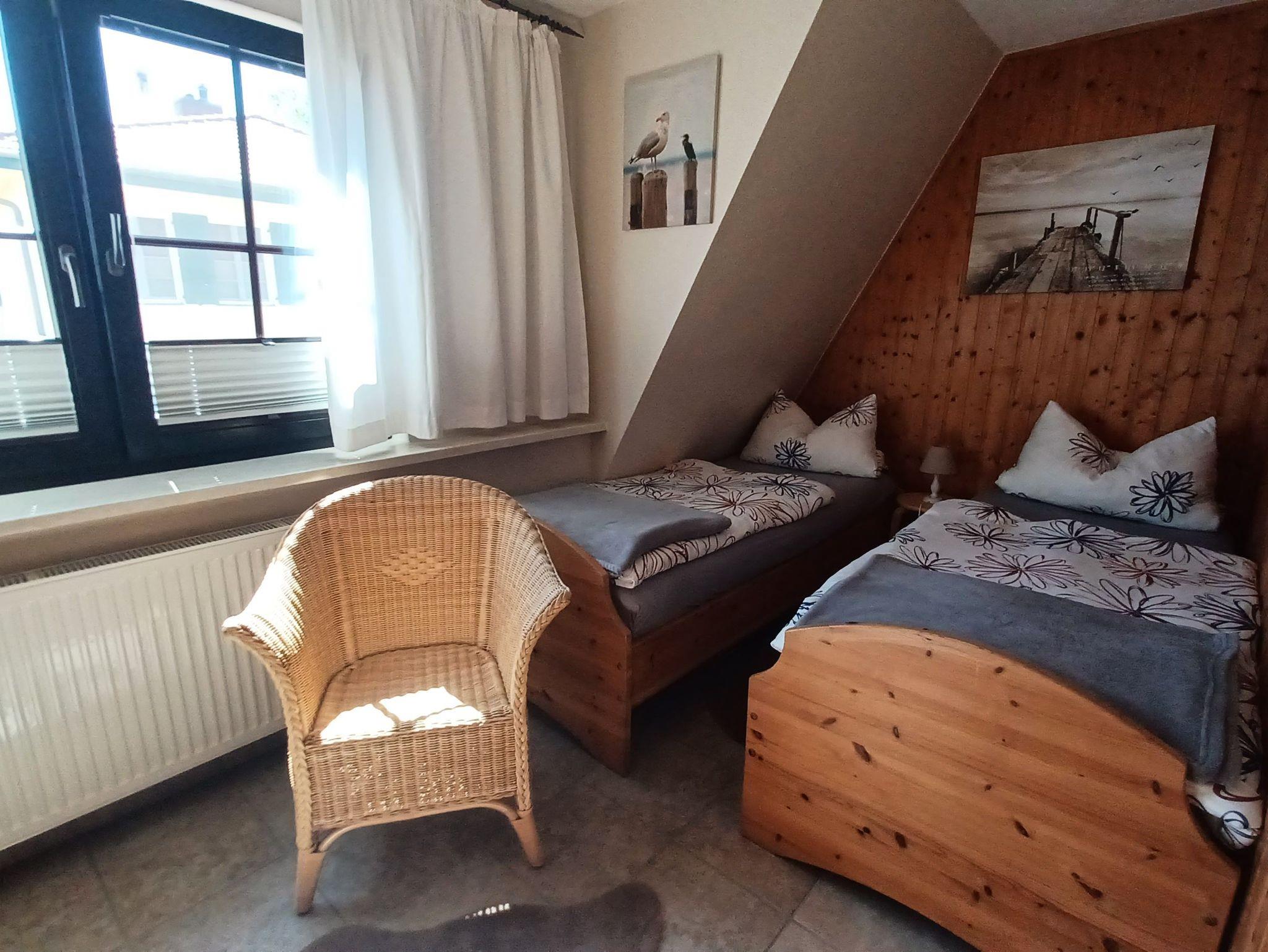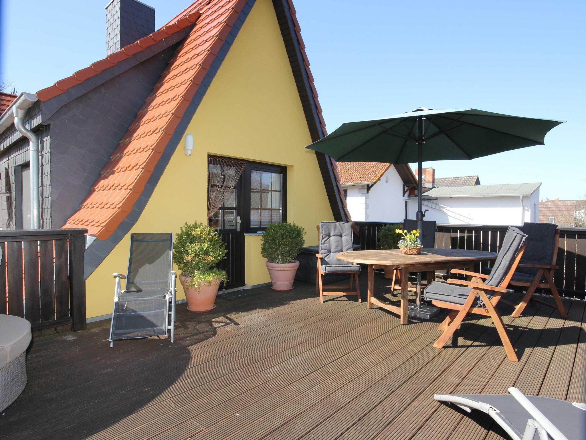 die komfortable Ferienwohnung mit liebevoller Ausstattung zum Detail und separatem Eingang über eine Freitreppe erreichbar, liegt im Obergeschoss. Genießen Sie die Nord- Ostseitige große Dachterrasse mit Gartenmöbel, einer Liegeinsel und Sonnenliegen, beim Frühstück oder lassen Sie den Abend mit einem guten Glas Wein am Strand in 250 m Entfernung ausklingen.Das Wohnzimmer verfügt über eine gemütliche Couch, kostenlosen WLAN- Gastzugang und SAT-TV. An das Wohnzimmer schließt sich die offene Küchenzeile an und ist ausgestattet mit einer Kühlschrank, und 2- Platten Cerankochfeld . Das separate Schlafzimmer verfügt über ein Doppelbett 1,80 x 2,00 m (getrennte Matratzen) und einem Kleiderschrank mit viel Stauraum.In der Ferienwohnung ist die Bettwäsche nicht vorhanden, die Handtücher können in der Zimmervermittlung für 7,00 € pro Person (1 Badetuch, 1 Handtuch) dazugebucht werden. Das Bad verfügt über eine Dusche/WC Für unsere Gäste sind die Fahrräder inclusive . Unsere Wohnungen sind Nichtraucherwohnungen. Die Kaution beträgt 100,- € und wird nach Abreise zurücküberwiesen.