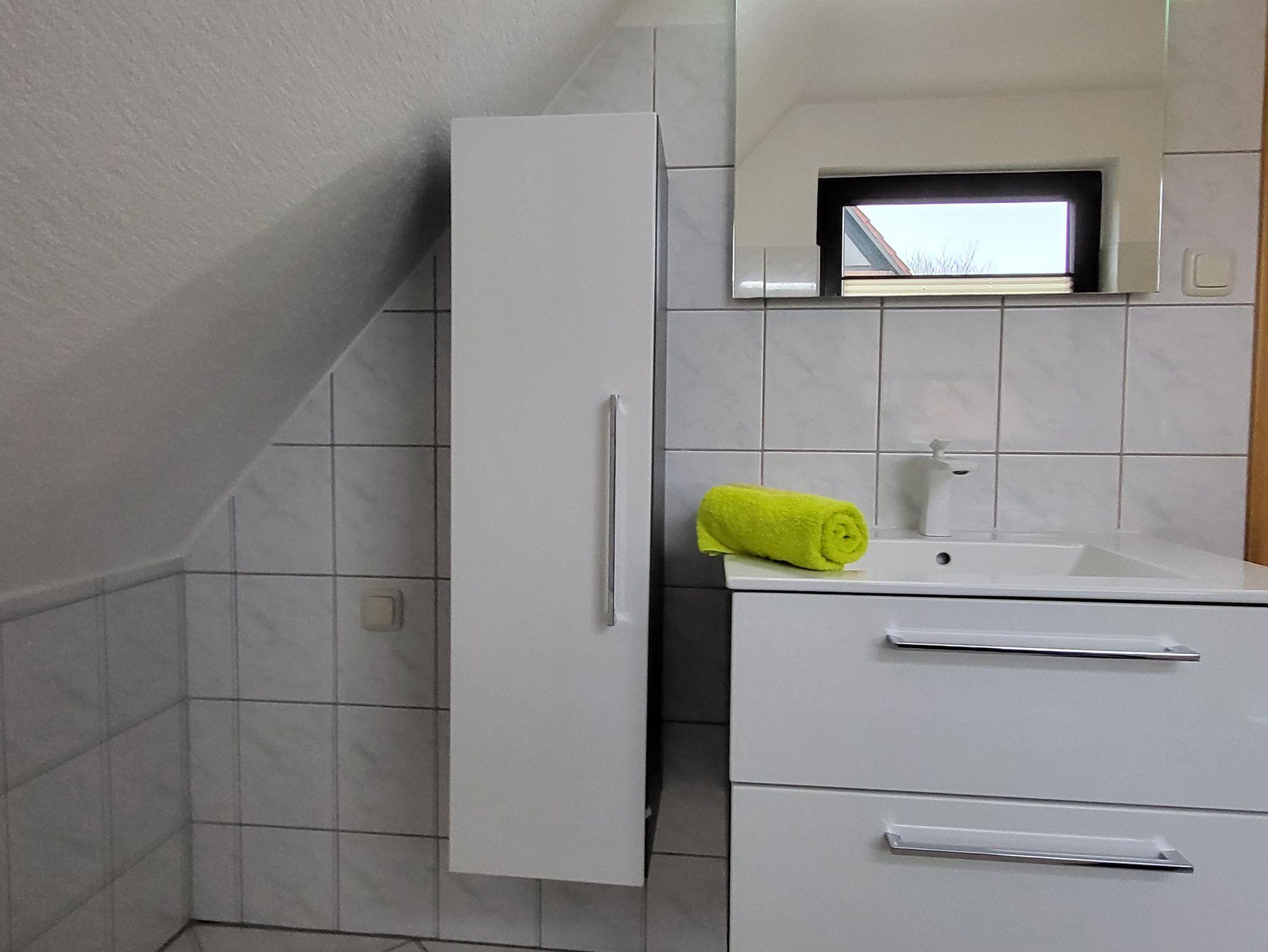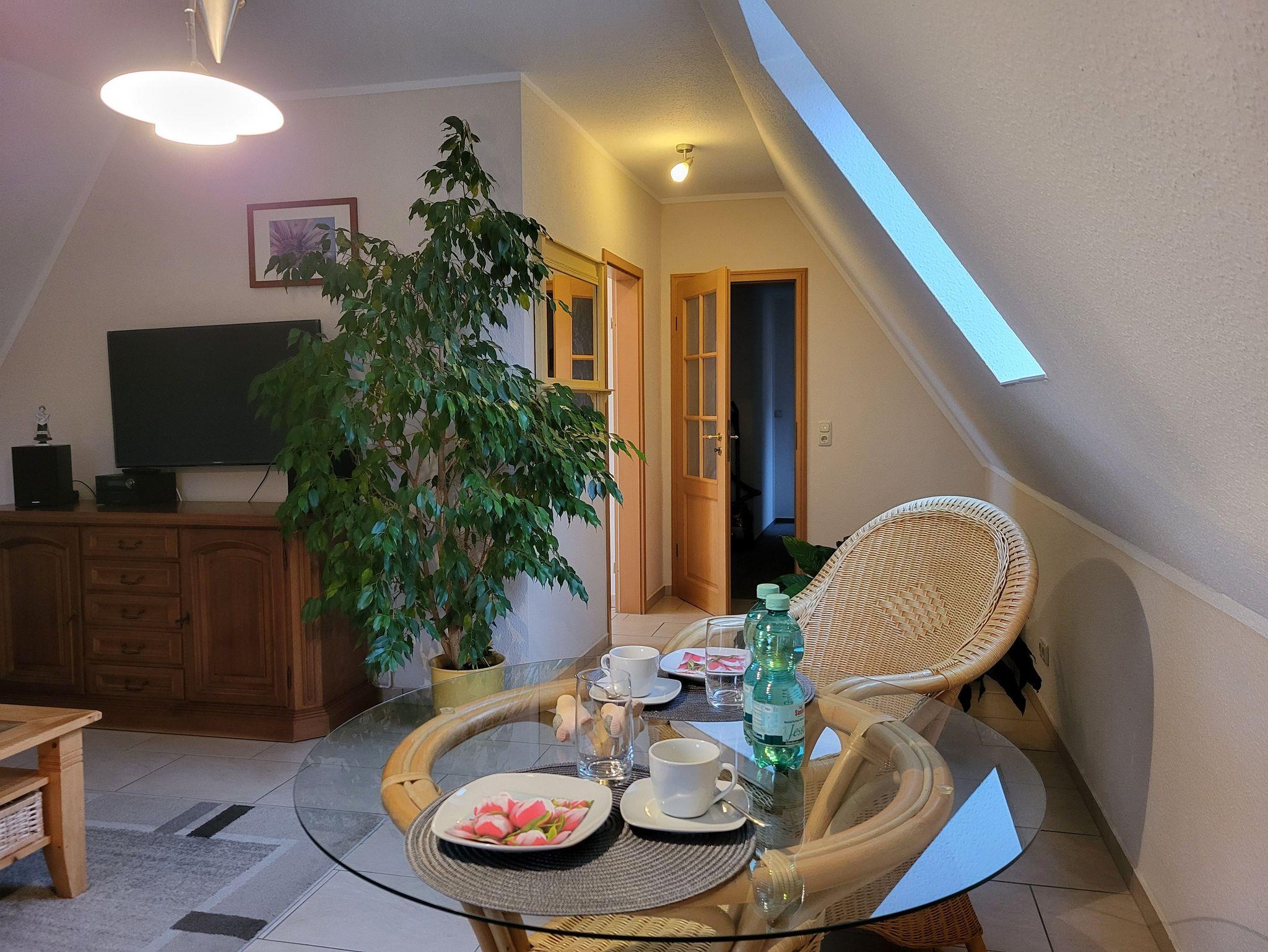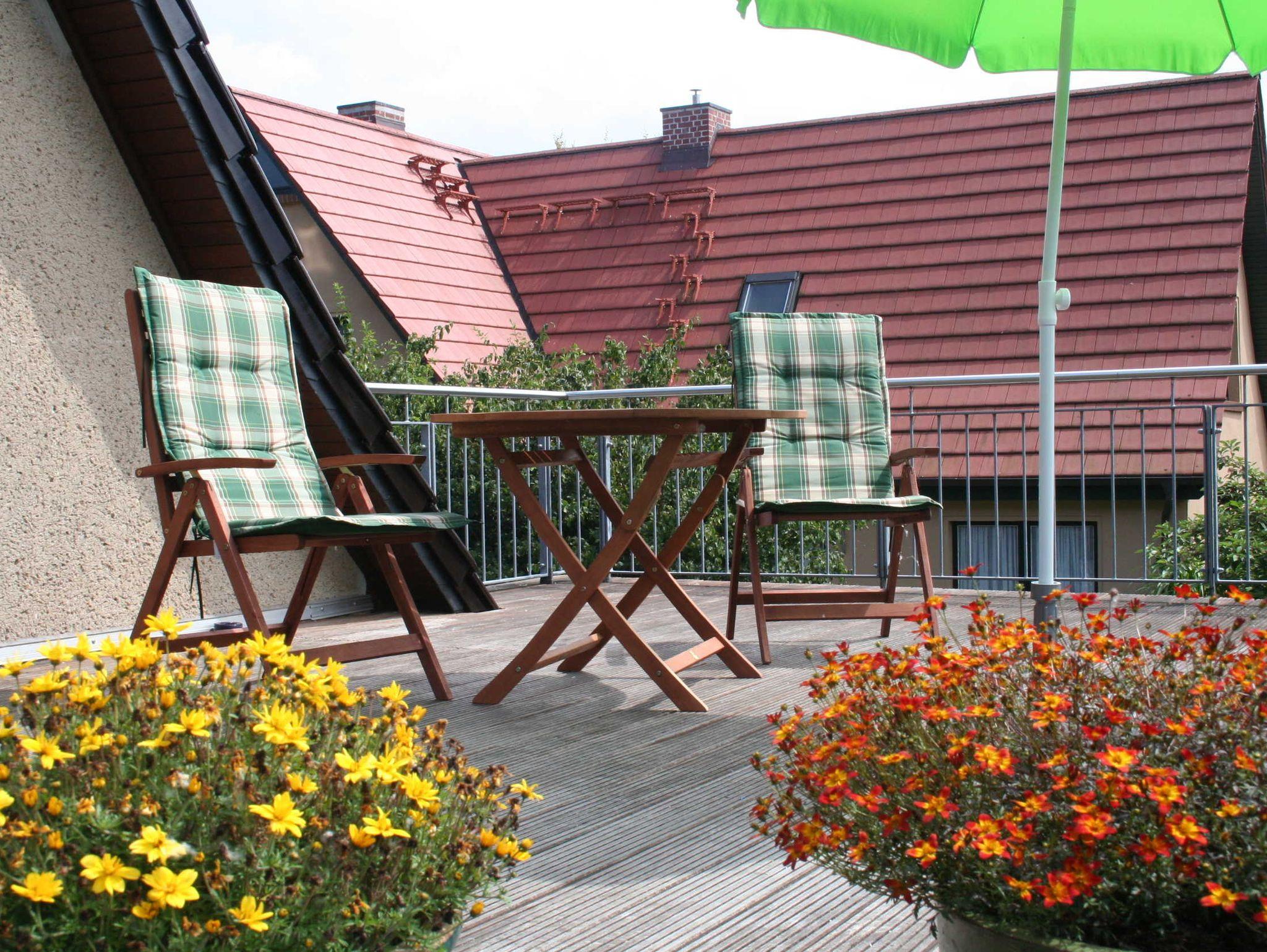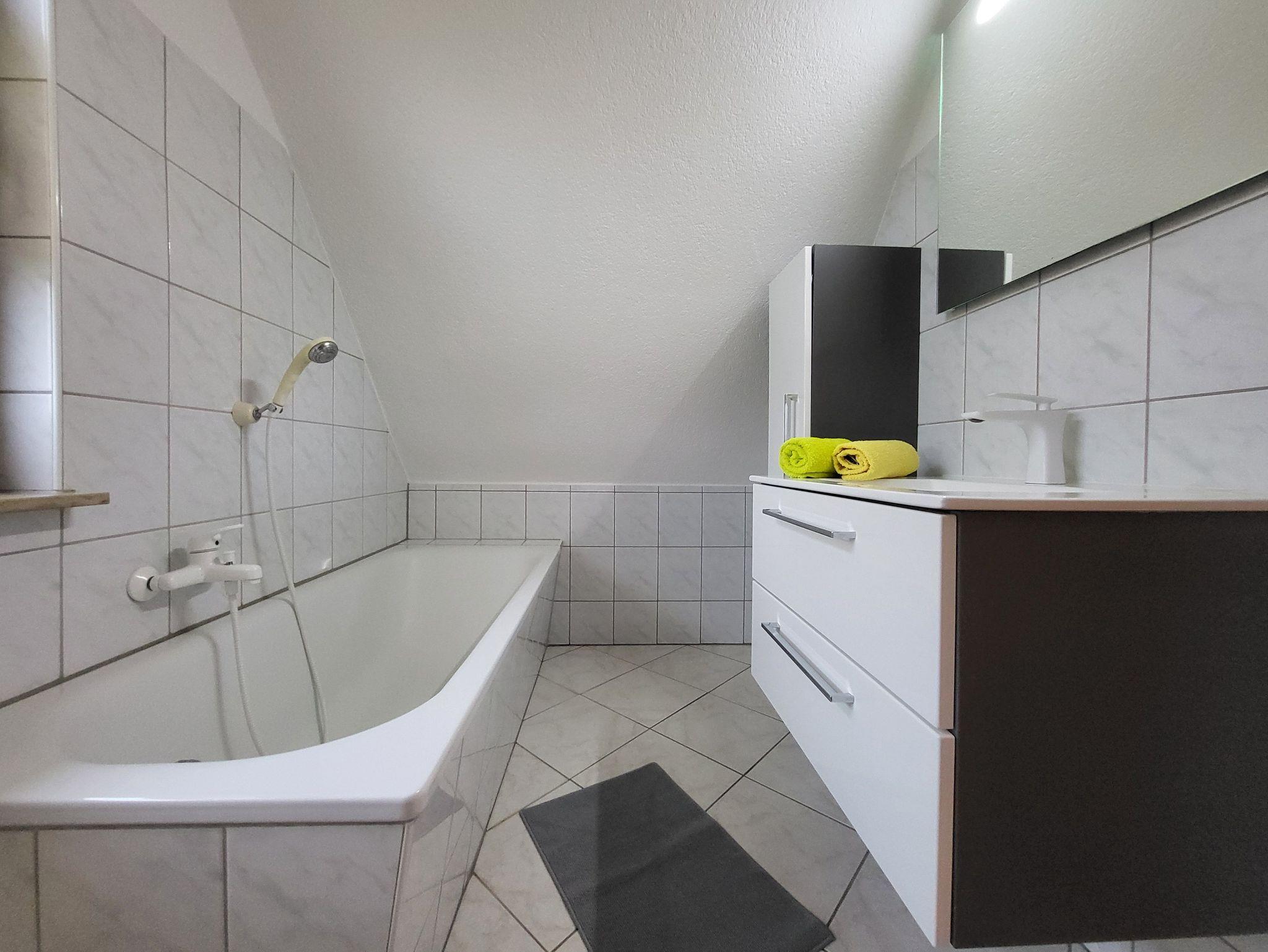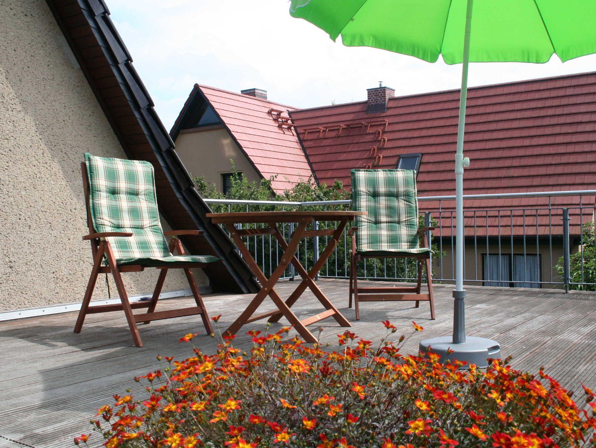 die gemütlich eingerichtete Ferienwohnung im Obergeschoss, gelegen in ruhiger Lage am Ortsrand, mit separatem Eingang und Zugang zur Dach-Terrasse die zum entspannen einlädt. Der feinsandige Strand ist etwa 250 m entfernt. Das Wohnzimmer verfügt über eine gemütliche Couch und SAT- TV, sowie einen Essplatz. Im Schlafzimmer steht ein Doppelbett 1,80 x 2,00 m ( getrennte Matratzen ) bereit. In der Küchenzeile finden Sie ein Cerankochfeld mit 4- Platten, eine Mikrowelle und einen Kühlschrank. Im Bad mit gibt es eine Badewanne. Unsere Wohnung ist eine Nichtraucherwohnung. Das Schlafzimmer und Bad ist mit Mückenschutz ausgestattet. Die Bettwäsche ist inklusive, Handtücher können Sie in der Zimmervermittlung zubuchen für 7,00 € pro Person (1 Badetuch, 1 Handtuch). Ein Parkplatz befindet sich auf dem Grundstück.