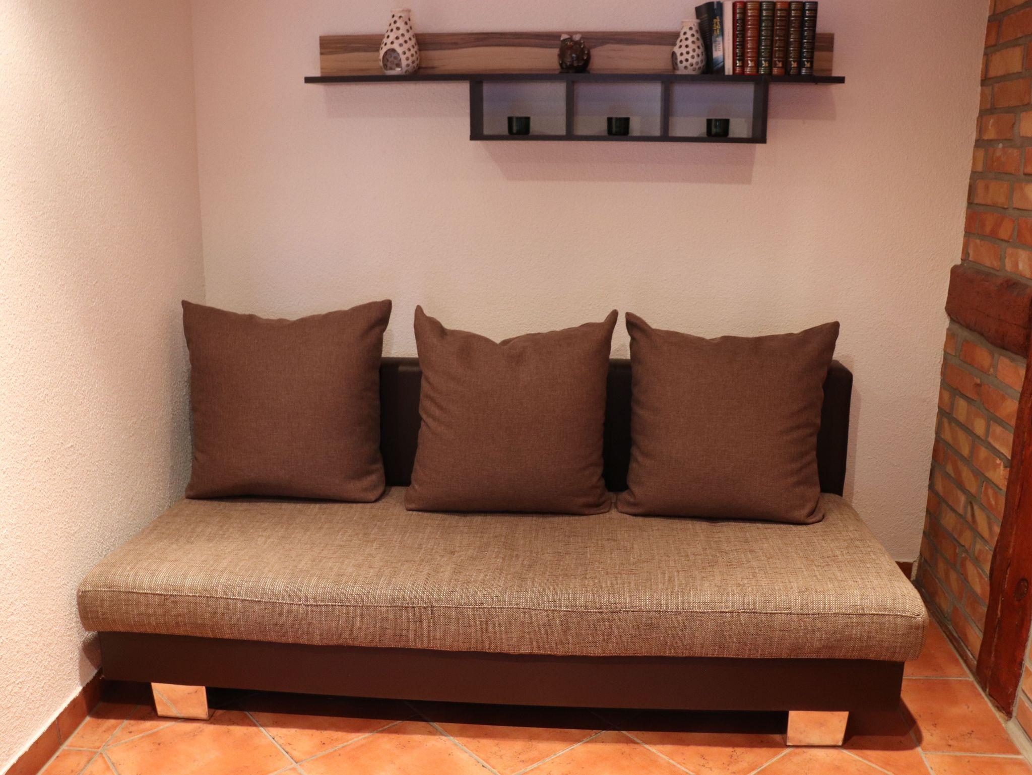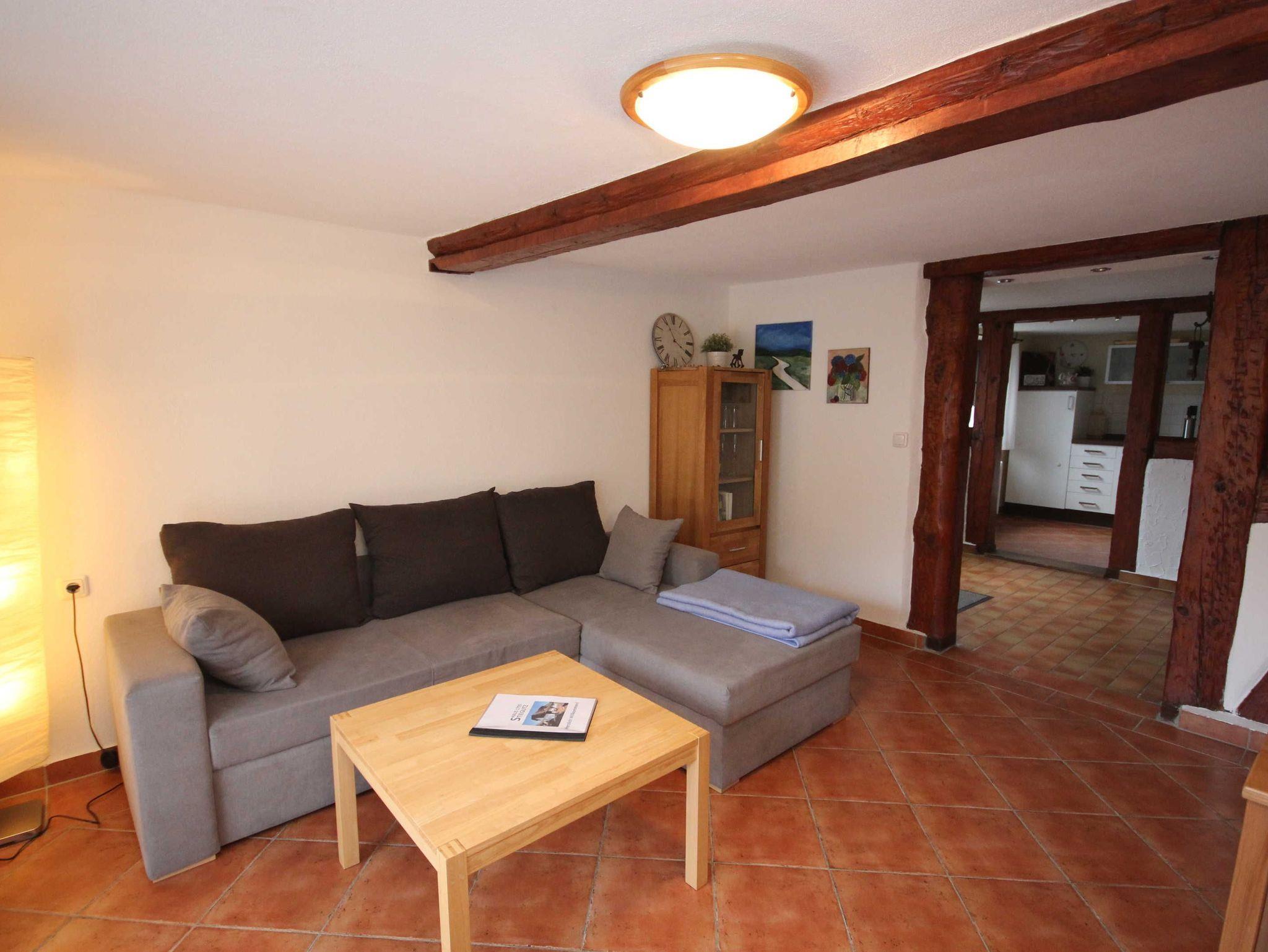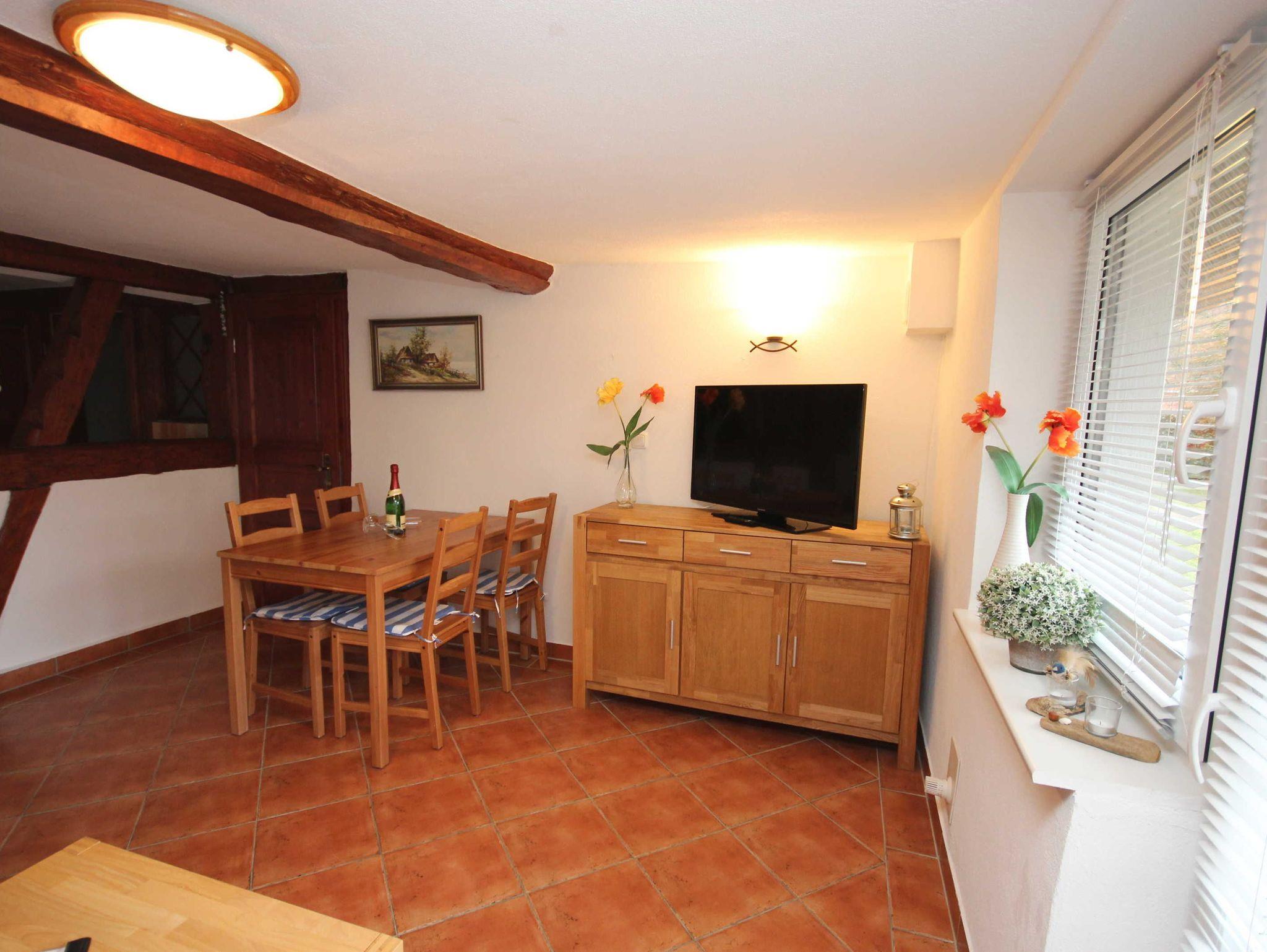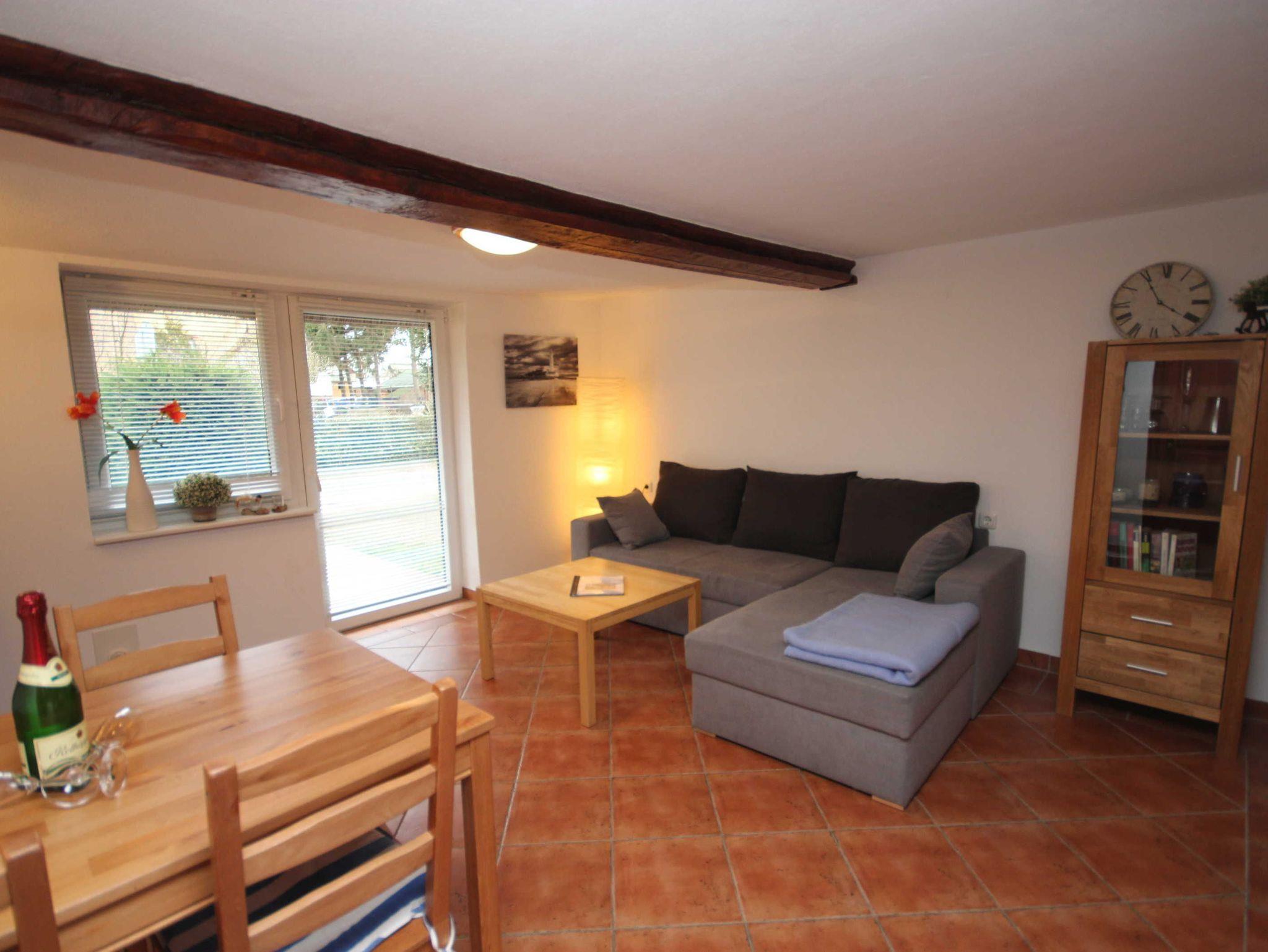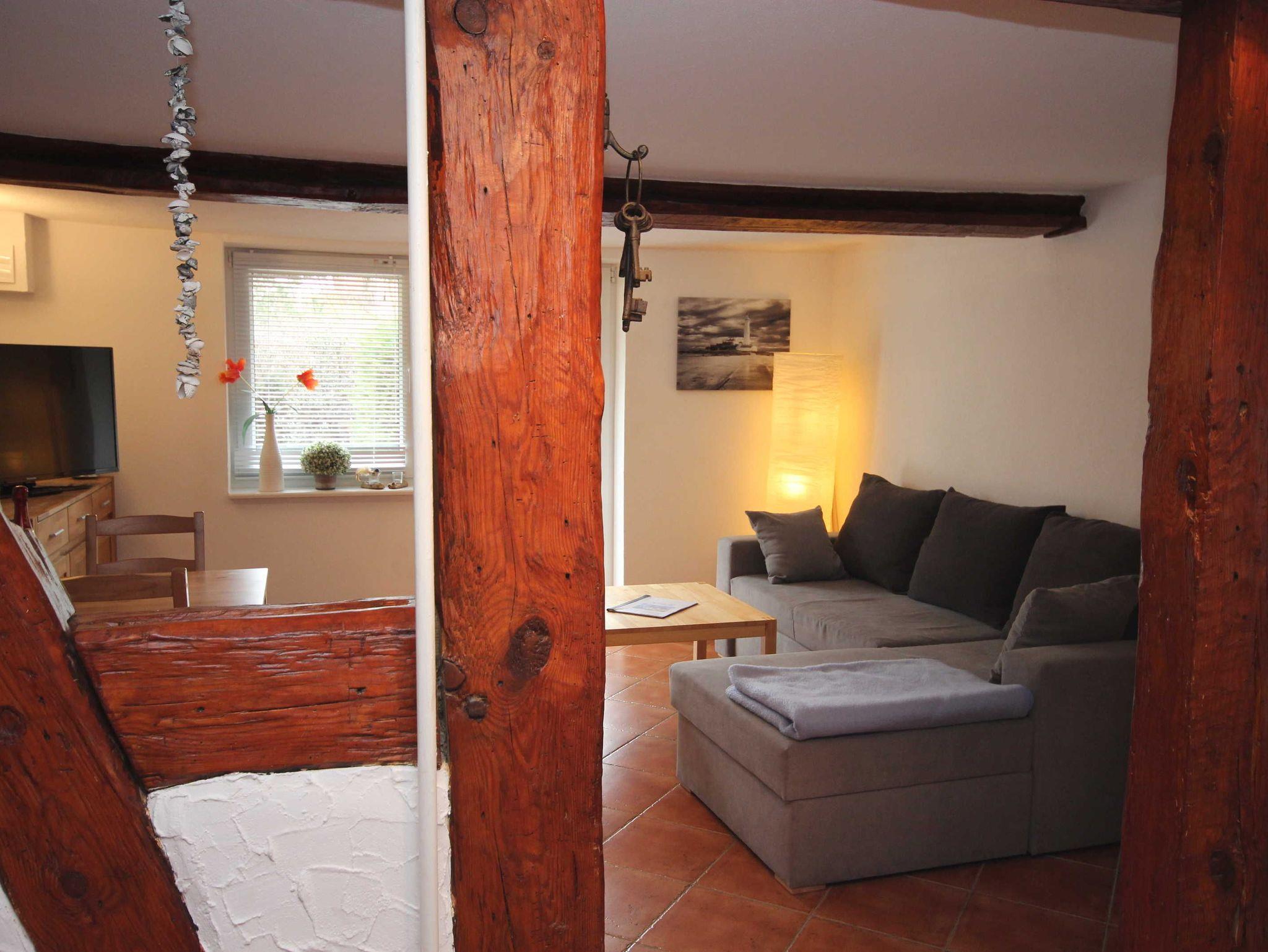 Es handelt sich hierbei um eine großzügige offene 2- Zimmer- Wohnung in dem 1795 erbauten Teil der alten Büdnerei. Die Wohnung ist perfekt für 4 Personen geeignet und hat einen separaten Zugang. Die niedrige Deckenhöhe von maximal 2,00 m und das von alten Balken durchzogene Mauerwerk verleihen dieser Wohnung ihren besonderen Charme. Die kleine südlich gelegeneTerrasse schließt sich an das Wohnzimmer an und lädt zum gemeinsamen Frühstück ein oder genießen Sie die ruhigen Abende. Die Ausstattung der Wohnung umfasst ein helles, gemütlich eingerichtetes Wohnzimmer mit Essplatz, Eckcouch und kostenlosen- WLAN- Zugang. Die offene moderne Küchenzeile ist gut ausgestattet mit Geschirrspüler, Wasserkocher, Toaster und Kaffeemaschine.Der Flur ist offen gestaltet und führt hin zum geschlossenen innenliegenden Kinderzimmer mit einer Schlafcouch. Das Schlafzimmer mit Doppelbett 1,80 x 2,00 m und getrennten Matratzen ist vom Wohnzimmer erreichbar. Vom WC-Bereich (innen liegend) eröffnet sich durch einen Zugang von 1,60 m Höhe ein sehr großzügiges Bad mit Badewanne und Dusche. Ihr Urlaubsdomizil befindet sich in ruhiger Lage und ist fußläufig in ca. 10 min vom feinsandigen Ostseestrand und ca. 5 min vom Wustrower Hafen entfernt. Die Wohnung wird inclusive Bettwäsche übergeben, Handtücher können in der Zimmervermittlung für 7,00 € pro Person (1 Badetuch, 1 Handtuch) dazugebucht werden. Alle unsere Wohnungen sind Nichtraucherwohnungen.Haustiere sind herzlich willkommen. Grillen ist nicht erlaubt.