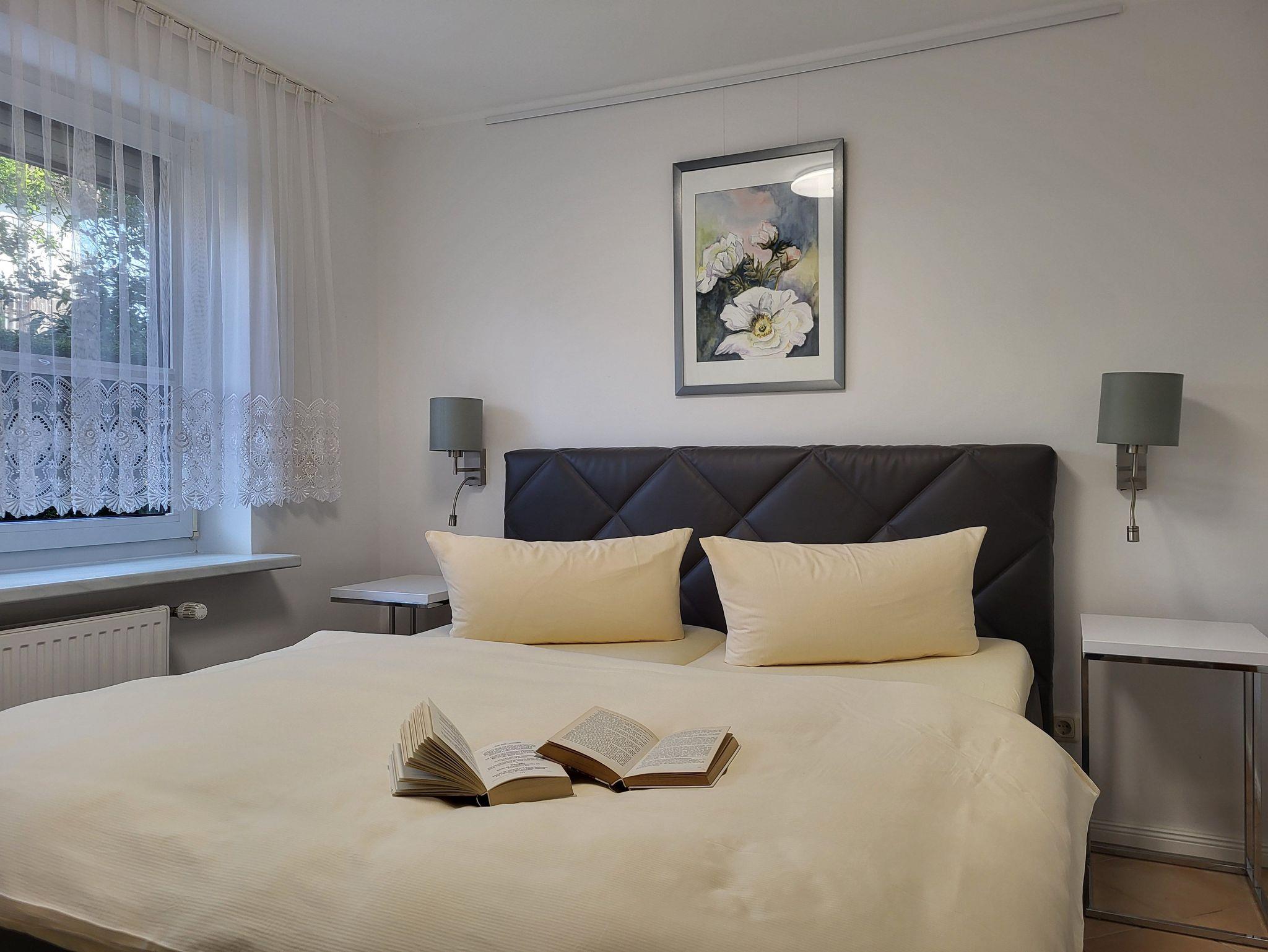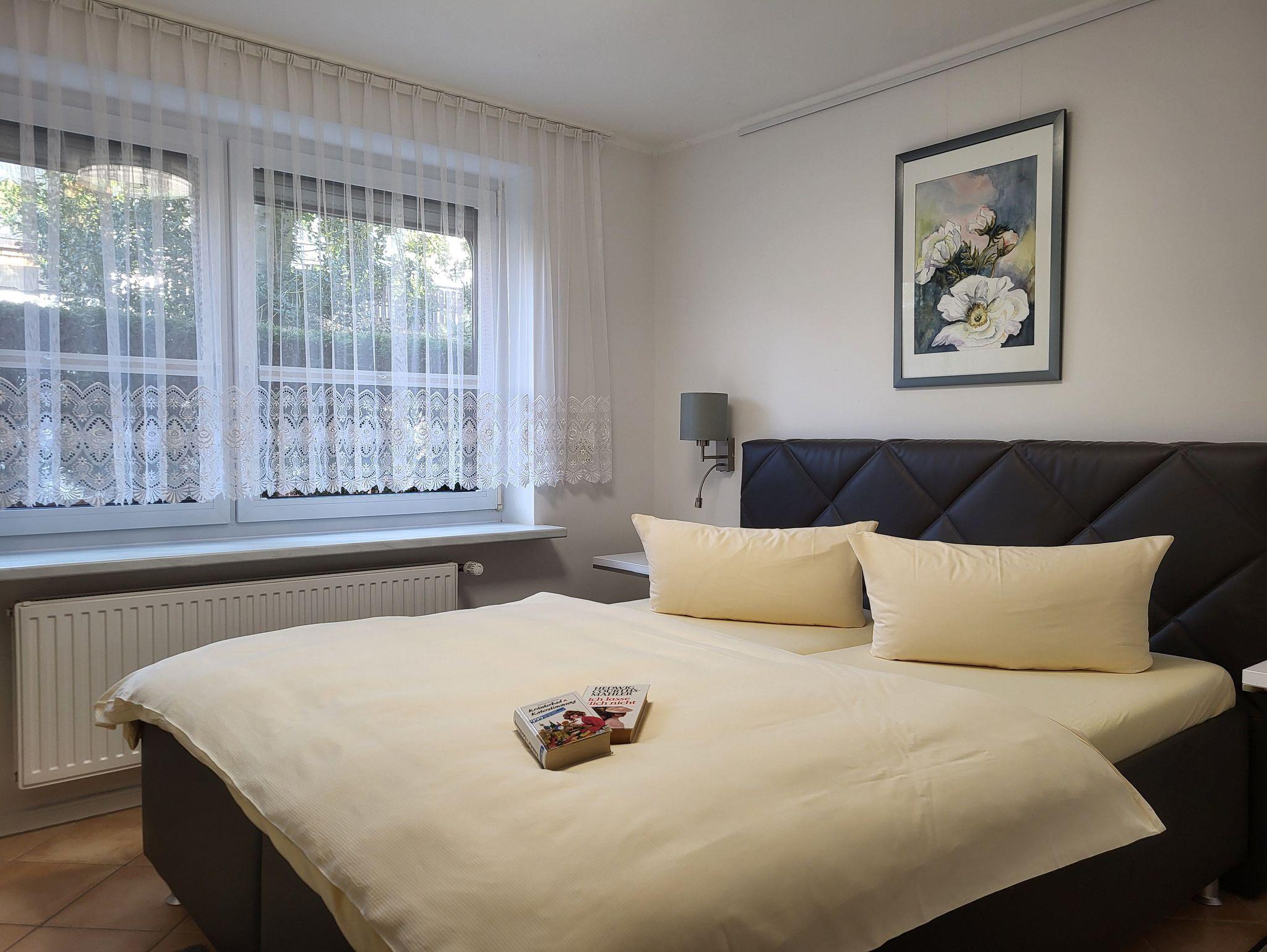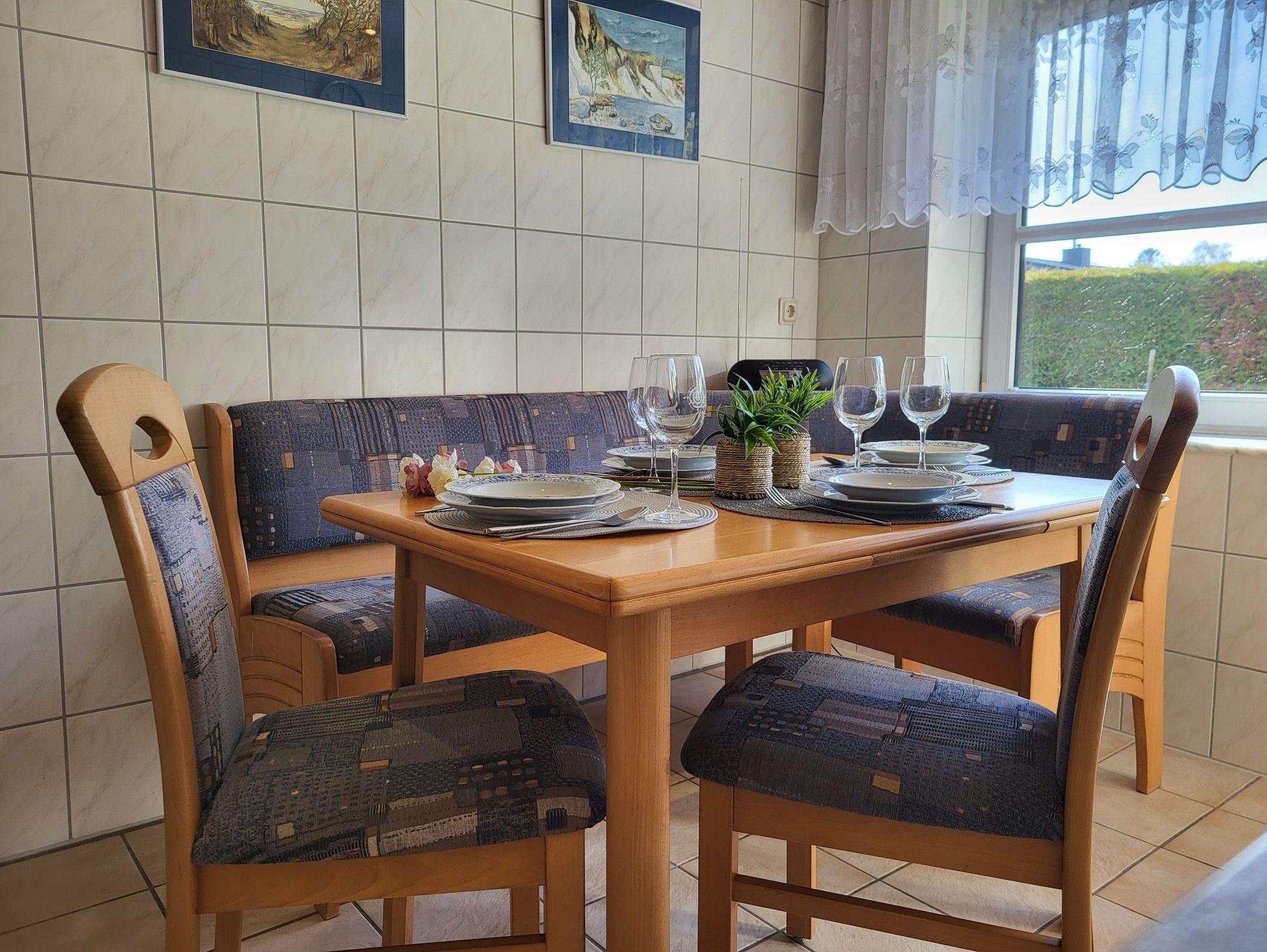 die zentral und hochwertig ausgestattete Ferienwohnung Anika 2 im Erdgeschos, liegt in ruhige Lage am Ortsrand. Der Sitzplatz mit Grillmöglichkeit befinden sich im Garten, diesen teilen Sie sich mit der Wohnung Anika 1. Die Wohnung verfügt über einen separaten Eingang und einen Parkplatz auf dem Grundstück. Im Wohnzimmer befindet sich eine Schlafcouch. Die große Wohnküche verfügt über einen Essplatz und ist ausgestattet mit einem Geschirrspüler, Kühlschrank mit Gefrierfach, Induktionskochfeld und Herd mit Backofen Das Schlafzimmer verfügt über ein Doppelbett 1,60 x 2,00 m (getrennte Matratzen). Die Bettwäsche ist inclusive, Handtücher können in der Zimmervermittlung für 7,00 pro Person (1 Badetuch, 1 Handtuch) dazugebucht werden.Das sanierte Bad verfügt über eine ebenerdige Dusche.Die Ferienwohnung ist mit einem WLAN- Anschluß ausgestattet. Der Strand liegt in ca. 500 m Entfernung.