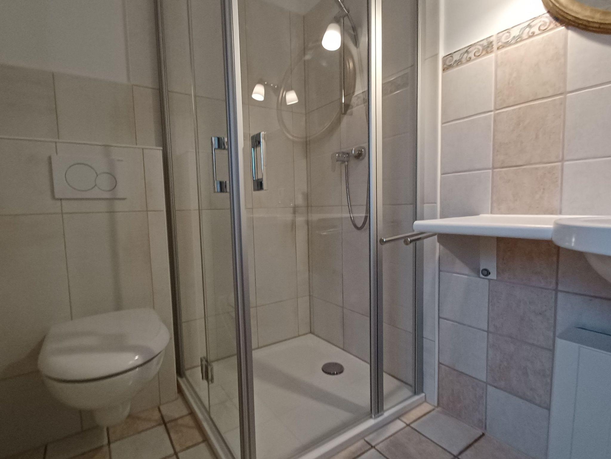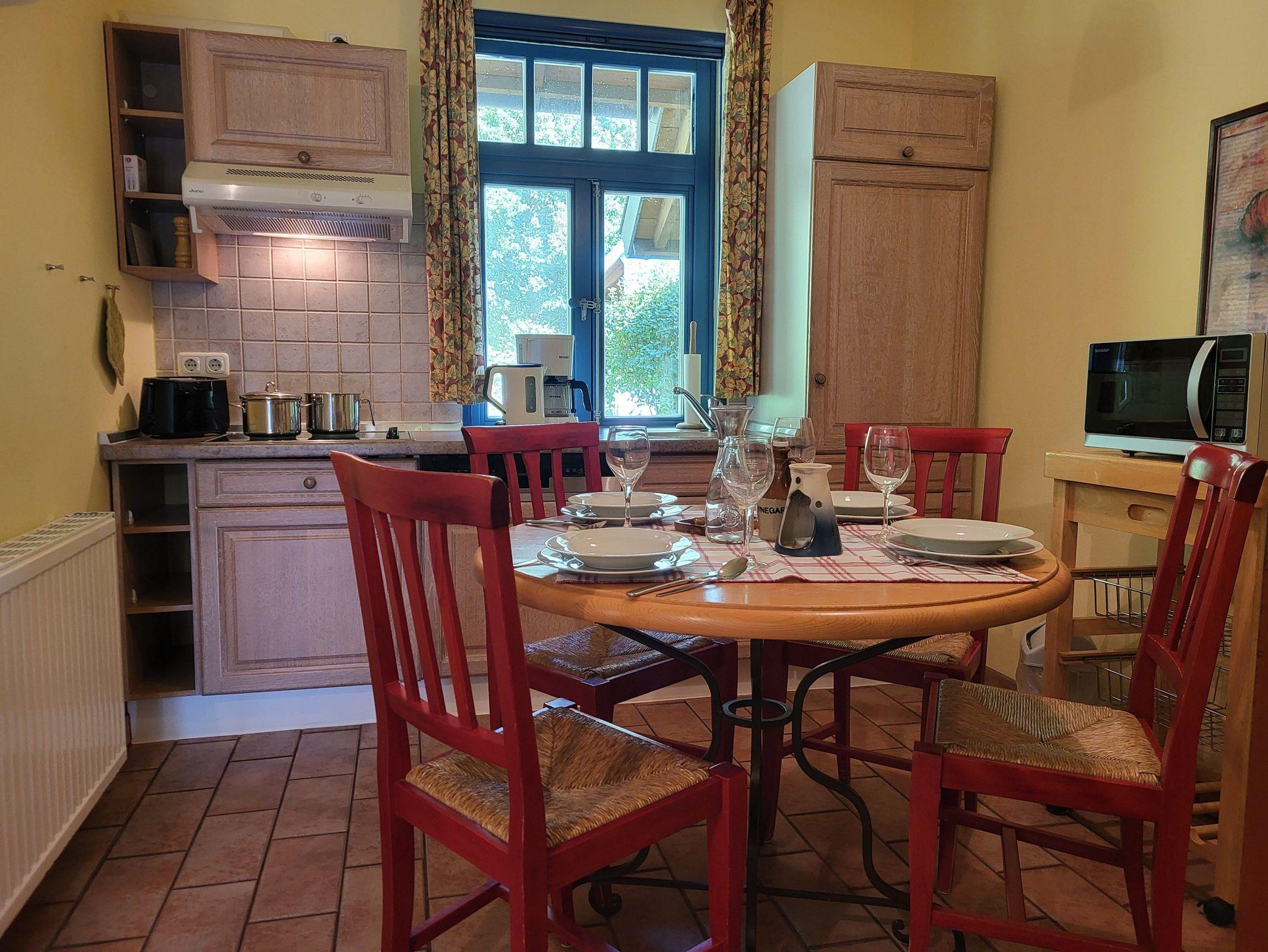 Im Erdgeschoss finden Sie die offene Küchenzeile, ausgestattet mit einem Essplatz, einem Geschirrspüler, einem Kühlschrank inklusive Gefrierfach, einer Kaffeemaschine und einem Cerankochfeld. Das gemütliche Wohnzimmer schließt an die Küche an und SAT- TV ausgestattet. Im Badezimmer, welches sich ebenfalls im Erdgeschoss befindet, ist ausgestattet mit einer Toilette und Dusche.