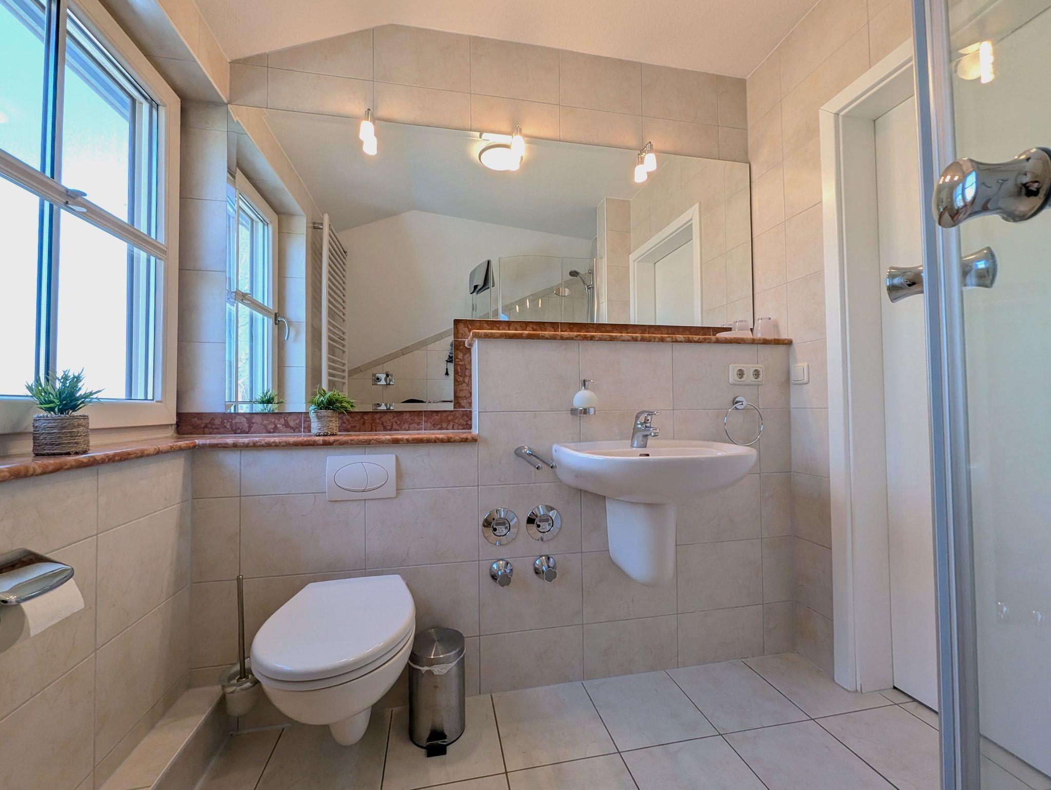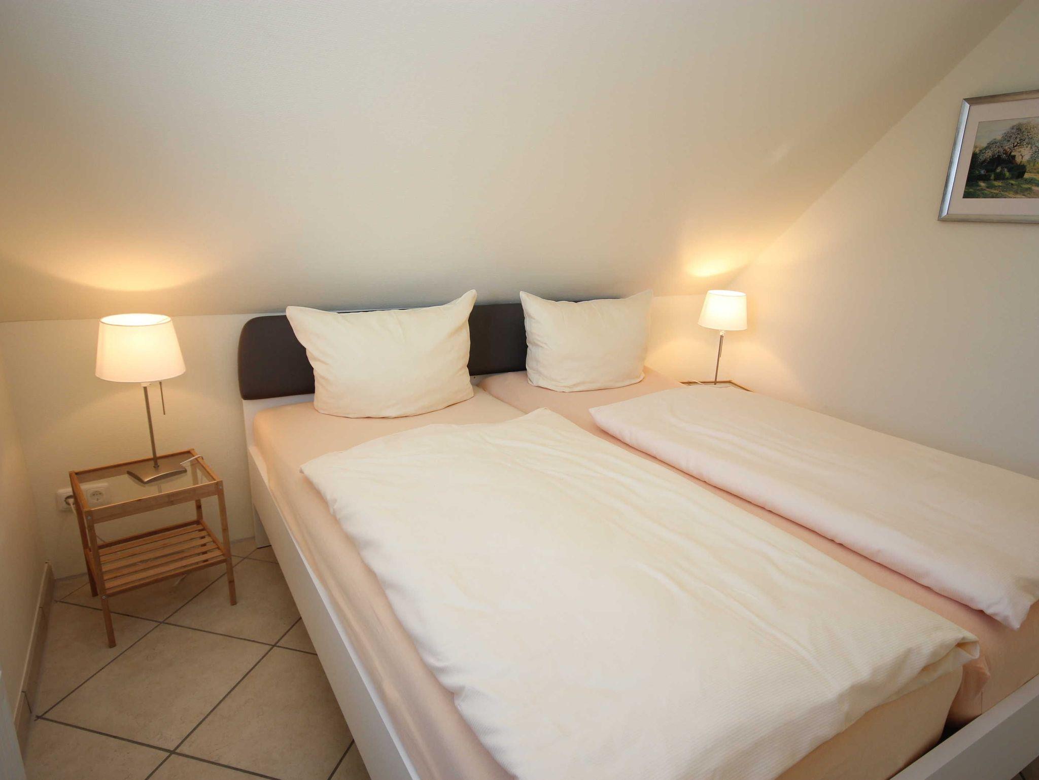 in der Wunderschönen, lichtdurchfluteten Vollkomfortwohnung im Obergeschoss mit Balkon (Süd- West- Ausrichtung) . Die Ferienwohnung liegt in sehr ruhiger Lage am Ortsrand. Der großzügige Wohnraum ist mit viel Liebe zum Detail ausgestattet worden. Die offene Küchenzeile verfügt über einen Essbereich, einen Geschirrspüler, Cerankochfeld, Backofen, Kaffeemaschine, Toaster und einer weiteren umfangreichen Ausstattung. Im Bad finden Sie eine Dusche. Das Schlafzimmer wurde mit einem Doppelbett 1,80 x 2,00 m ( getrennte Matratzen ) und einem Kleiderschrank mit viel Stauraum ausgestattet. Die Wohnung ist mit Fliegenschutz ausgestattet. Der Strand liegt in ca. 10 min. Entfernung.. Für unsere Gäste steht auf dem Grundstück ein Fahrradschuppen der abschließbar ist zur Verfügung. Die Wohnung wird inclusive Bettwäsche übergeben, Handtücher können Sie in der Zimmervermittlung für 7,00 € pro Person (1 Badetuch, 1 Handtuch) zubuchen. Der Parkplatz befindet sich direkt am Grundstück.Gäste nutzen bitte den rechten Parkplatz!