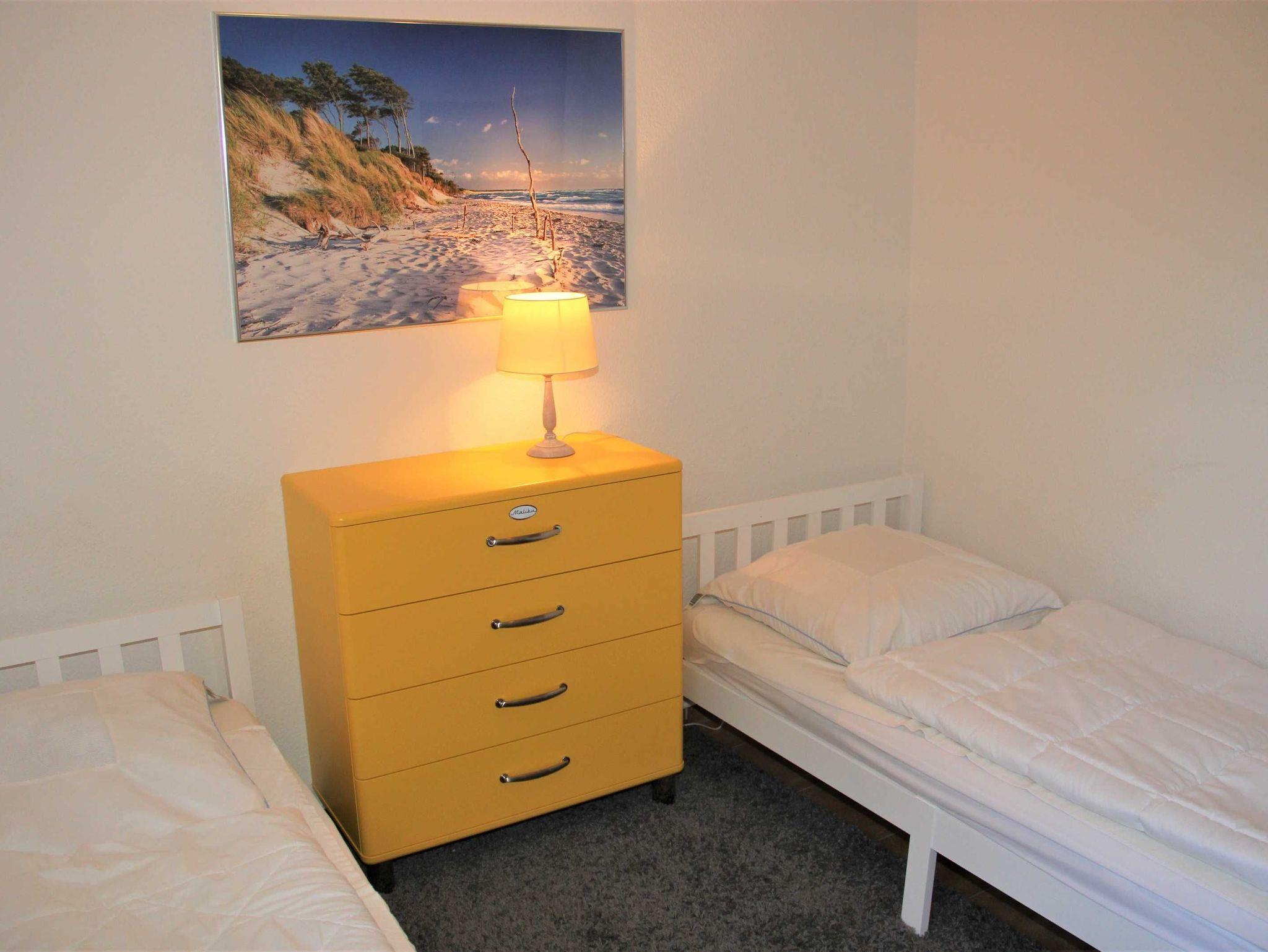 Das Wohnzimmer hat einen Kamin, das Kaminholz ist von den Gästen mitzubringen. Alle Wohnungen sind Nichtraucherwohnungen. In der offenen Küchenzeile befinden sich ein Backofen und Geschirrspüler, sowie umfangreiche Küchenutensilien. Für unsere kleinen Gäste können Sie Kinderreisebett und Kinderhochstuhl à 10,00 € /pro Woche dazubuchen. Für die nächtliche Ruhe stehen Ihnen 1 Schlafzimmern mit einem Doppelbett 1,80 x 2,00 m (getrennte Matratze) und ein Schlafzimmer mit 2 Einzelbetten (0,90 x 2,00 m) zur Verfügung, die Bettwäsche und Handtücher können bei der Zimmervermittlung dazu gebucht werden - ein Paket 19,50 € (1 Badetuch, 1 Handtuch, 1 Kopfkissen, 1 Bezug und 1 Spannbettlaken). Ein WLAN Gästezugang steht Ihnen während Ihres Aufenthaltes zur Verfügung. Zum gemütlichen Verweilen lädt die Terrasse mit Gartenmöbel ein. Ein Parkplatz befindet sich auf dem Grundstück.Haustiere sind herzlich willkommen. Den Kamin bitte nur mit Wasser und Asche reinigen.