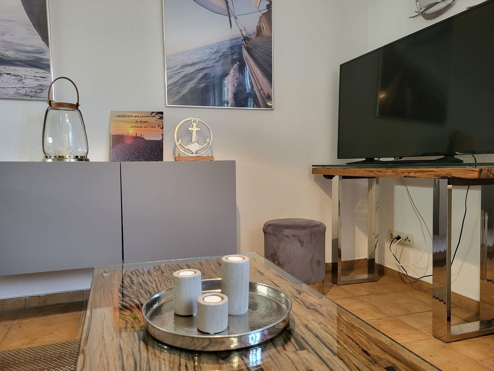 in der Ferienwohnung Strandhaus am Deich im Erdgeschoss, in einer Doppelhaushälfte direkt hinter dem Deich mit Strandzugang.