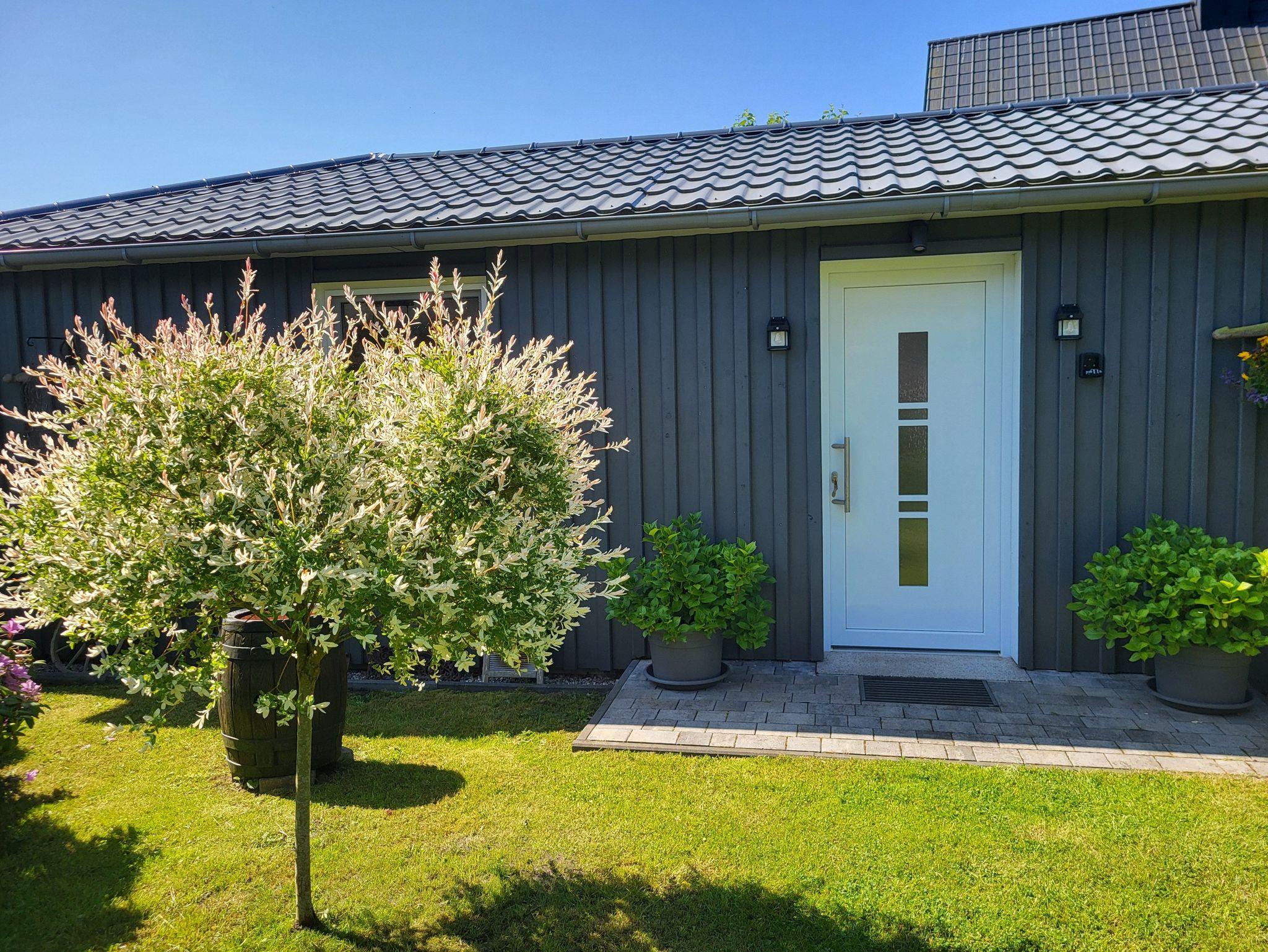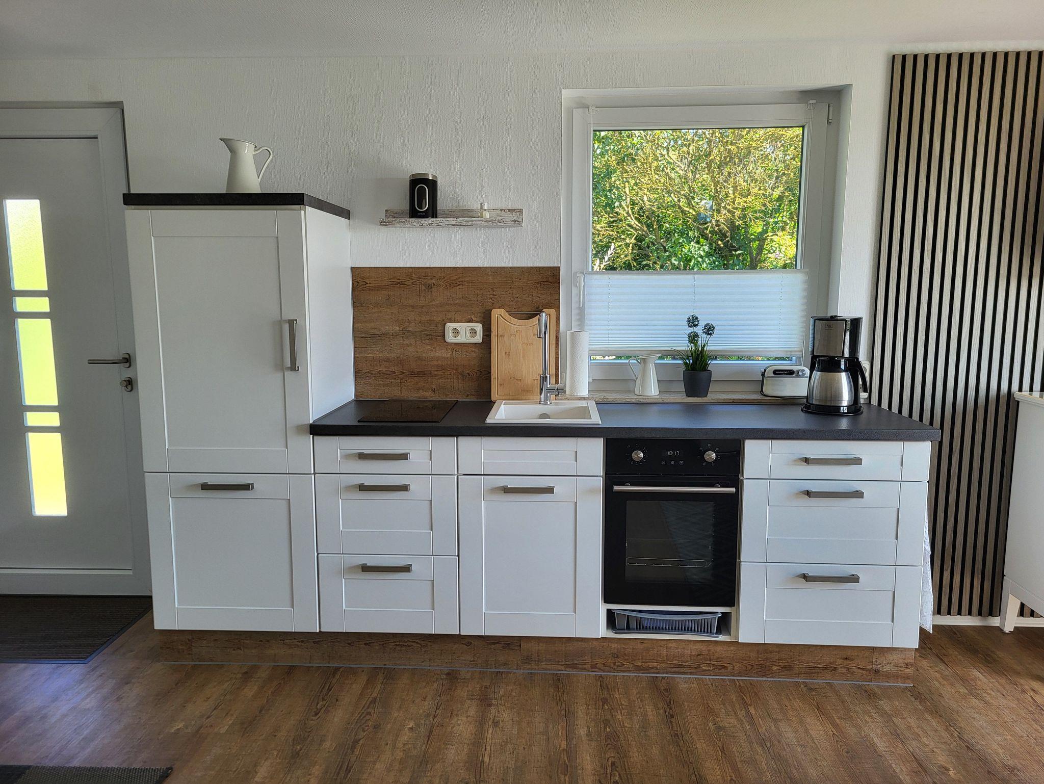 neues Ferienhaus in ruhiger Lage am Ortsrand des Ostseebades Wustrow, mit weitem Blick über Wiesen und Felder zum Bodden. Die Ostseitige Terrasse mit einer Sitzecke lädt zum Entspannen oder Grillen am Abend ein. Die helle, freundliche und moderne Ausstattung, mit dem offenen Wohnzimmer und der Küchenzeile mit einer Wohnfläche von ca. 60 qm, ist perfekt für 1- 2 Personen geeignet und bietet genügend Platz für einen erholsamen Urlaub. Das kleine Ferienhaus verfügt über eine Infrarot Heizung im Wohnzimmer, eine Elektroheizung im Schlafzimmer und Bad. Im Schlafzimmer befindet sich ein Doppelbett 1,80 x 2,00 m (getrennte Matratzen). Das Haus bietet einen kostenlosen WLAN- Zugang und einen Schlüsseltresor. Geniessen Sie den Sonnenuntergang am Strand ca. 800 m entfernt. Die Ferienwohnung ist eine Nichtraucherwohnung. Haustiere sind nicht gestattet. Der PKW- Parkplatz für 1 Auto und befindet sich auf dem Grundstück. Die Bettwäsche ist inclusive, die Handtücher können in der Zimmervermittlung für 7,00 € pro Person (1 Badetuch, 1 Handtuch) dazugebucht werden. Energieabrechnung nach Verbrauch - 1 Kwh 0,40 € !