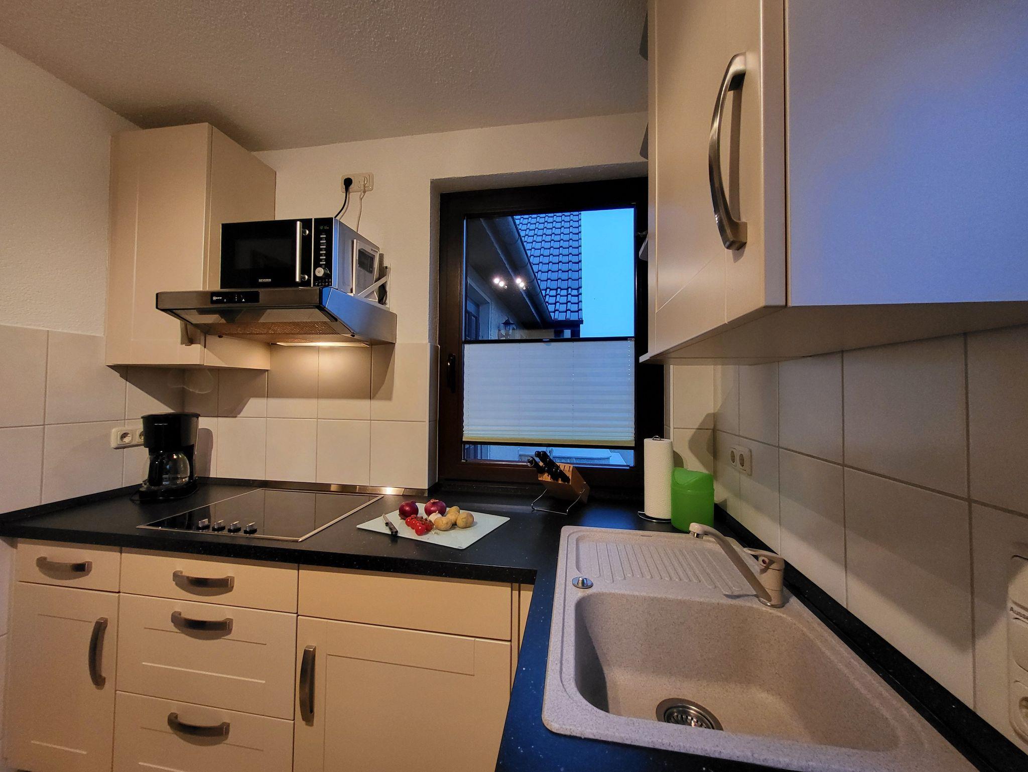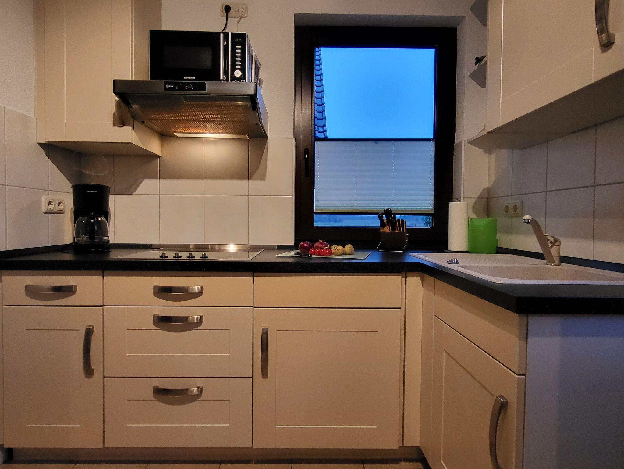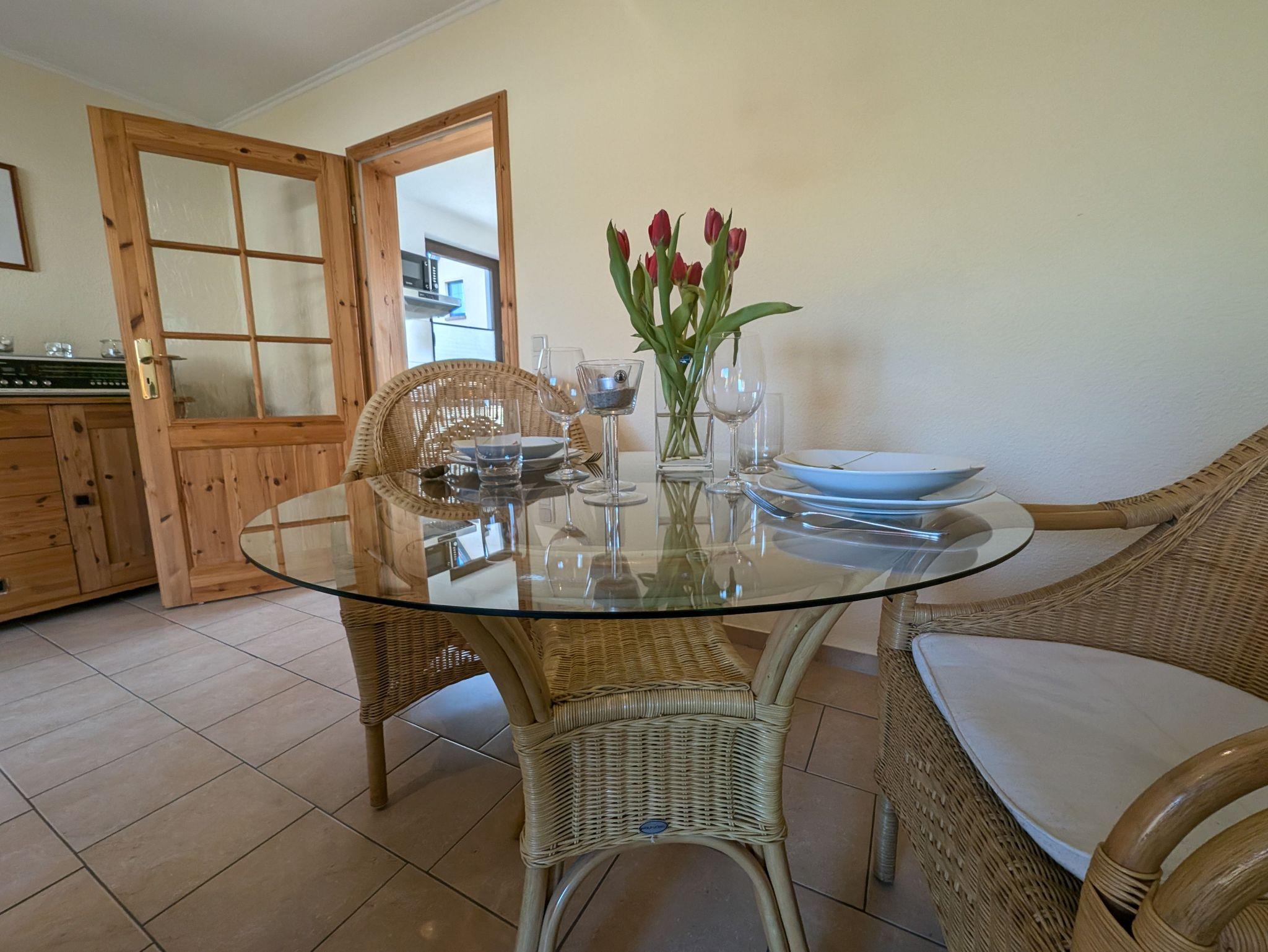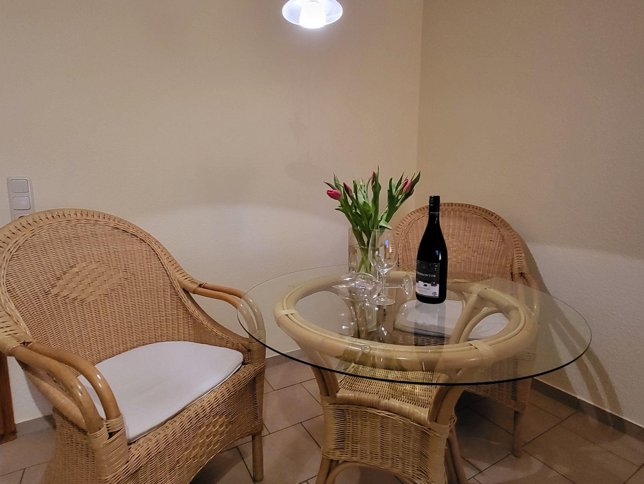 die modern und gemütlich eingerichtete Ferienwohnung im Erdgeschoss, gelegen in ruhiger Lage am Ortsrand, mit separatem Eingang und Zugang zur Terrasse die zum entspannen einlädt., Der feinsandige Strand ist etwa 250 m entfernt. Das Wohnzimmer verfügt über eine Fußbodenheizung, eine gemütliche Couch und SAT- TV, sowie einen Essplatz. Im Schlafzimmer steht ein Doppelbett 1,80 x 2,00 m ( getrennte Matratzen ) bereit. In der Küchenzeile, finden Sie ein Cerankochfeld mit 4- Platten, eine Mikrowelle und einen Kühlschrank. Im Bad gibt es eine bodengleiche Dusche. Unsere Wohnung ist eine Nichtraucherwohnung. Das Schlafzimmer ist mit Mückenschutz ausgestattet. Die Bettwäsche ist inclusive, Handtücher können Sie in der Zimmervermittlung zubuchen für 7,00 € pro Person (1 Badetuch, 1 Handtuch). Ein Parkplatz befindet sich auf dem Grundstück.