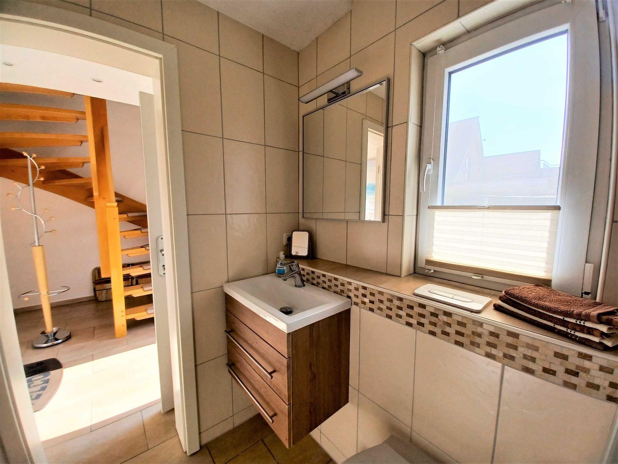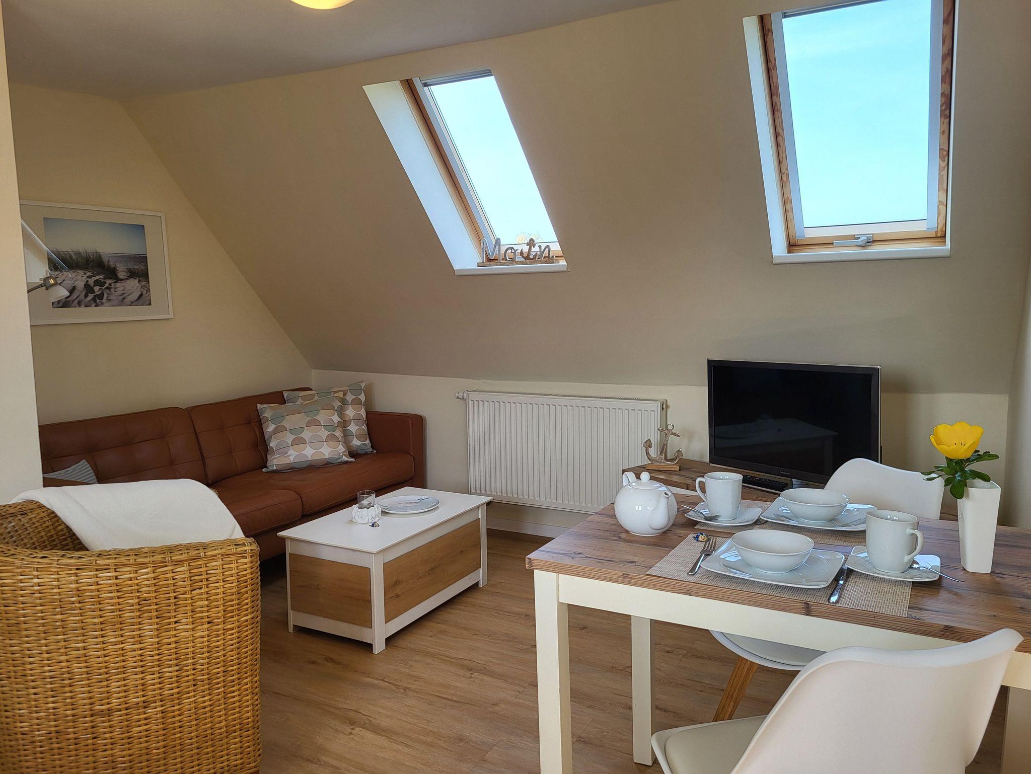 Die Ferienwohnung Am Küstenwald ist eine helle, freundliche Wohnung über zwei Etagen. Der Küstenwald liegt am Ortsrand in ruhige Lage, mit separatem Eingang, Der feinsandige Strand ist etwa 250 m entfernt. Im Obergeschoss befindet sich das Wohnzimmer mit offener Küchenzeile und das Schlafzimmer mit Doppelbett 1,80 x 2,00 m ( getrennte Matratzen ).Im Erdgeschoss befindet sich das Bad mit bodengleicher Dusche. Zur Ausstattung gehört ein SAT- TV. In der offenen Küchenzeile steht für Sie ein Backofen und ein Kühlschrank mit Gefrierfach bereit. Alle Wohnungen sind Nichtraucherwohnungen. Die Bettwäsche ist inclusive, Handtücher sind in der Zimmervermittlung zubuchbar für 7,00 € pro Person (1 Badetuch, 1 Handtuch). Die Ferienwohnung ist mit WLAN ausgestattet.
